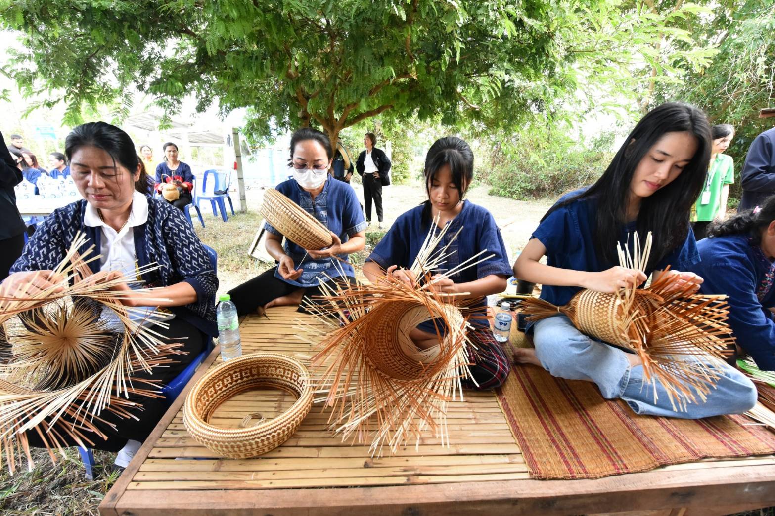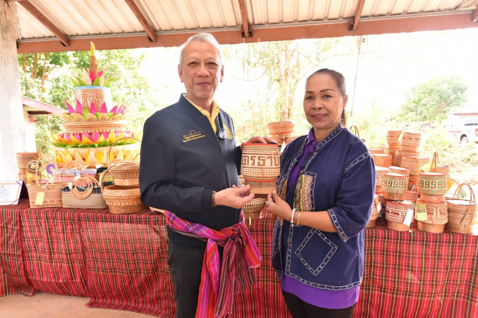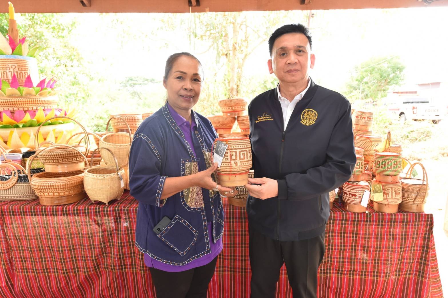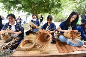 Mr. Phiphat said that the Ministry of Labour gives importance to promoting occupations for people in various areas so that workers outside the system have jobs, earn more income, have opportunities to develop their skills, and have a safe place to work. It aims to support employment in the community so that workers do not have to leave the area to work far from home. It is also a way to continue the culture and preserve local wisdom. This is in line with government policy that gives importance to informal workers, the largest group of workers in the country. Today, they visited and encouraged the “Bamboo Processing Group,” which is a homeworker group. They listened to the group’s performance and saw the group’s products, such as rice bowls, alms bowls, bamboo baskets, rattan baskets, steamed rice buns, rattan wallets, and bamboo woven handbags. They also met with Khun Phonthip, the group president, and a labour volunteer at the subdistrict level. Labour volunteers are considered an important force in coordinating the Ministry of Labour’s mission to drive work in community areas. From the discussion, it was learned that the group accepts work to do at a bamboo processing house. It has ten members and distributes the work to 150 community members aged between 15 and 90 years, generating an income of 4,000 to 5,000 Baht per month per person.