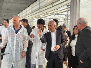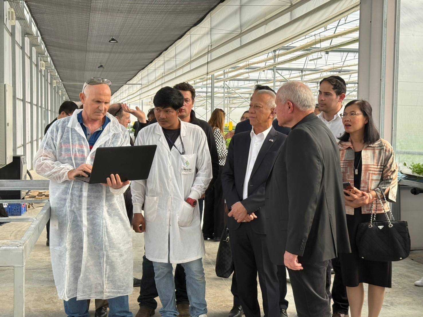 ในการนี้ รัฐมนตรีว่าการกระทรวงแรงงาน และคณะ ได้เยี่ยมชมฟาร์ม Leafresh ซึ่งเป็นฟาร์มปลูกผักไฮโดรโปนิกส์ และเนอสเซอรี่เพาะพันธุ์ต้นกล้า ซึ่งใช้เทคโนโลยีที่ทันสมัย พร้อมพบปะและให้กำลังใจแรงงานไทยที่ทำงานภาคเกษตร จำนวน 15 ราย ทั้งนี้ ฟาร์ม LEAFRESH โดยบริษัท เค.ที. อิมพอร์ต แอนด์ มาร์เก็ตติ้ง จำกัด เป็นโครงการนวัตกรรมที่มีเป้าหมายในการผลิตและจำหน่ายผักใบสดและผักที่ดีต่อสุขภาพ พืชไฮโดรโปนิกส์ของ LEAFRESH ปลูกและพัฒนาในโรงเรือนที่มีลักษณะเฉพาะ