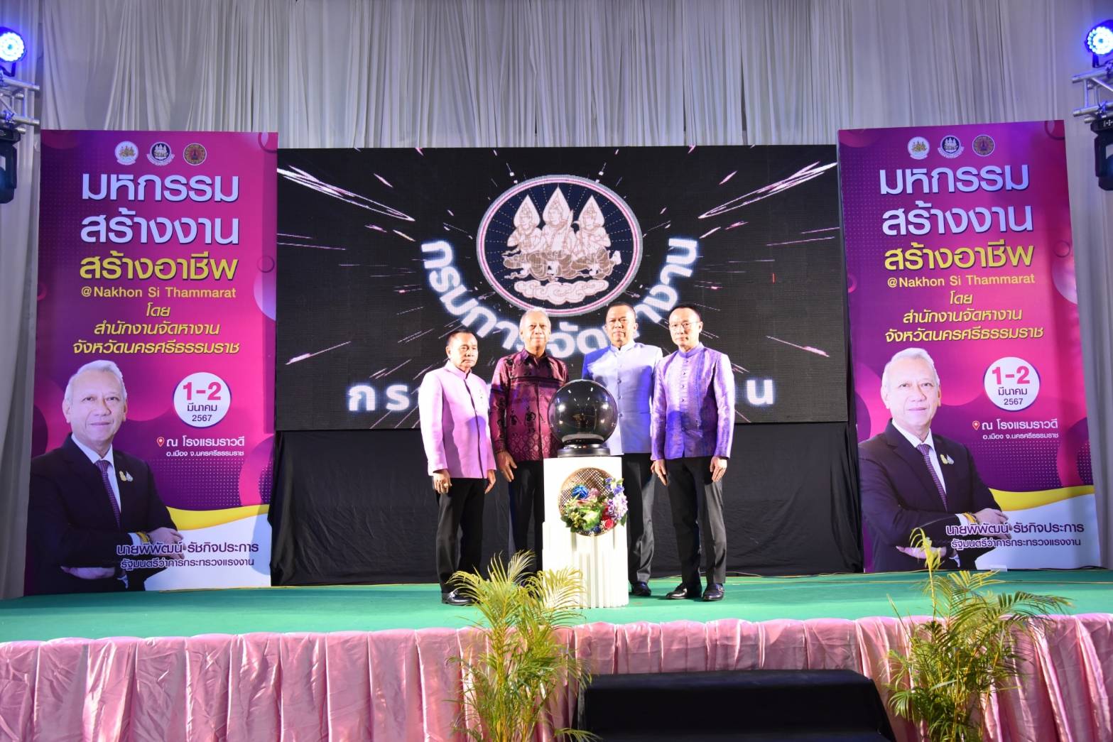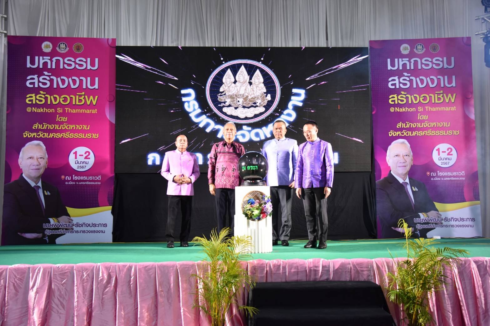 วันที่ 1 มีนาคม 2567 นายพิพัฒน์ รัชกิจประการ รัฐมนตรีว่าการกระทรวงแรงงาน เป็นประธานในพิธีเปิดงาน “สร้างงาน และเส้นทางสู่อาชีพ” ภายใต้ชื่องาน “มหกรรมสร้างงาน สร้างอาชีพ @Nakhon Si Thammarat” โดยมี นายอารี ไกรนรา เลขานุการรัฐมนตรีว่าการกระทรวงแรงงาน นายภุชงค์ วรศรี ประจำสำนักเลขาธิการนายกรัฐมนตรี ปฏิบัติหน้าที่ประจำกระทรวงแรงงาน นายภูมิพัฒน์ เหมือนจันทร์ โฆษกกระทรวงแรงงาน ร่วมเป็นเกียรติในพิธี นายสมชาย มรกตศรีวรรณ อธิบดีกรมการจัดหางาน กล่าวรายงาน นายไตรรัตน์ ไชยรัตน์ รองผู้ว่าราชการจังหวัดนครศรีธรรมราช นางสาวนภัทร วัยทอง นักวิชาการแรงงานชำนาญการพิเศษ รักษาราชการแทน จัดหางานจังหวัดนครศรีธรรมราช พร้อมด้วยหัวหน้าส่วนราชการสังกัดกระทรวงแรงงานในจังหวัดนครศรีธรรมราชให้การต้อนรับ ณ โรงแรมราวดี ตำบลปากพูน อำเภอเมือง จังหวัดนครศรีธรรมราช