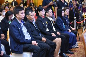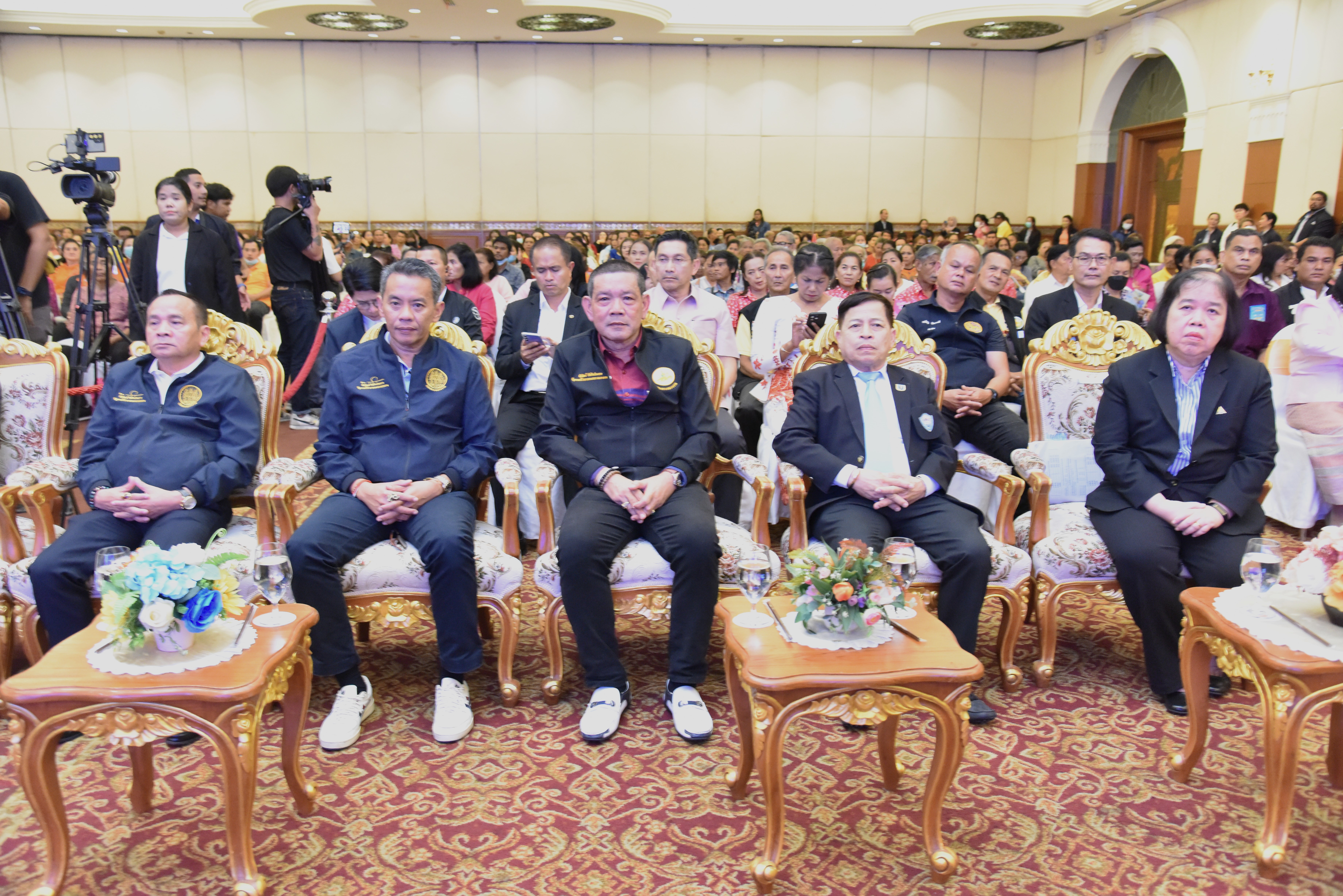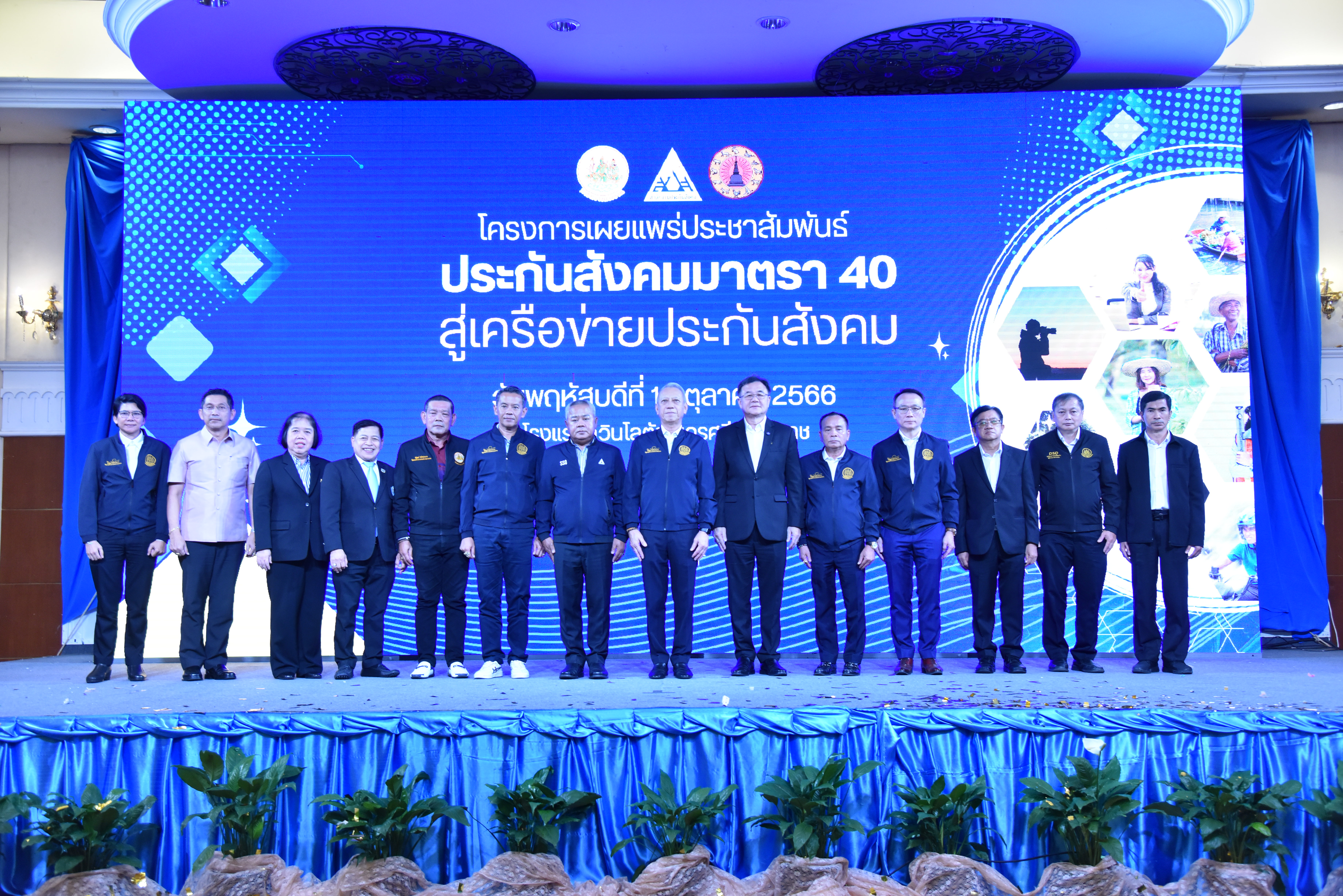 On October 19, 2023, at 13.00 hours, the Labour Minister, Mr. Phiphat Ratchakitprakarn, chaired the opening of the Social Security Section 40 Public Relations Project to the Social Security Network, Class 1, at the Bongkocharat Conference Room, The Twin Lotus Hotel, Nakhon Si Thammarat Province. The Secretariat to the Labour Minister, Mr. Aree Krainara, from the Prime Minister’s Secretariat’s Office, performing duties for the Ministry of Labour, Mr. Phuchong Worasri, Governor of Nakhon Si Thammarat Province, Mr. Khajonkiat Rakpanichmanee, the Social Security Office’s Secretary-General, Mr. Boonsong Thapchaiyut, the Ministry of Labour’s executives, heads of government agencies under the Ministry of Labour, insured persons, networks, project participants, and staff gave a welcome.