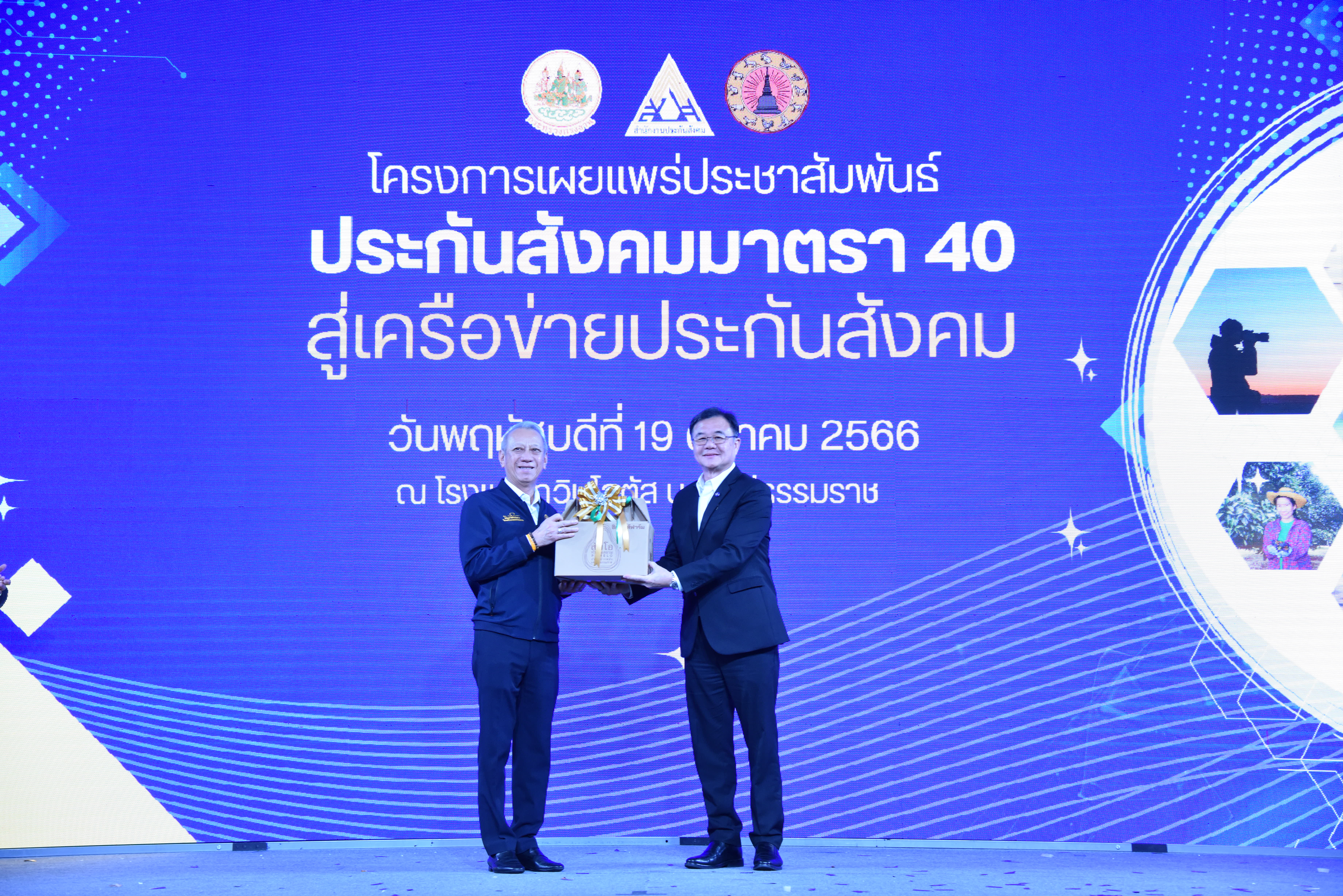 ด้าน นายบุญสงค์ ทัพชัยยุทธ์ เลขาธิการสำนักงานประกันสังคม กระทรวงแรงงาน เปิดเผยว่า การจัดโครงการเผยแพร่ประชาสัมพันธ์ประกันสังคมมาตรา 40 สู่เครือข่ายประกันสังคม รุ่นที่ 1 ในครั้งนี้ มีวัตถุประสงค์เพื่อเพิ่มพูนศักยภาพของเครือข่ายประกันสังคม ให้มีความรู้ ความเข้าใจเกี่ยวกับการเข้าถึงสิทธิประโยชน์ที่ผู้ประกันตนจะได้รับจากการคุ้มครองประกันสังคม เพื่อนำไปขยายผล รณรงค์ กระตุ้น ให้แรงงานภาคอิสระ เข้าสู่ระบบประกันสังคมเพิ่มขึ้น ซึ่งการจัดกิจกรรมในวันนี้ มีผู้เข้าร่วมงานจำนวน 400 คน ประกอบด้วย ผู้ประกันตนตามมาตรา 40 ผู้ประกอบอาชีพอิสระ เครือข่ายประกันสังคม อาสาสมัครแรงงาน ผู้นำชุมชน กำนัน ผู้ใหญ่บ้าน ในจังหวัดนครศรีธรรมราช ในการนี้ ท่านพิพัฒน์ รัฐมนตรีแรงงาน ยังได้มอบเกียรติบัตรให้แก่เครือข่ายที่สนับสนุนงานประกันสังคมดีเด่น จำนวน 6 ราย นอกจากนี้ ภายในบริเวณงานยังจัดให้มีการให้บริการรับสมัครผู้ประกันตนมาตรา 40 การอภิปรายร่วมแลกเปลี่ยนความรู้ด้านประกันสังคมมาตรา 40 การออกร้านจำหน่ายสินค้าของเครือข่าย การจัดนิทรรศการต่าง ๆ ของหน่วยงานในสังกัดกระทรวงแรงงาน รวมทั้งการจัดกิจกรรมของภาคีเครือข่ายอีกด้วย