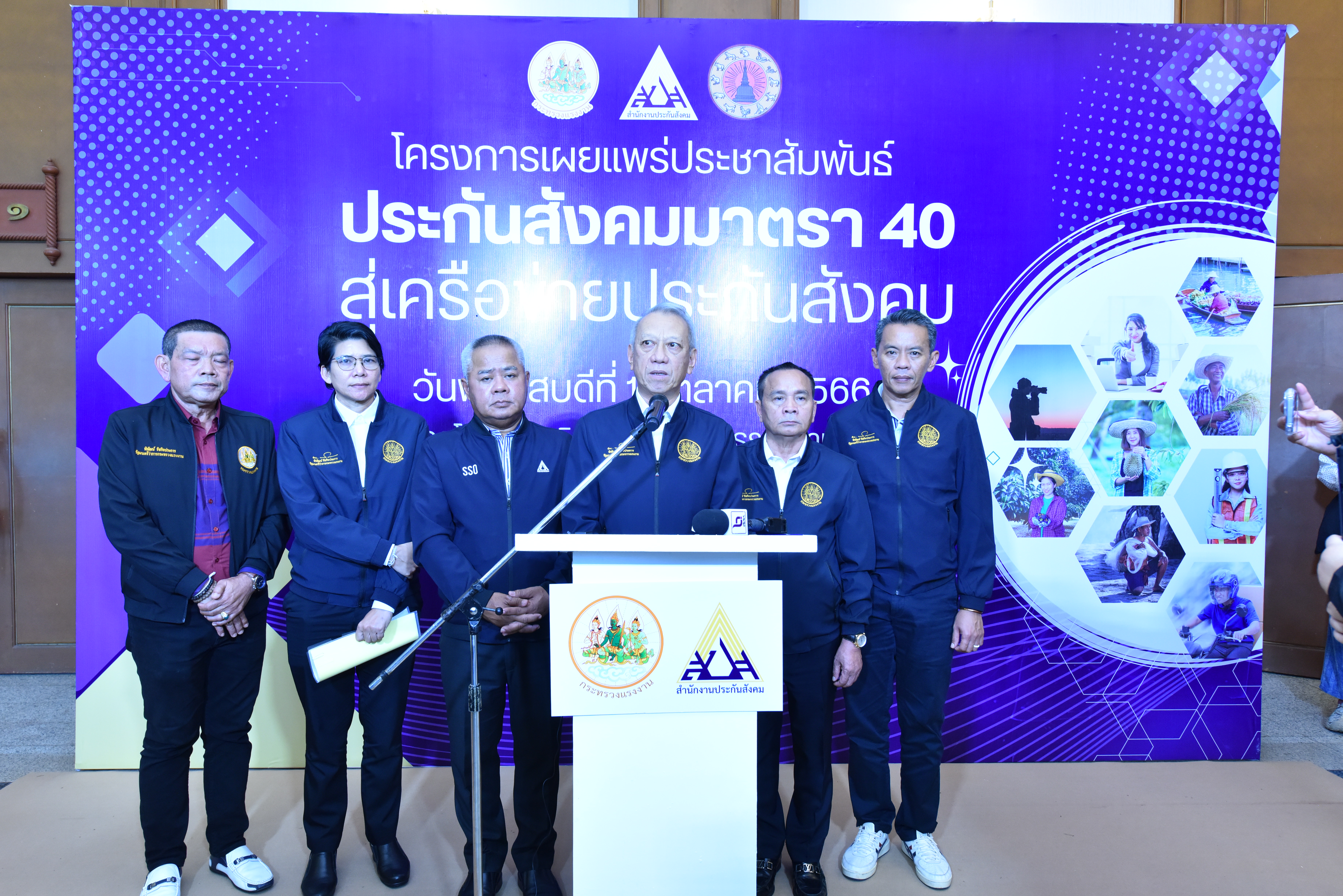 The Labour Minister, Mr. Phiphat Ratchakitprakarn, said that one of the Ministry of Labour’s key policies is to “create an economic foundation improving the quality of life through labour protection.” Therefore, participation in driving the creation of social security at the local level through the social security network mechanism is an important foundation for national development. Today, he had the opportunity to commence the Social Security Section 40 Public Relations Project to the first batch of the social security network in Nakhon Si Thammarat Province. It is part of a campaign to invite self-employed groups to have access to 5 instances of protection rights and to help spread awareness of the benefits of Social Security Section 40 in all three options. Option 1 is to pay 70 Baht. The benefits and protection received cover three cases: compensation for lost income when sick, compensation for disabilities, and funeral expenses. Option 1 is to pay 100 Baht. The benefits and protection received cover four cases, including compensation for lost income when sick, compensation for disabilities, funeral expenses, and old age gratuity. Option 3 is to pay 300 Baht. The benefits and protection received cover five cases, including compensation for lost income when sick, compensation for disabilities, funeral expenses, old age pension, and child support. Those interested can apply for more benefits from the social security system under Section 40. Currently, there are 10,956,984 people insured under Section 40 nationwide. There are 24,509 Social Security Network representatives, 397,165 insured persons under Section 40 registered under the Social Security Network, and 263,429 people under the “Bowon” network, a group belonging to houses, temples, schools, and factories.