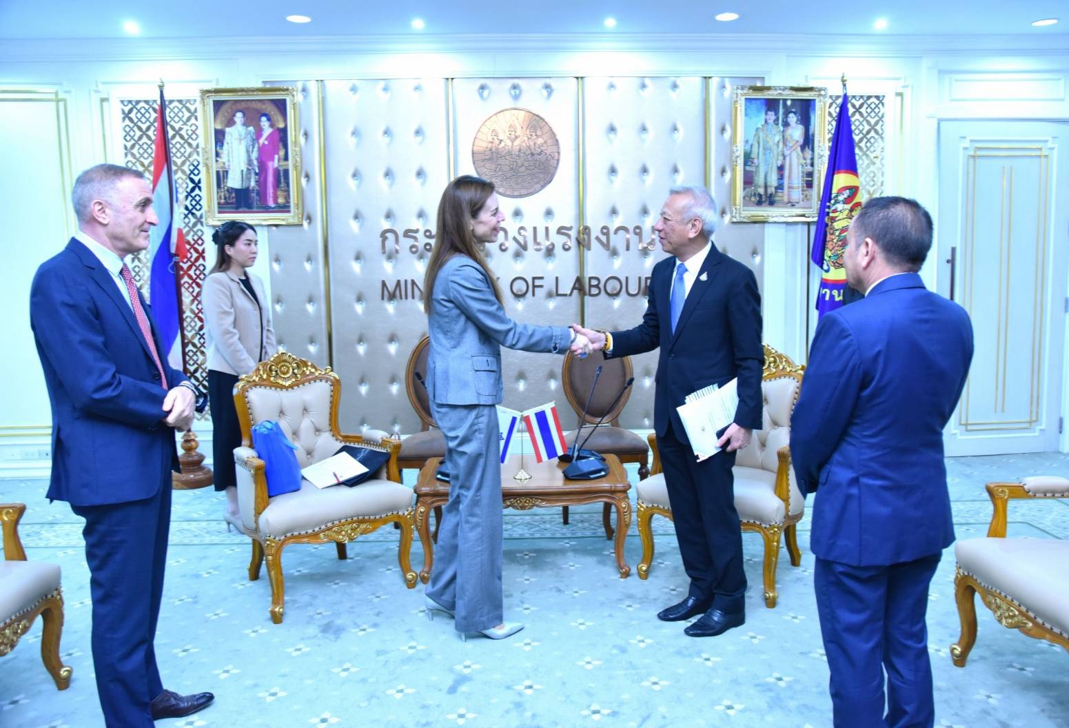 วันที่ 8 ธันวาคม 2566 เวลา 11.00 น. นายพิพัฒน์ รัชกิจประการ รัฐมนตรีว่าการกระทรวงแรงงาน ให้การต้อนรับ นางออร์นา ซากิฟ เอกอัครราชทูตอิสราเอลประจำประเทศไทย ในโอกาสเข้าพบเพื่อหารือถึงโอกาสในการจัดส่งแรงงานไทยกลับไปทำงานในประเทศอิสราเอลภายหลังสถานการณ์ความไม่สงบคลี่คลายลง โดยมี นายอารี ไกรนรา เลขานุการรัฐมนตรีว่าการกระทรวงแรงงาน นายสมาสภ์ ปัทมะสุคนธ์ ผู้ตรวจราชการกระทรวงแรงงาน ณ ห้องจัตุมงคล ชั้น 6 อาคารกระทรวงแรงงาน