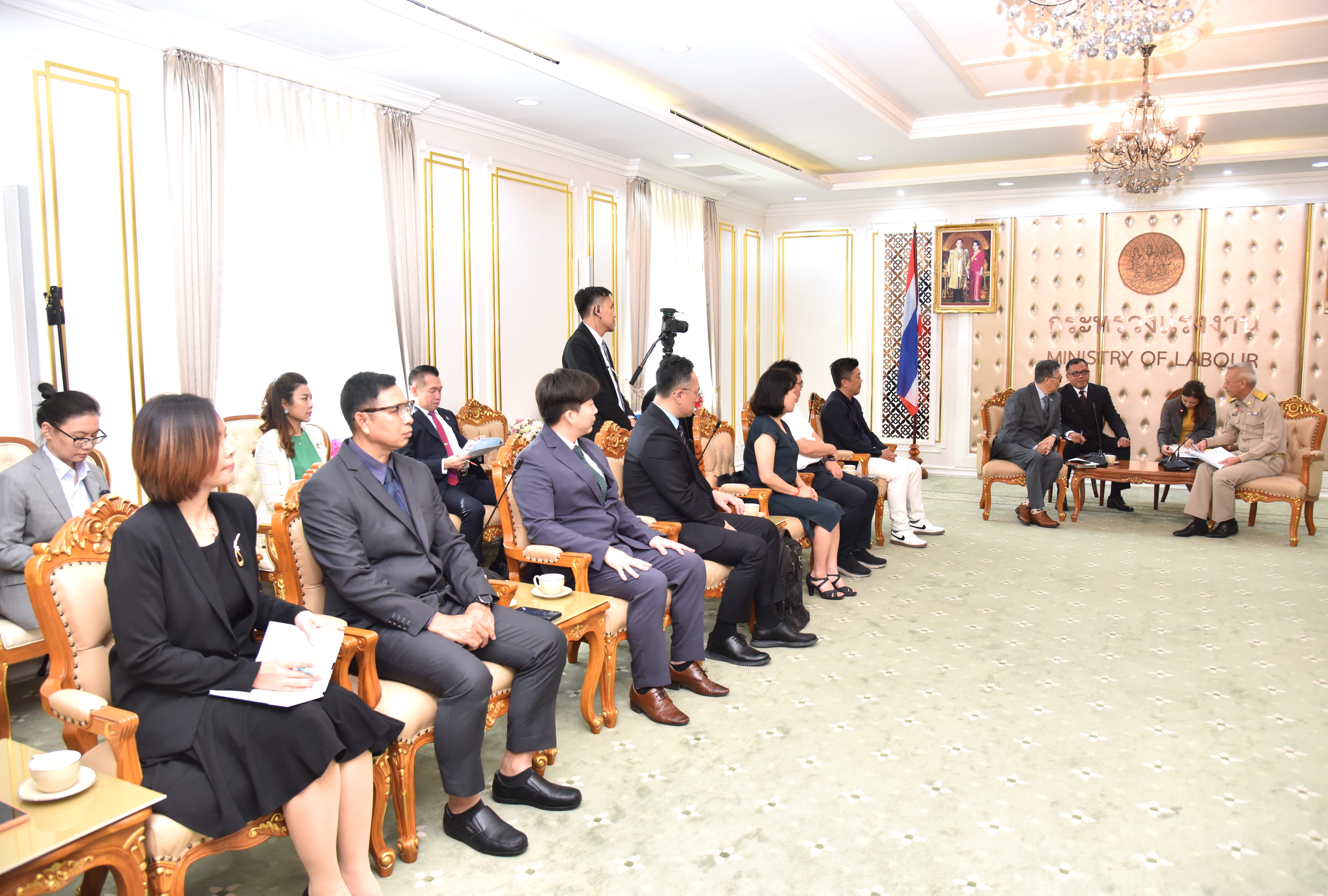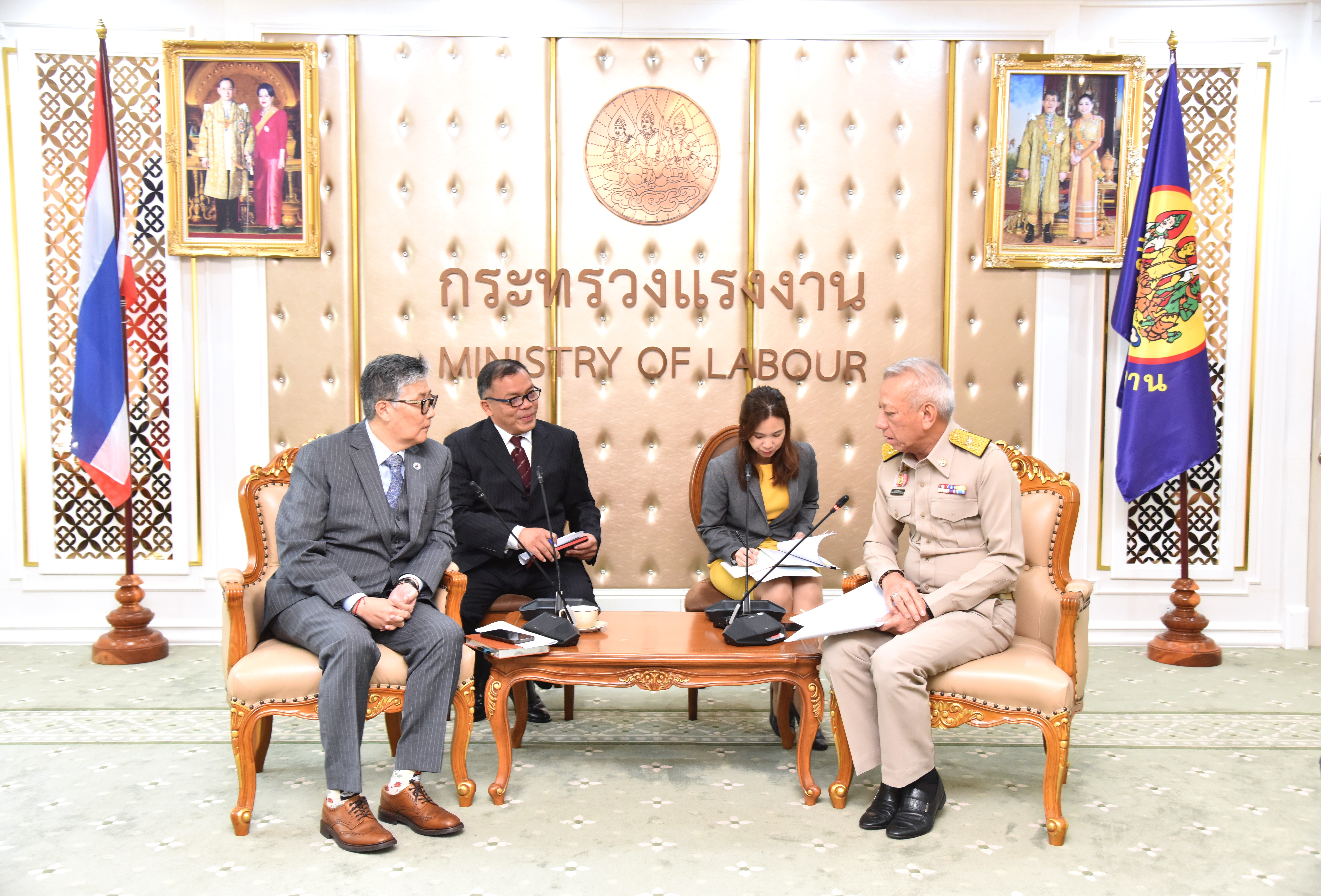 ด้าน นายคิม จองมิน (Mr.Kim Jongmin) ประธานหอการค้าเกาหลี – ไทย กล่าวว่า วันนี้ขอขอบคุณท่านรัฐมนตรีว่าการกระทรวงแรงงานของไทยเป็นอย่างยิ่งที่เปิดโอกาสให้เข้าพบและหารือถึงโอกาสหารือแนวทางการส่งเสริมขยายตลาดแรงงานไทยในสาธารณรัฐเกาหลี ซึ่งต้องขอแสดงความยินดีที่ท่านเข้ารับตำแหน่งใหม่ นี่คือก้าวสำคัญที่เราจะได้กระชับความสัมพันธ์ระหว่างกันทั้งสองประเทศ ซึ่งแรงงานไทยเป็นที่ต้องการของนายจ้างเกาหลี เนื่องจากบุคลิกของคนไทยมีความเป็นกันเองจึงเป็นที่ถูกใจของนายจ้าง ภายหลังการหารือในวันนี้จะเป็นโอกาสอันนี้ที่ทั้งสองประเทศจะร่วมมือกัน โดยเฉพาะความร่วมมือในการเพิ่มโควตาการจัดส่งแรงงานในภาคเกษตร ภาคประมง และสาขาอุตสาหกรรมใหม่ก็จะเริ่มดำเนินการไปด้วยกัน เพื่อให้คนไทยมีโอกาสได้ไปทำงานในเกาหลีได้รวดเร็วยิ่งขึ้นต่อไป