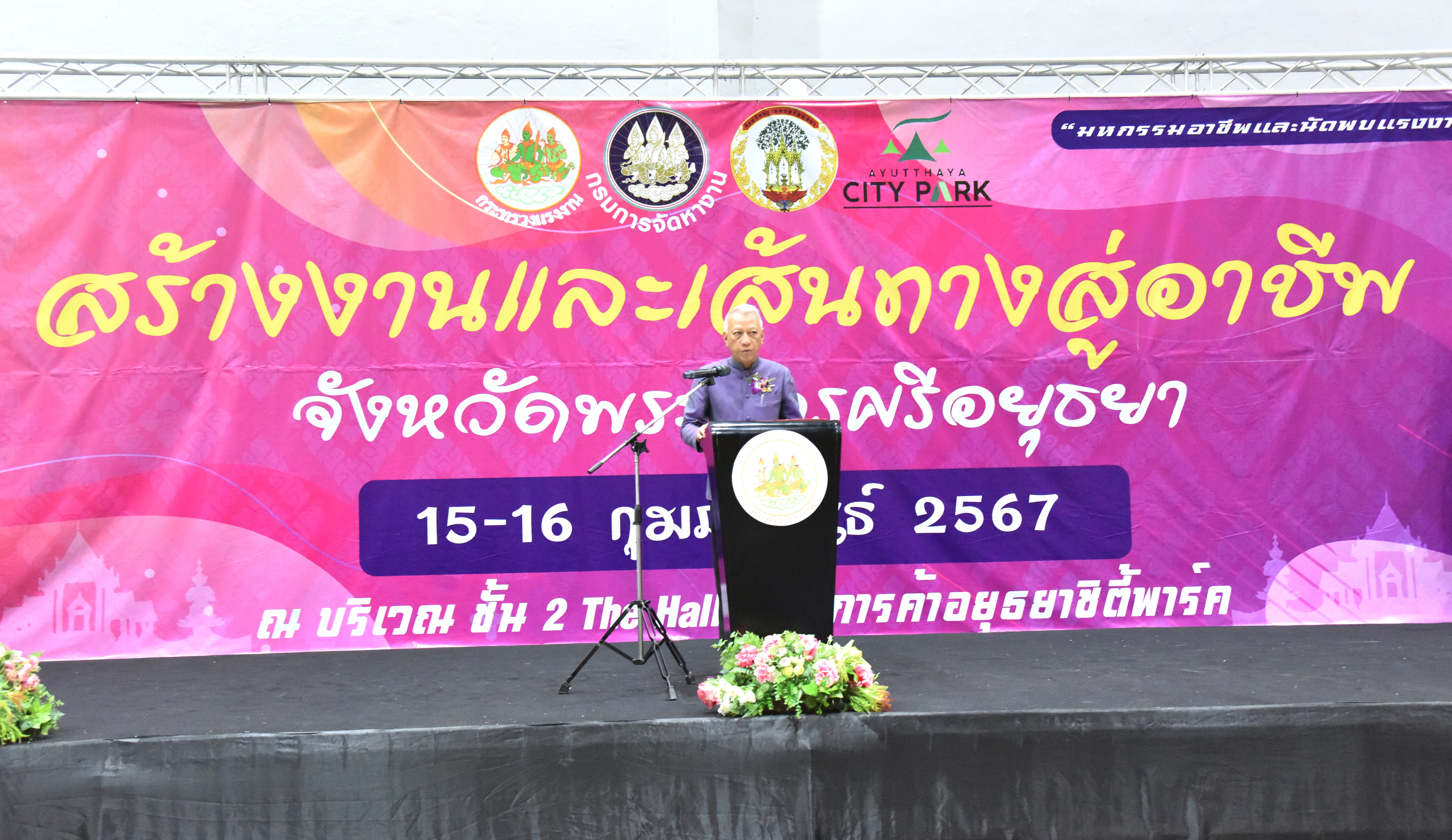 นายพิพัฒน์ รัชกิจประการ รัฐมนตรีว่าการกระทรวงแรงงาน เปิดเผยว่า การจัดงาน “สร้างงาน และเส้นทางสู่อาชีพ จังหวัดพระนครศรีอยุธยา” ในครั้งนี้เป็นส่วนหนึ่งของการขับเคลื่อนสู่เป้าหมายการจ้างงาน 1 ล้านอัตรา ภายในปี 2567 ด้วยการจัดกิจกรรมส่งเสริมให้คนหางาน และสถานประกอบการที่มีตำแหน่งงานว่าง มีโอกาสมาพบกัน พร้อมกับดึงเด็กนักเรียน นักศึกษาในพื้นที่โดยรอบที่กำลังจะเข้าสู่ตลาดแรงงาน มาร่วมกิจกรรมที่ทำให้รู้จักตนเอง รู้ความถนัด ทราบแนวโน้มตลาดแรงงานในอนาคต เพื่อเตรียมตัวได้อย่างเหมาะสม ซึ่งจังหวัดอยุธยา ถือเป็นจังหวัดที่มีความเหมาะสมในการจัดงานอย่างมาก เนื่องจากเป็นเขตพื้นที่เศรษฐกิจสำคัญของภาคกลาง เป็นศูนย์กลางอุตสาหกรรม ท่องเที่ยว งานหัตถกรรมไทย วิสาหกิจชุมชน และแหล่งเพาะปลูกพืชเศรษฐกิจ ทำให้มีสถานประกอบการมากกว่า 7,000 แห่งและมีความต้องการจ้างงานแรงงานจำนวนมาก ดึงดูดแรงงานจากจังหวัดใกล้เคียงและภูมิภาคต่างๆ ทั่วประเทศเคลื่อนย้ายสู่อยุธยา กระทรวงแรงงานจึงเลือกอยุธยาเป็นจุดยุทธศาสตร์สำคัญ ในการจัดงานเพื่อให้ประชาชนเข้าถึงบริการภาครัฐได้อย่างสะดวก และเกิดประโยชน์ต่อประชาชนทุกกลุ่ม