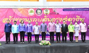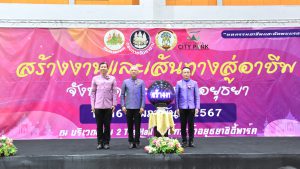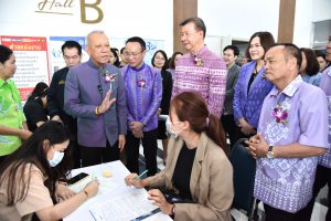 The Labour Minister, Mr. Phiphat Ratchakitprakarn, said that the objective of the “Create Jobs and Career Paths @Ayutthaya” event is part of the drive to increase employment by 1 million positions in 2024. The event activities aim to give jobseekers and companies with job vacancies a chance to meet and encourage students in the surrounding area who are about to enter the workforce to join the activities that will allow them to get to know themselves and their skills. It also allows participants to gain insight into future labor market trends to prepare properly. Ayutthaya Province is suitable for organizing such events as it is an important economic area of the central region. It is a center of industry, tourism, Thai handicrafts, community enterprises, and cultivation areas for economic crops. As a result, there are over 7,000 companies with a high demand for workers. It attracts workers from nearby provinces and regions and from all over the country to move to Ayutthaya. The Ministry of Labour, therefore, chose Ayutthaya as an important strategic location to organize the event to allow people to conveniently access government services for the benefit of all groups of people.