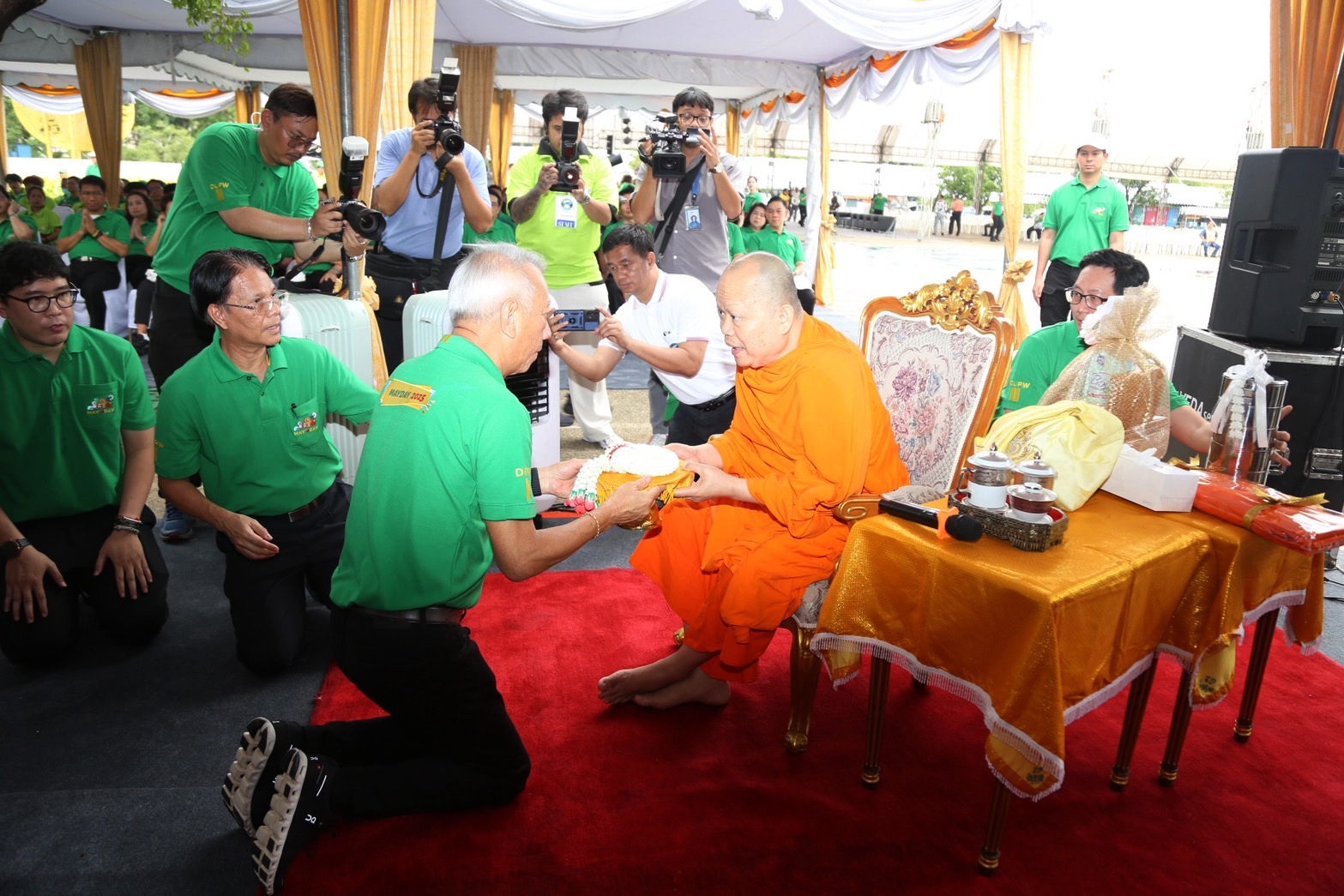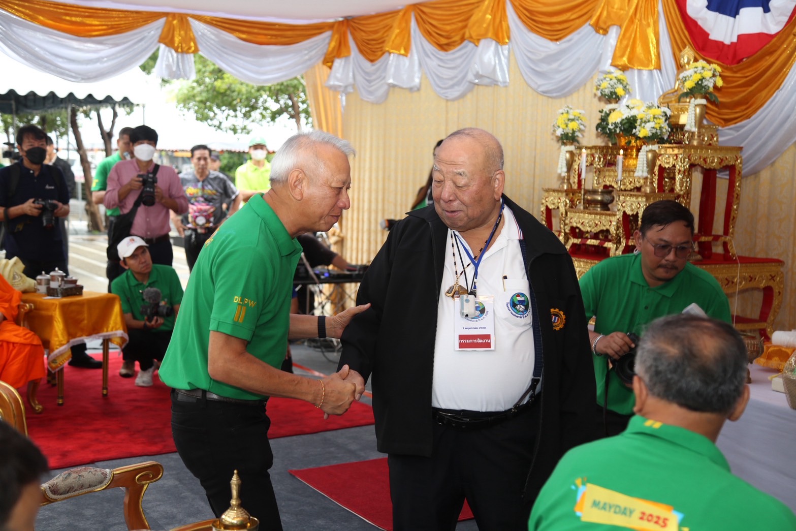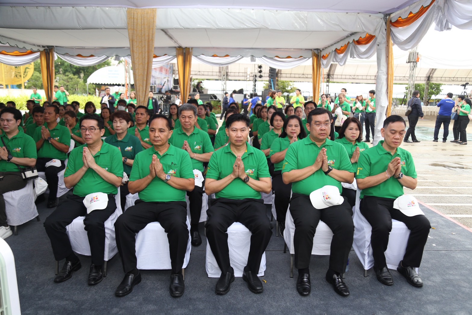 วันที่ 1 พฤษภาคม 2568 เวลา 07.30 น. นายพิพัฒน์ รัชกิจประการ รัฐมนตรีว่าการกระทรวงแรงงาน เป็นประธานในพิธีเจริญพระพุทธมนต์ เนื่องในวันแรงงานแห่งชาติแด่พระสงฆ์ จำนวน 9 รูป โดยมี พระพรหมวชิรมุนี เจ้าอาวาสวัดสุทัศนเทพวราราม ราชวรมหาวิหาร เป็นประธานฝ่ายสงฆ์ นายสิรภพ ดวงสอดศรี ผู้ช่วยรัฐมนตรีประจำกระทรวงแรงงาน นายอารี ไกรนรา เลขานุการรัฐมนตรีว่าการกระทรวงแรงงาน นายภุชงค์ วรศรี ประจำสำนักเลขาธิการนายกรัฐมนตรี ปฏิบัติหน้าที่ประจำกระทรวงแรงงาน นายบุญสงค์ ทัพชัยยุทธ์ ปลัดกระทรวงแรงงาน นางสาวบุปผา เรืองสุด รองปลัดกระทรวงแรงงาน นายสมาสภ์ ปัทมะสุคนธ์ รองปลัดกระทรวงแรงงาน นายสันติ นันตสุวรรณ รองปลัดกระทรวงแรงงาน และผู้บริหารระดับสูงกระทรวงแรงงาน เจ้าหน้าที่หน่วยงานในสังกัดกระทรวงแรงงาน เข้าร่วมพิธีสงฆ์ ณ ลานคนเมือง ศาลาว่าการกรุงเทพมหานคร