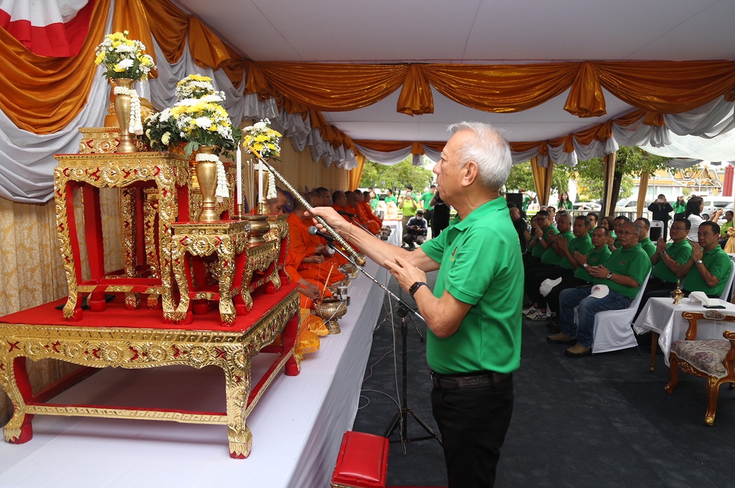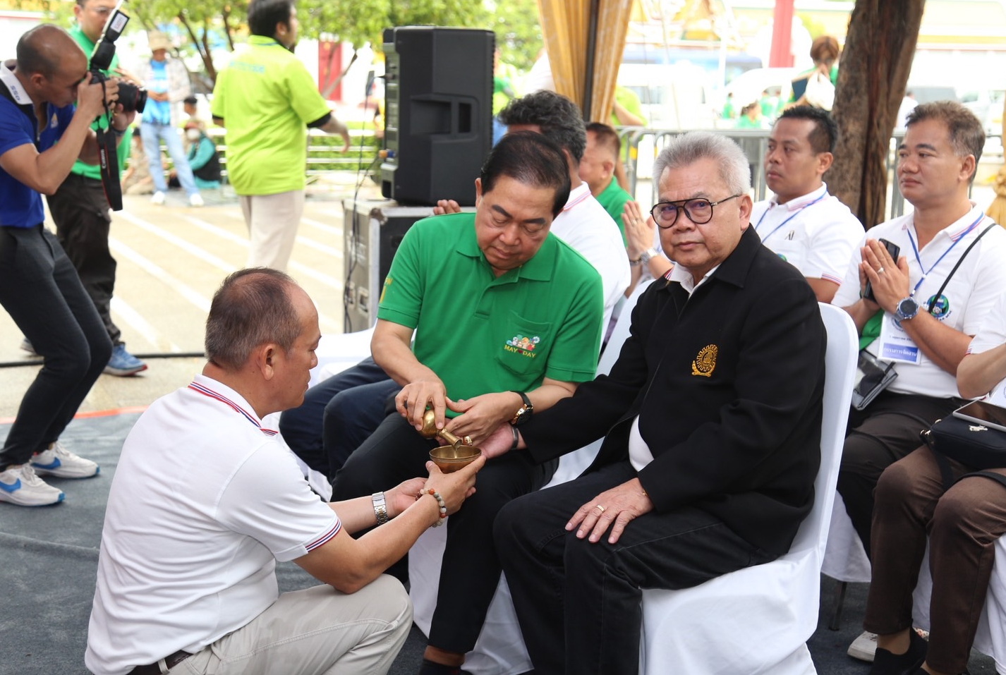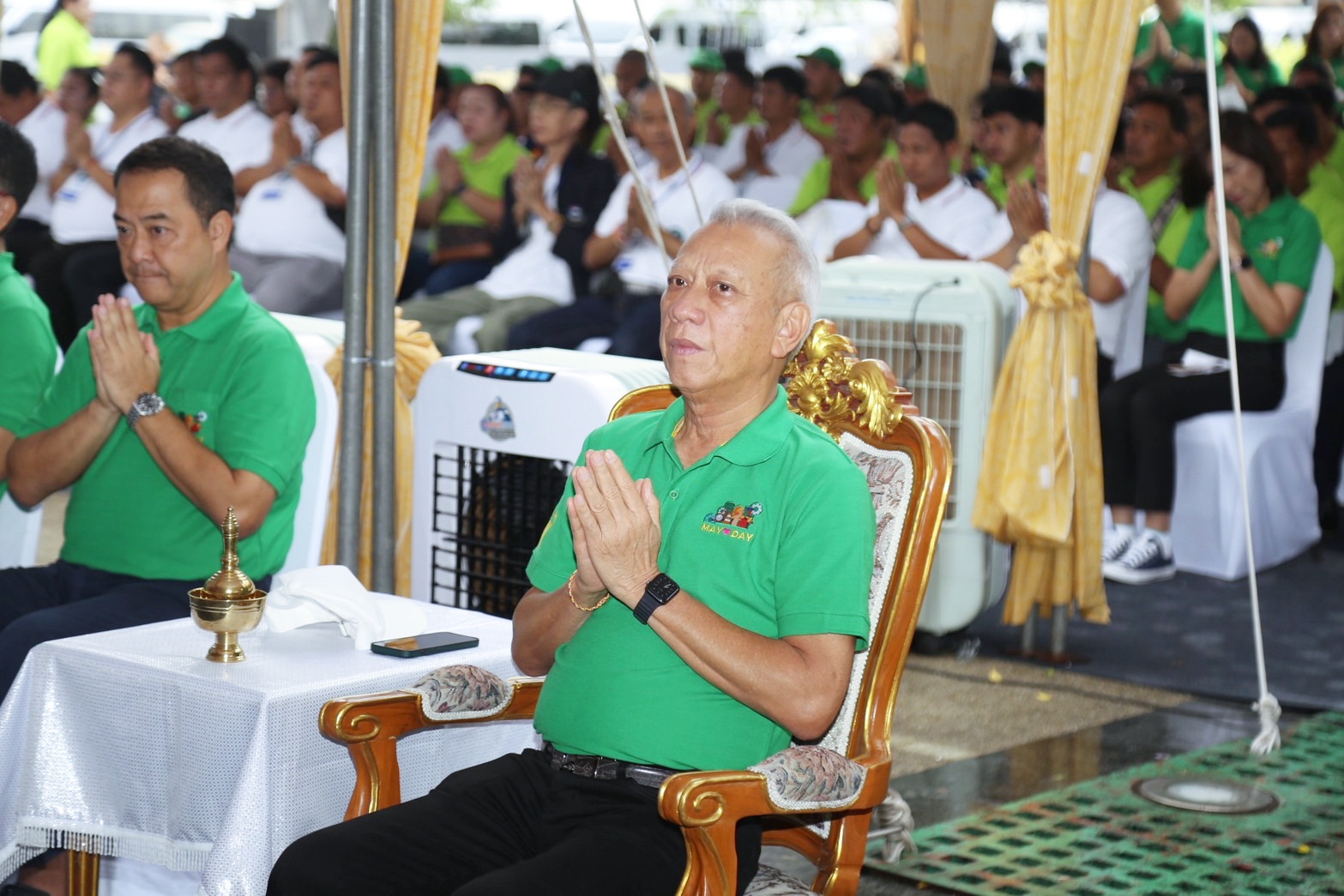 วันที่ 1 พฤษภาคม 2568 เวลา 07.30 น. นายพิพัฒน์ รัชกิจประการ รัฐมนตรีว่าการกระทรวงแรงงาน เป็นประธานในพิธีเจริญพระพุทธมนต์ เนื่องในวันแรงงานแห่งชาติแด่พระสงฆ์ จำนวน 9 รูป โดยมี พระพรหมวชิรมุนี เจ้าอาวาสวัดสุทัศนเทพวราราม ราชวรมหาวิหาร เป็นประธานฝ่ายสงฆ์ นายสิรภพ ดวงสอดศรี ผู้ช่วยรัฐมนตรีประจำกระทรวงแรงงาน นายอารี ไกรนรา เลขานุการรัฐมนตรีว่าการกระทรวงแรงงาน นายภุชงค์ วรศรี ประจำสำนักเลขาธิการนายกรัฐมนตรี ปฏิบัติหน้าที่ประจำกระทรวงแรงงาน นายบุญสงค์ ทัพชัยยุทธ์ ปลัดกระทรวงแรงงาน นางสาวบุปผา เรืองสุด รองปลัดกระทรวงแรงงาน นายสมาสภ์ ปัทมะสุคนธ์ รองปลัดกระทรวงแรงงาน นายสันติ นันตสุวรรณ รองปลัดกระทรวงแรงงาน และผู้บริหารระดับสูงกระทรวงแรงงาน เจ้าหน้าที่หน่วยงานในสังกัดกระทรวงแรงงาน เข้าร่วมพิธีสงฆ์ ณ ลานคนเมือง ศาลาว่าการกรุงเทพมหานคร