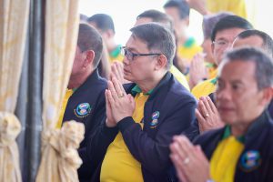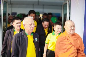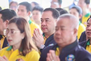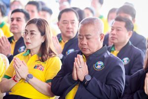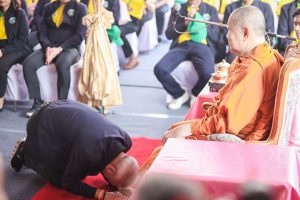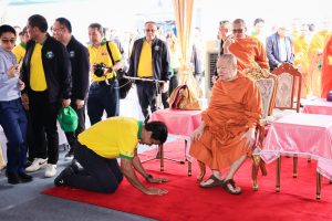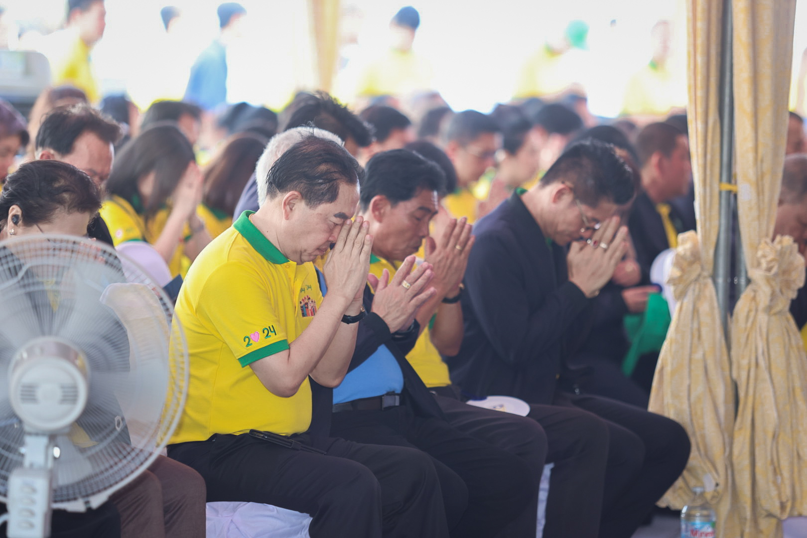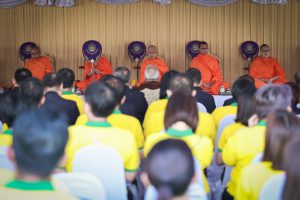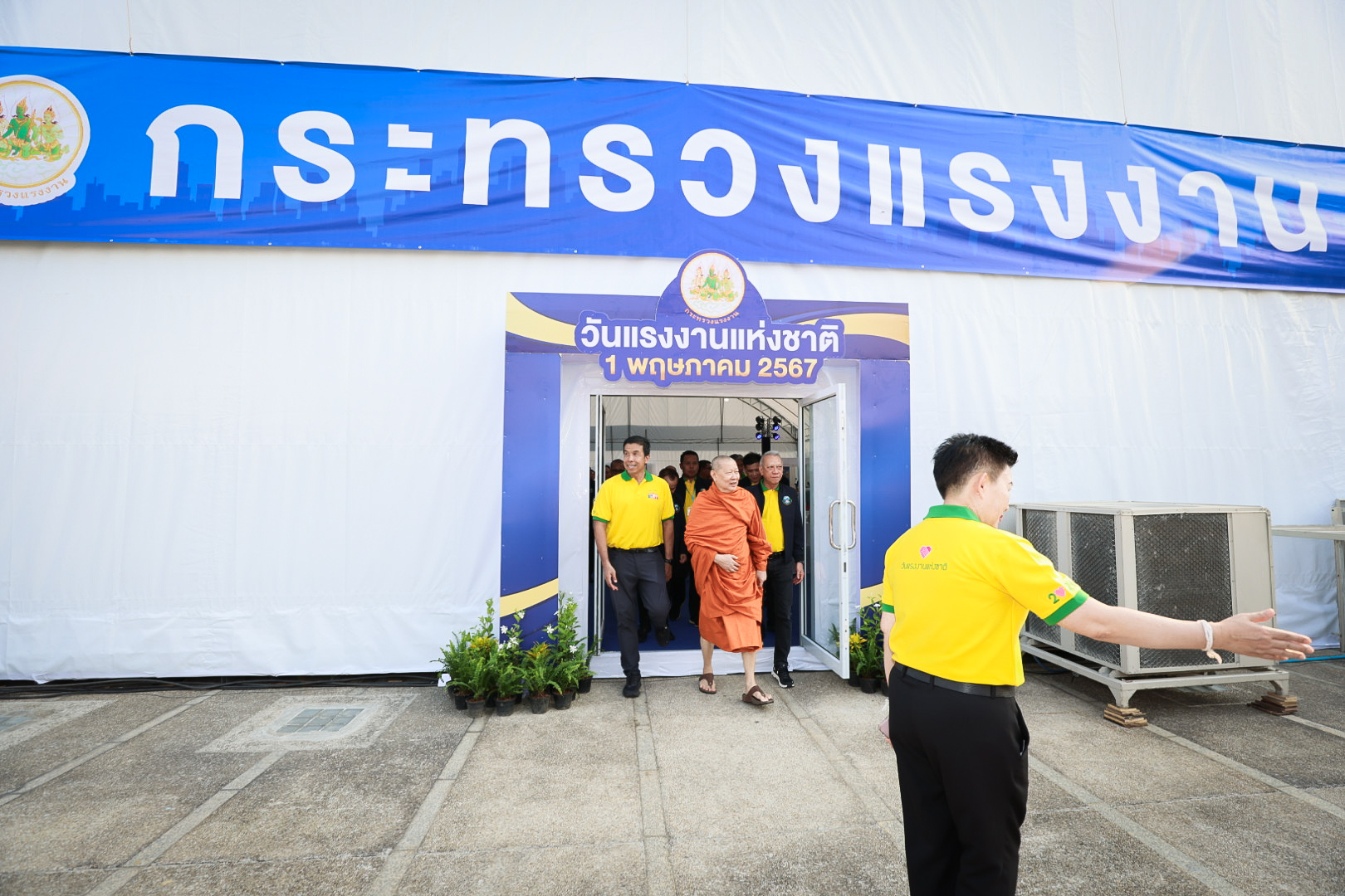 On May 1, 2024, at 07.30 hours, the Labour Minister, Mr. Phiphat Ratchakitprakarn, presided over the merit-making ceremony for nine monks on National Labour Day. Somdet Phra Maha Ratchamongkol Muni (Chao Khun Thongchai) from Wat Traimit Wittayaram Worawihan presided over the ceremony from the monk’s side.