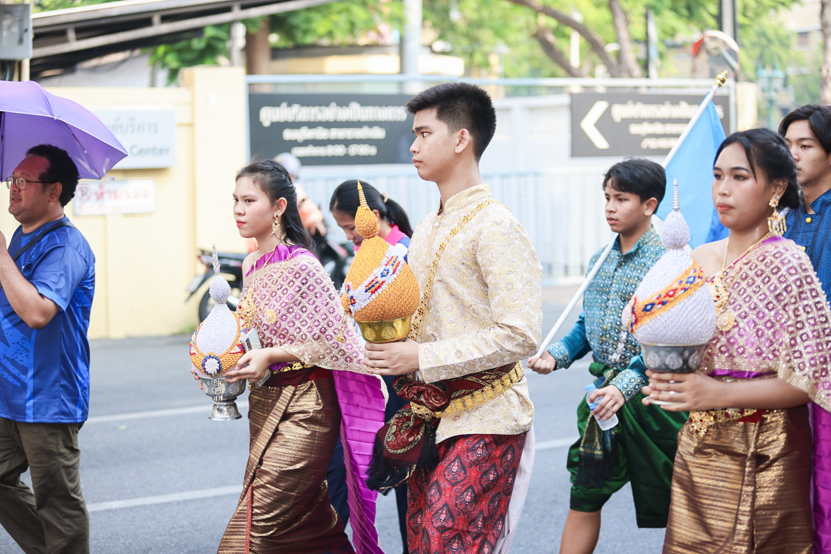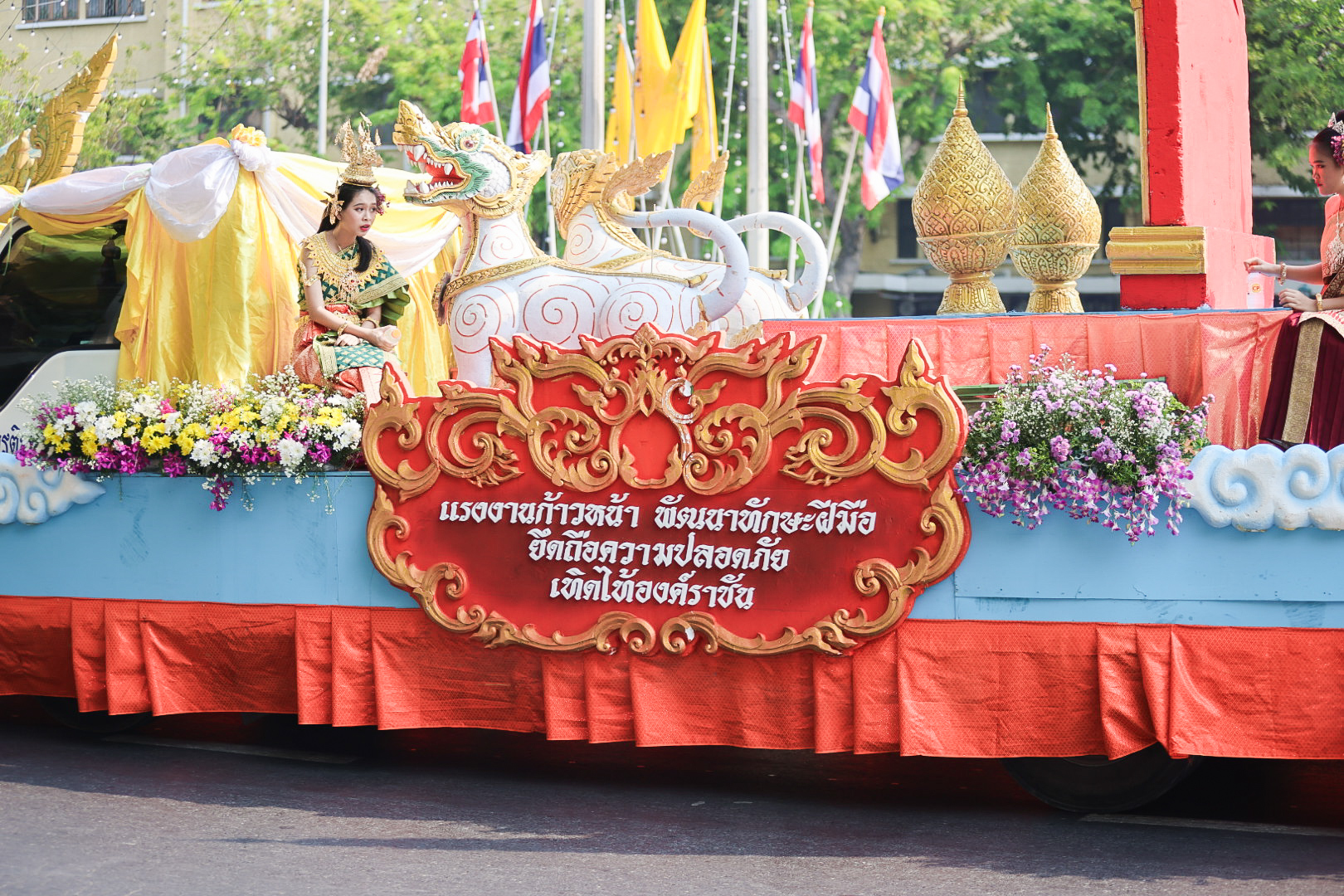 Then there was a procession to honour His Majesty the King, with a procession of executives and officials of the Ministry of Labour and a procession of workers. The processions moved out of the crossroad area at Rajadamnern Nok Road and moved to the city square, Bangkok City Hall.