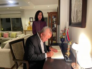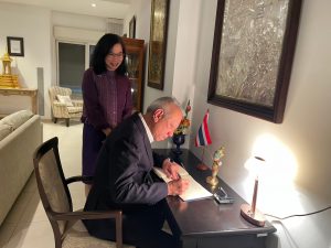เมื่อวันที่ 15 มกราคม 2568 นายพิพัฒน์ รัชกิจประการ รัฐมนตรีว่าการกระทรวงแรงงาน พร้อมด้วย นายบุญสงค์ ทัพชัยยุทธ์ ปลัดกระทรวงแรงงาน นายสมชาย มรกตศรีวรรณ อธิบดีกรมการจัดหางาน นายศักดินาถ สนธิศักดิ์โยธิน ผู้ช่วยปลัดกระทรวงแรงงาน นายกิตติ์ธนา ศรีสุริยะ อัครราชทูตที่ปรึกษา (ฝ่ายแรงงาน) และคณะผู้บริหารกระทรวงแรงงาน เข้าเยี่ยมทำเนียบเอกอัครราชทูต ณ กรุงเทลอาวีฟ อิสราเอล โดยมี นางสาวพรรณนภา จันทรารมย์ เอกอัครราชทูต และคณะ ให้การต้อนรับ ในการนี้ รัฐมนตรีว่าการกระทรวงแรงงาน และปลัดกระทรวงแรงงาน ได้ลงนามในสมุดเยี่ยม ด้วย