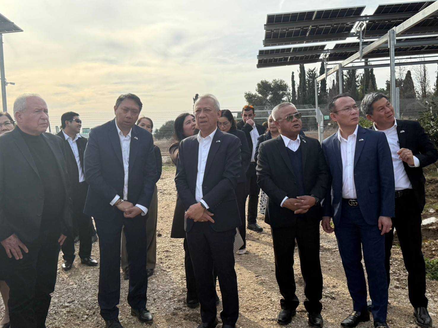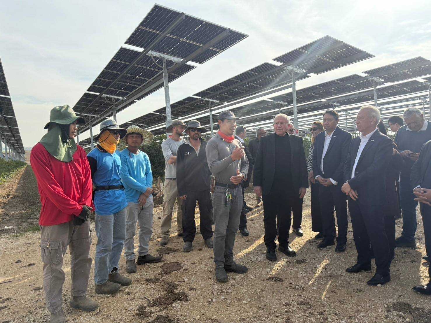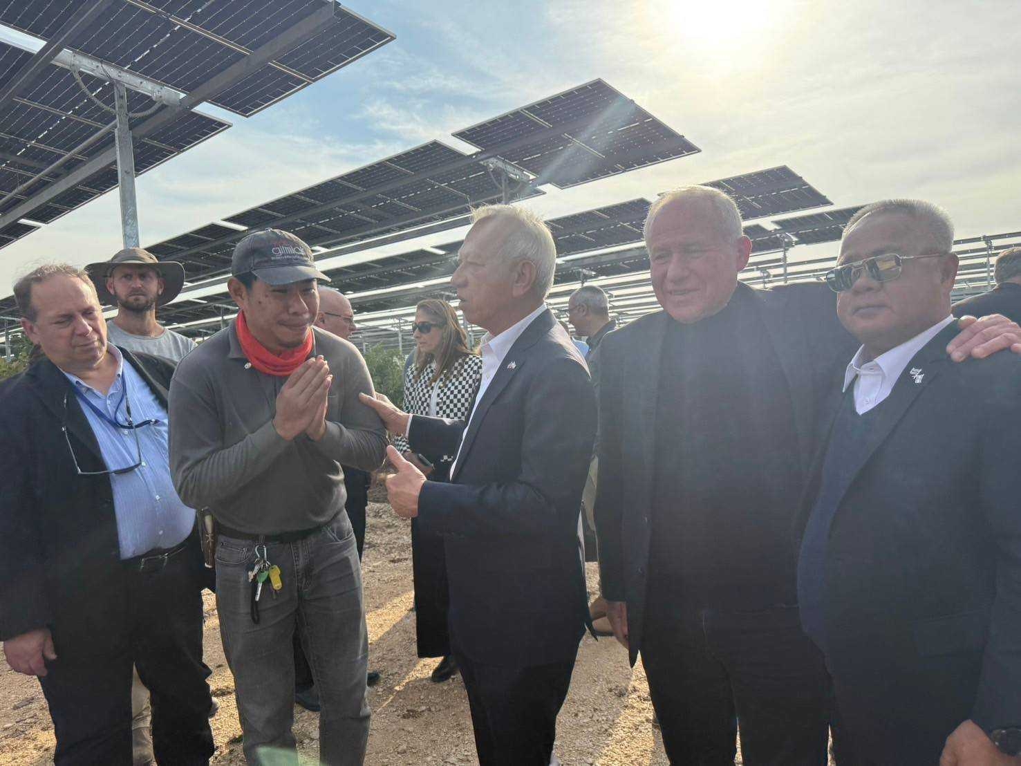วันที่ 14 มกราคม 2568 เวลา 14.00 น. ตามเวลาท้องถิ่นอิสราเอล นายพิพัฒน์ รัชกิจประการ รัฐมนตรีว่าการกระทรวงแรงงาน พร้อมด้วย นายบุญสงค์ ทัพชัยยุทธ์ ปลัดกระทรวงแรงงาน นายสมชาย มรกตศรีวรรณ อธิบดีกรมการจัดหางาน นางสาวพรรณนภา จันทรารมย์ เอกอัครราชทูต นายศักดินาถ สนธิศักดิ์โยธิน ผู้ช่วยปลัดกระทรวงแรงงาน นายกิตติ์ธนา ศรีสุริยะ อัครราชทูตที่ปรึกษา (ฝ่ายแรงงาน) และคณะผู้บริหารกระทรวงแรงงาน ลงพื้นที่ เยี่ยมให้กำลังใจแรงงานไทยในฟาร์ม Agrivoltaics ประเทศอิสราเอล