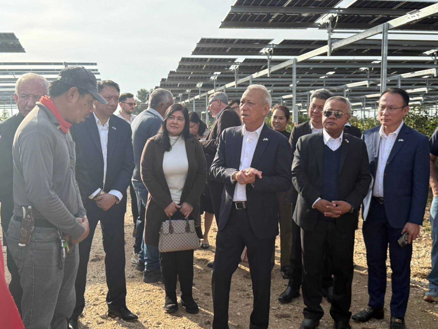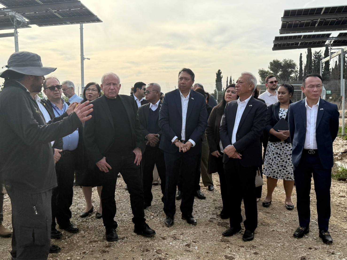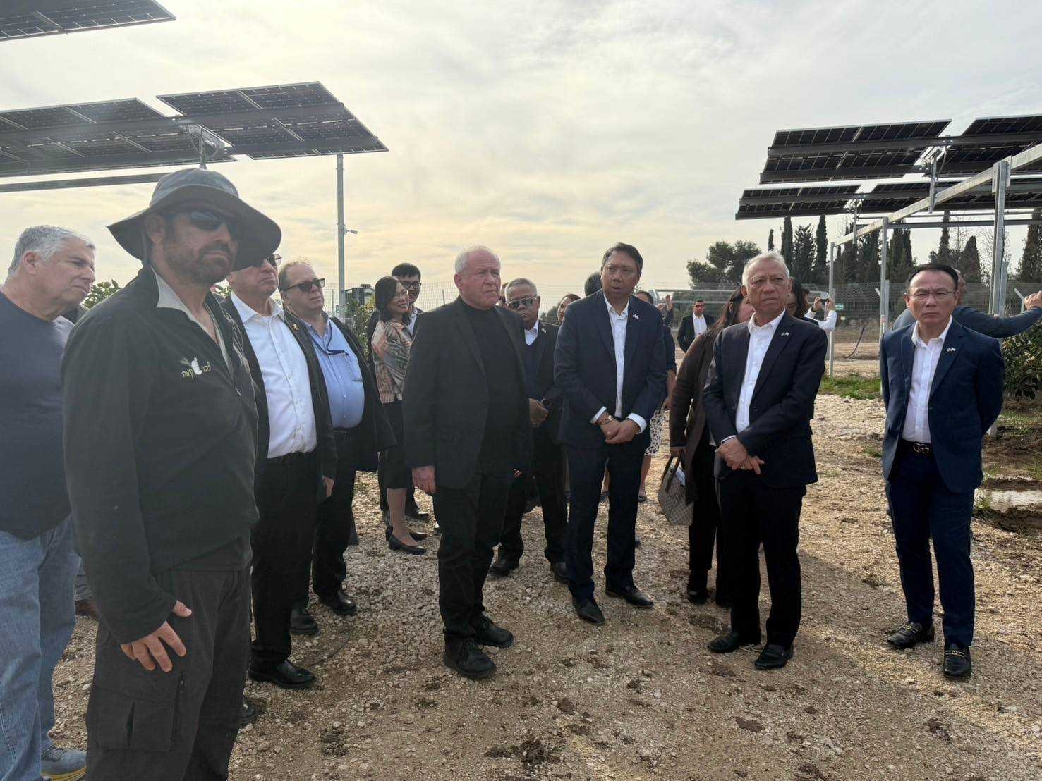 วันที่ 14 มกราคม 2568 เวลา 14.00 น. ตามเวลาท้องถิ่นอิสราเอล นายพิพัฒน์ รัชกิจประการ รัฐมนตรีว่าการกระทรวงแรงงาน พร้อมด้วย นายบุญสงค์ ทัพชัยยุทธ์ ปลัดกระทรวงแรงงาน นายสมชาย มรกตศรีวรรณ อธิบดีกรมการจัดหางาน นางสาวพรรณนภา จันทรารมย์ เอกอัครราชทูต นายศักดินาถ สนธิศักดิ์โยธิน ผู้ช่วยปลัดกระทรวงแรงงาน นายกิตติ์ธนา ศรีสุริยะ อัครราชทูตที่ปรึกษา (ฝ่ายแรงงาน) และคณะผู้บริหารกระทรวงแรงงาน ลงพื้นที่ เยี่ยมให้กำลังใจแรงงานไทยในฟาร์ม Agrivoltaics ประเทศอิสราเอล
