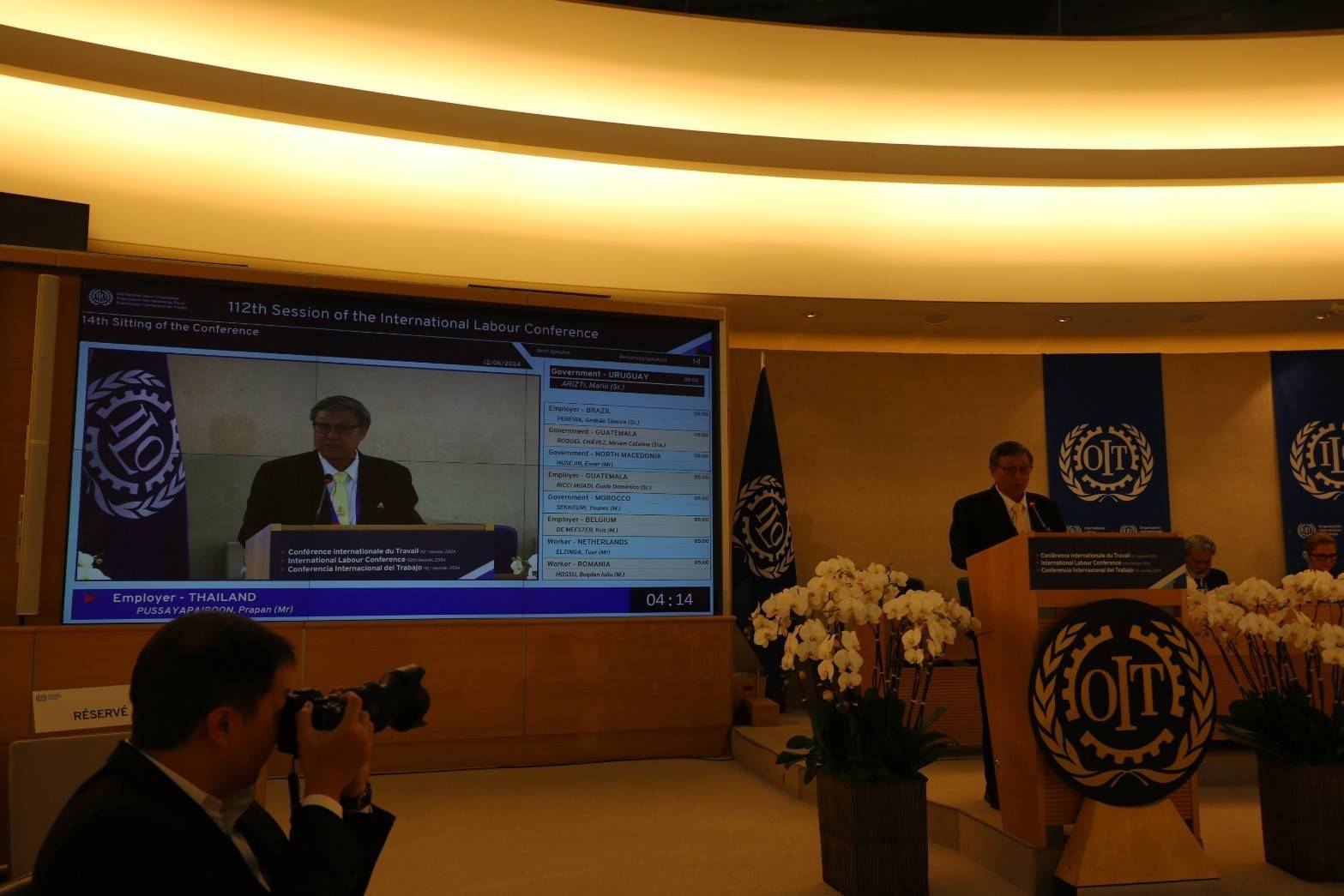 วันที่ 12 มิถุนายน 2567 นายพิพัฒน์ รัชกิจประการ รัฐมนตรีว่าการกระทรวงแรงงาน มอบหมายให้ นายสิรภพ ดวงสอดศรี ผู้ช่วยรัฐมนตรีประจำกระทรวงแรงงาน เป็นผู้นำคณะผู้บริหารกระทรวงแรงงาน โดยมี นายไพโรจน์ โชติกเสถียร ปลัดกระทรวงแรงงาน นายศักดินาถ สนธิศักดิ์โยธิน ผู้ช่วยปลัดกระทรวงแรงงาน และผู้บริหารกระทรวงแรงงาน ร่วมรับฟังการกล่าวถ้อยแถลงของนายประพันธ์ ปุษยไพบูลย์ ประธานสภาองค์การนายจ้างการเกษตร ธุรกิจ อุตสาหกรรมไทย ผู้แทนฝ่ายนายจ้าง ในการประชุมใหญ่ประจำปีองค์การแรงงานระหว่างประเทศ (International Labour Conference: ILC) สมัยที่ 112 ณ Palais des Nations (UN) ณ นครเจนีวา สมาพันธรัฐสวิส