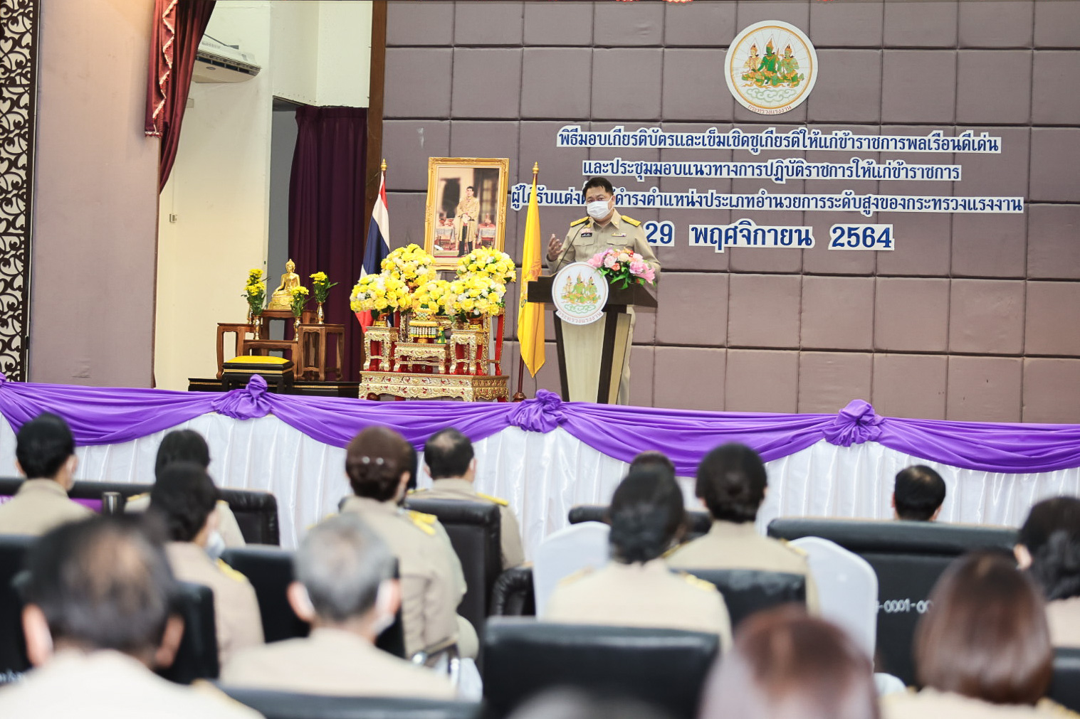 เมื่อวันที่ 29 พฤศจิกายน 2564 นายสุชาติ ชมกลิ่น รัฐมนตรีว่าการกระทรวงแรงงาน เป็นประธานในพิธีมอบเกียรติบัตรและเข็มเชิดชูเกียรติให้แก่ข้าราชการพลเรือนดีเด่นและประชุมมอบแนวทางการปฏิบัติราชการให้แก่ข้าราชการ ผู้ได้รับแต่งตั้งให้ดำรงตำแหน่งประเภทอำนวยการระดับสูงของกระทรวงแรงงาน ณ ห้องประชุมจอมพล ป. พิบูลสงคราม ชั้น 5 อาคารกระทรวงแรงงาน โดยมี นายสุรชัย ชัยตระกูลทอง ผู้ช่วยรัฐมนตรีประจำกระทรวงแรงงาน นางธิวัลรัตน์ อังกินันทน์ ที่ปรึกษารัฐมนตรีว่าการกระทรวงแรงงาน นายสุเทพ ชิตยวงษ์ เลขานุการรัฐมนตรีว่าการกระทรวงแรงงาน พล.ต.ต.นันทชาติ ศุภมงคล ประจำสำนักเลขาธิการนายกรัฐมนตรี ปฏิบัติหน้าที่ประจำกระทรวงแรงงาน นายบุญชอบ สุทธมนัสวงษ์ ปลัดกระทรวงแรงงาน พร้อมด้วย ผู้บริหารระดับสูงกระทรวงแรงงาน ร่วมเป็นเกียรติในพิธีดังกล่าว