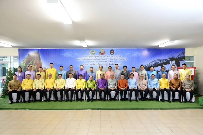วันที่ ๑๒ พฤศจิกายน ๒๕๖๒ เวลา ๐๘.๓๐ น. พลเอก ประยุทธ์ จันทร์โอชา นายกรัฐมนตรี เป็นประธานการประชุมการพัฒนาเศรษฐกิจและสังคมกลุ่มจังหวัดภาคกลางตอนล่าง ๑ ประกอบด้วย จังหวัดกาญจนบุรี ราชบุรี และสุพรรณบุรี และเป็นประธานการประชุมคณะรัฐมนตรีอย่างเป็นทางการนอกสถานที่ ครั้งที่ ๑/๒๕๖๒ โดยมี หม่อมราชวงศ์จัตุมงคล โสณกุล รัฐมนตรีว่าการกระทรวงแรงงาน เข้าร่วมประชุมในครั้งนี้ด้วย ณ ห้องประชุมอรพิม ชั้น ๒ อาคารบริการวิชาการและบัณฑิตศึกษา มหาวิทยาลัยราชภัฏกาญจนบุรี