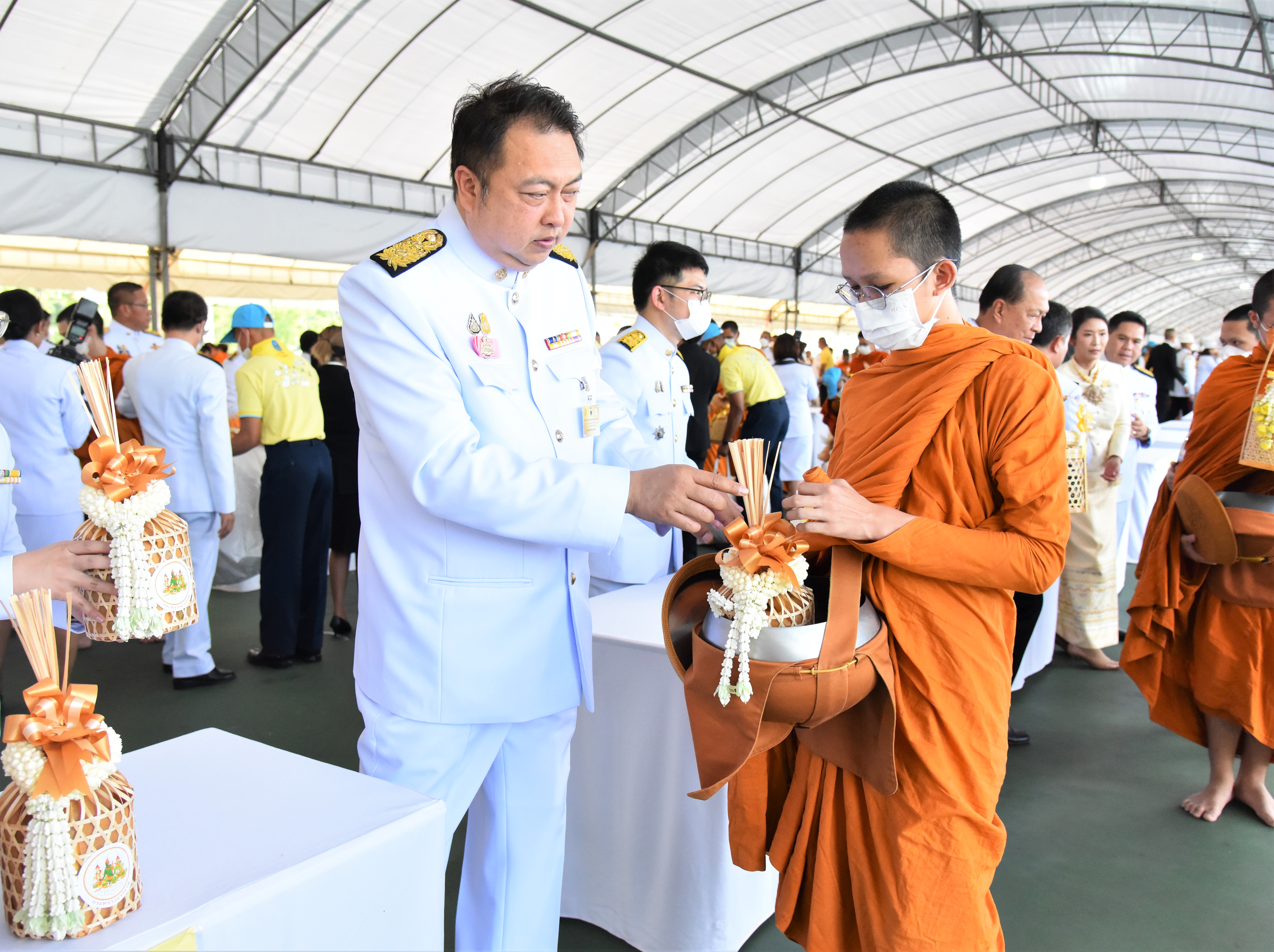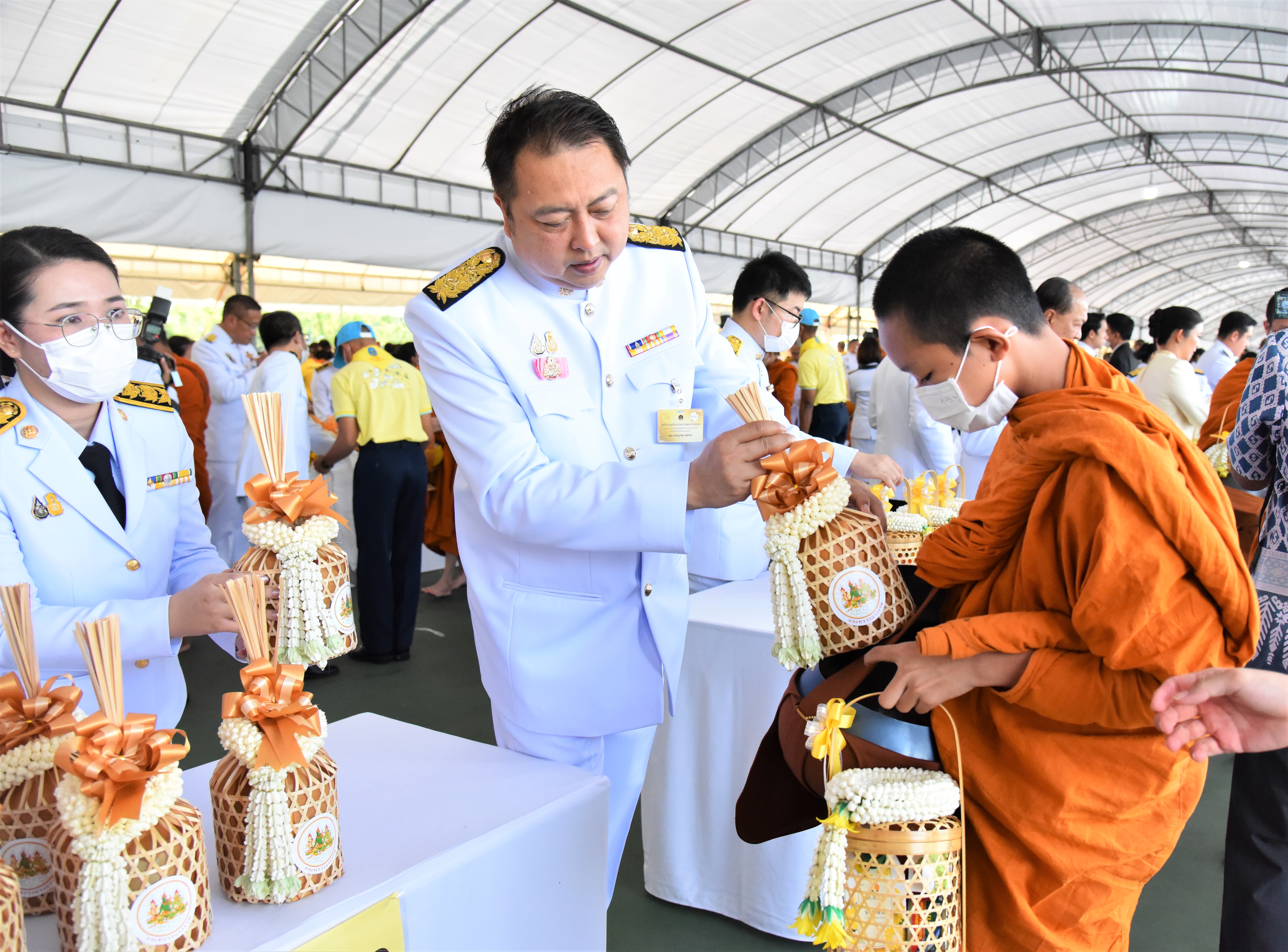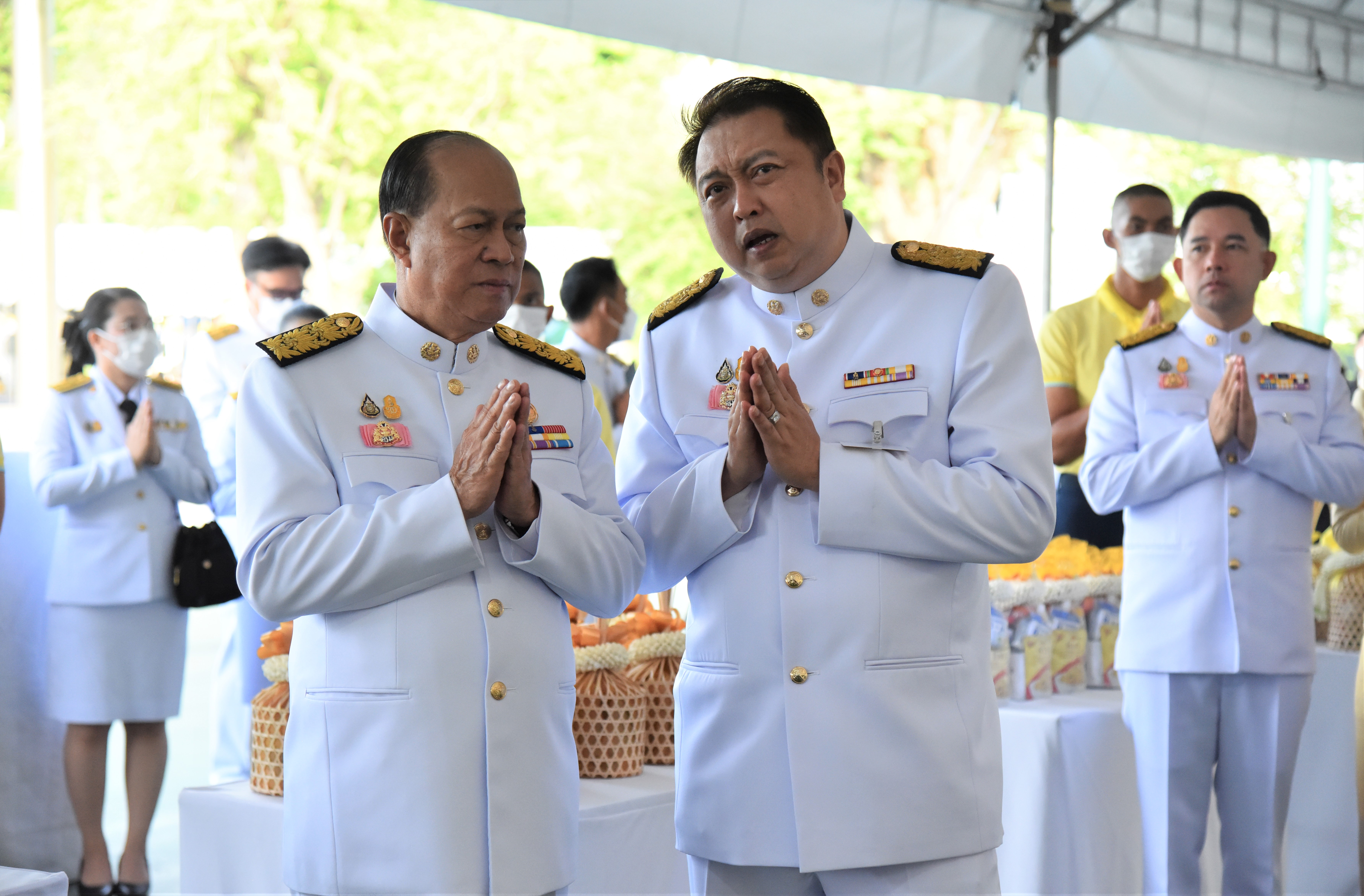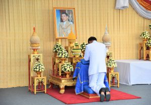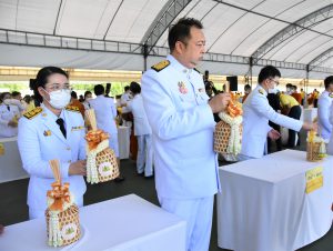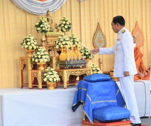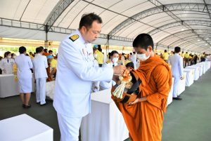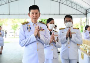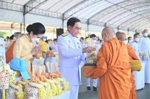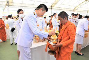 On July 28, 2023, at 07.00 hours, the Labour Minister, Mr. Suchart Chomklin, the Permanent Secretary of Labour, Mr. Boonchob Suttamanaswong, and the Ministry of Labour’s executives participated in the merit-making ceremony to offer alms to His Majesty the King on the occasion of His Majesty’s birthday on July 28, 2023. The Prime Minister and Minister of Defense, General Prayuth Chan-ocha, and wife, Mrs. Naraporn Chan-ocha, presided over the ceremony at Sanam Luang.