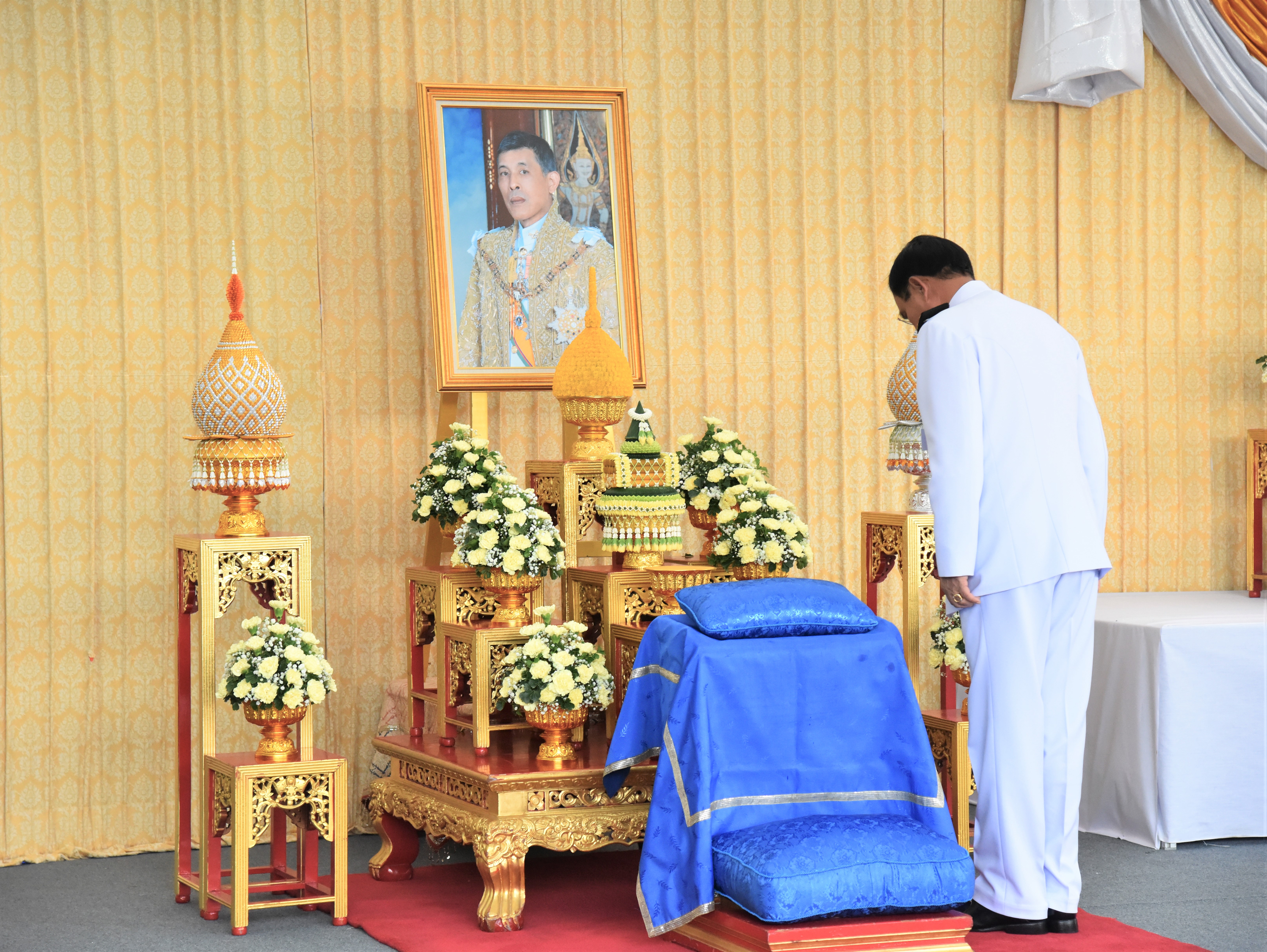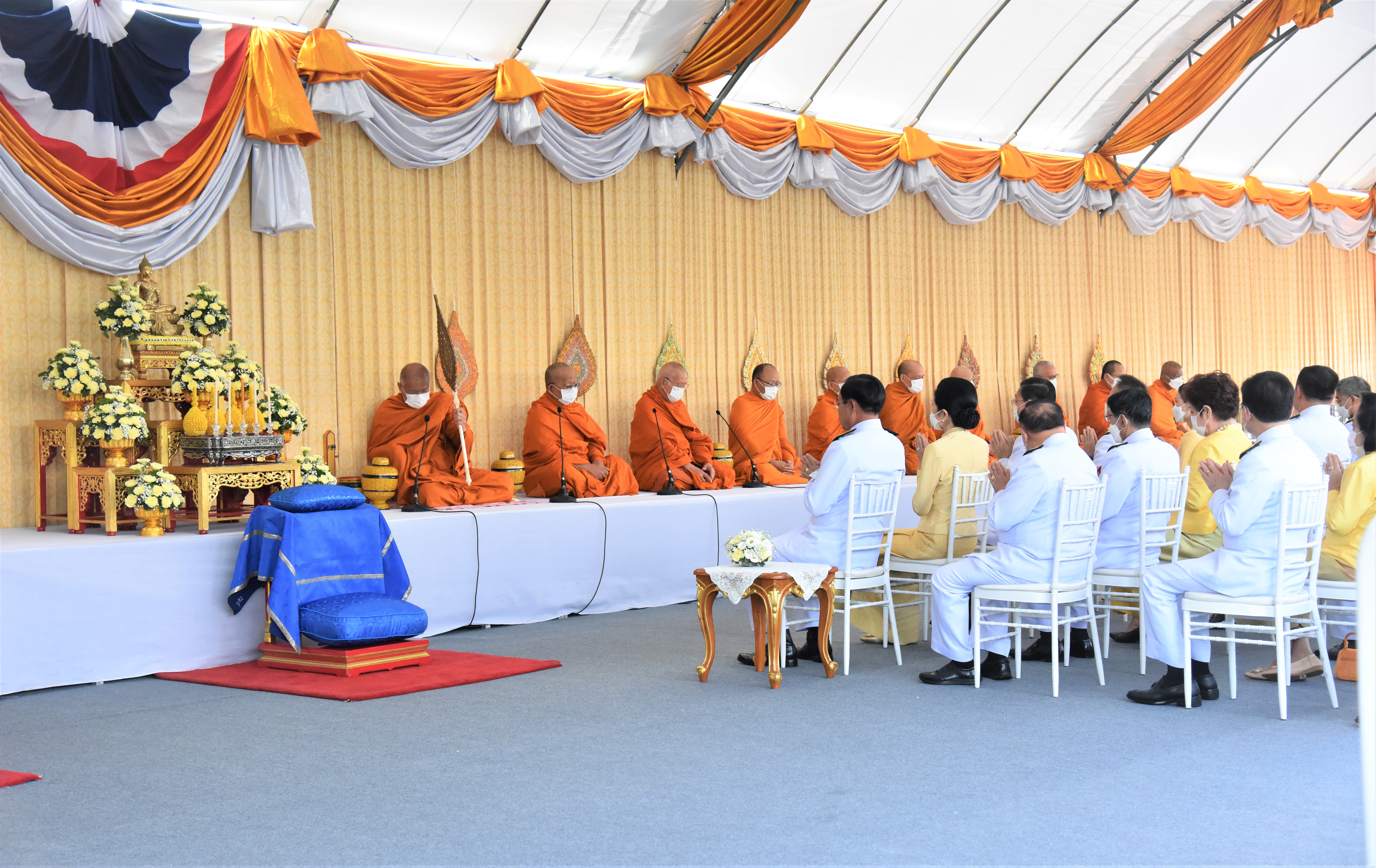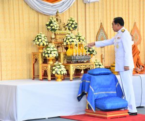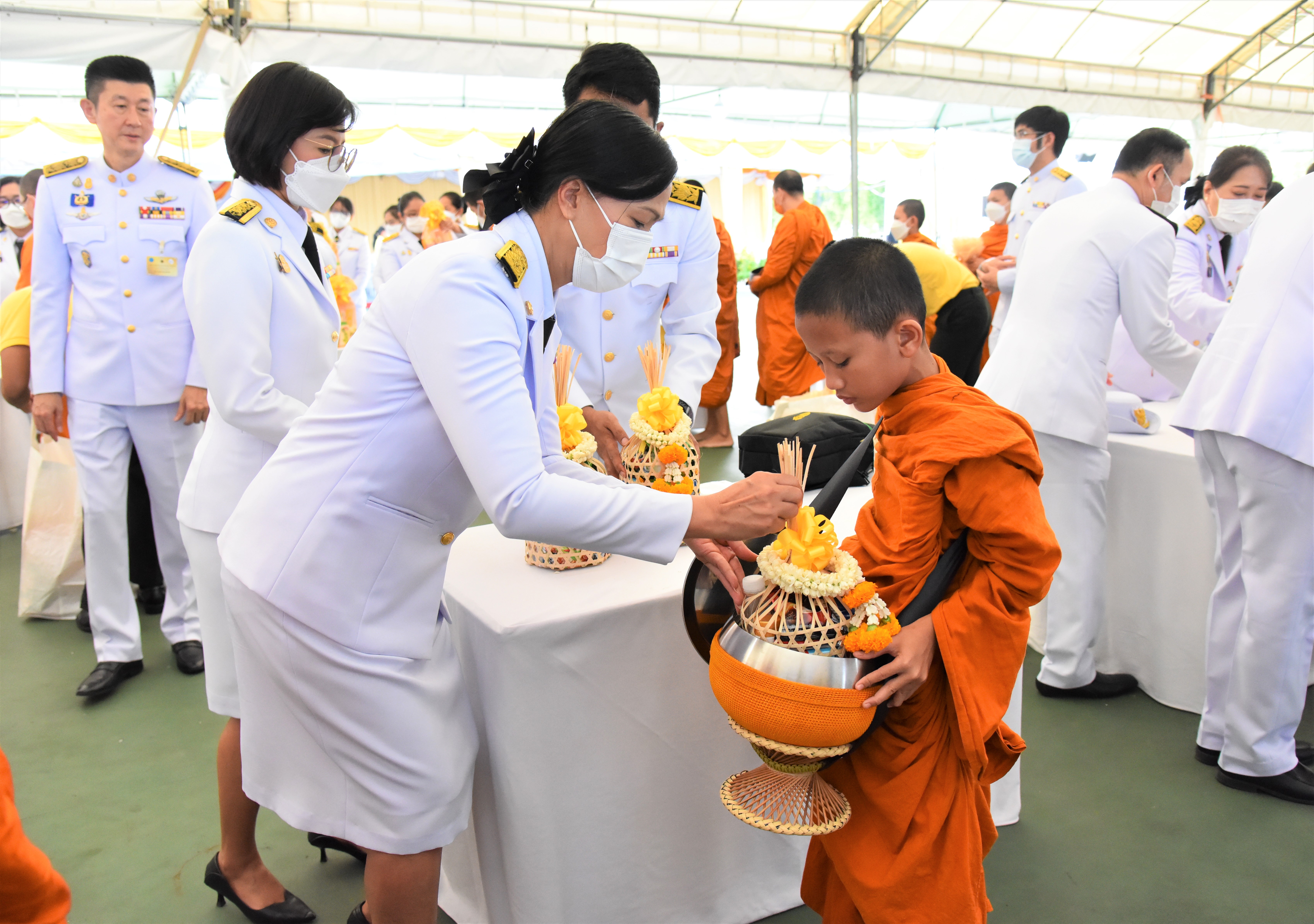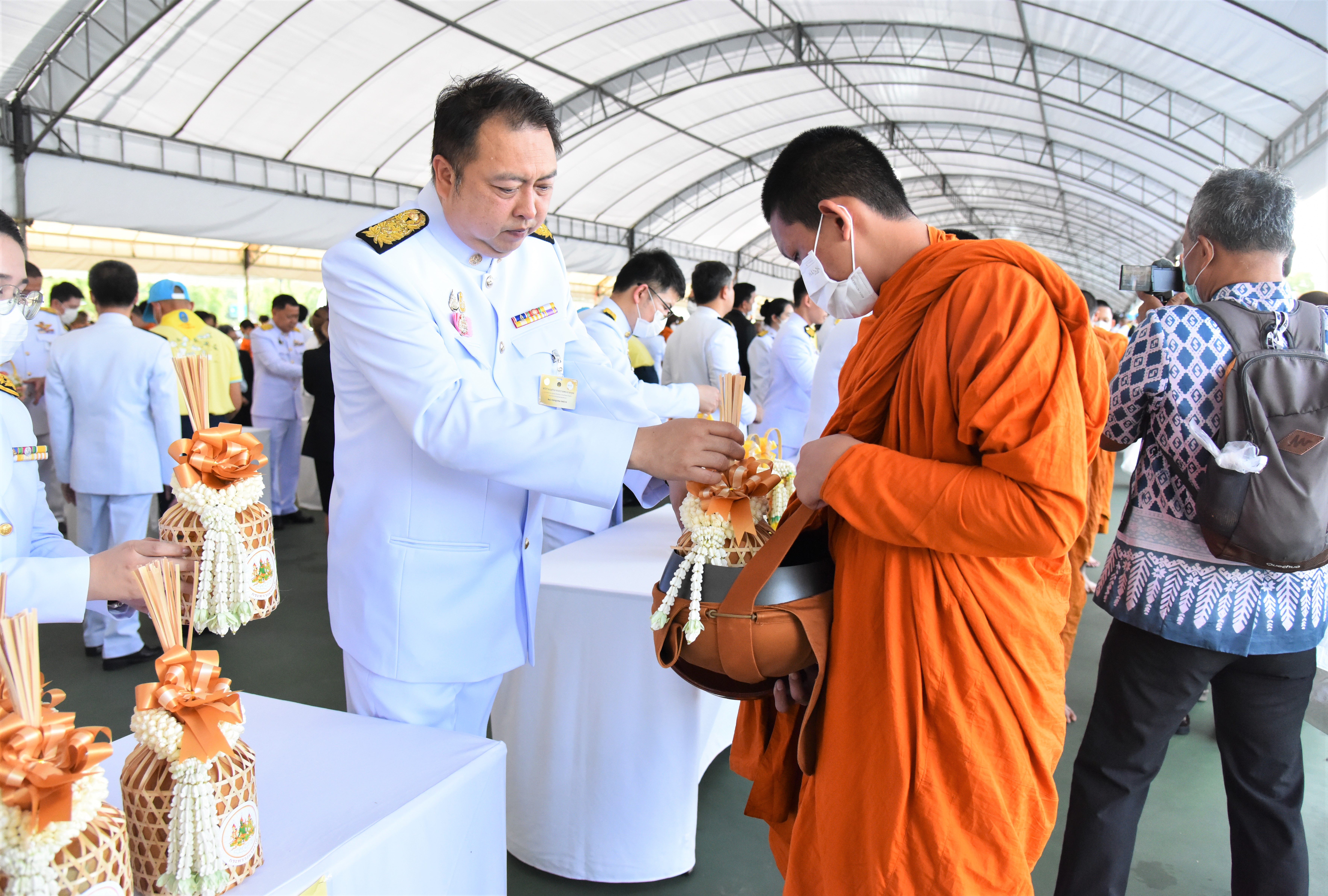 On July 28, 2023, at 07.00 hours, the Labour Minister, Mr. Suchart Chomklin, the Permanent Secretary of Labour, Mr. Boonchob Suttamanaswong, and the Ministry of Labour’s executives participated in the merit-making ceremony to offer alms to His Majesty the King on the occasion of His Majesty’s birthday on July 28, 2023. The Prime Minister and Minister of Defense, General Prayuth Chan-ocha, and wife, Mrs. Naraporn Chan-ocha, presided over the ceremony at Sanam Luang.
