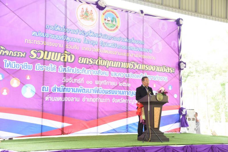 กระทรวงแรงงานตระหนักว่าพี่น้องแรงงานอิสระ เป็นฐานกำลังแรงงาน “กลุ่มหลัก” ของประเทศ และหน้าที่ของเรา คือ ทำให้พวกท่านมี “พลัง” มีความพร้อมต่อการก้าวไปข้างหน้าที่ต้องเผชิญกับการแข่งขัน และการเปลี่ยนแปลงในหลายด้าน โดยเฉพาะความก้าวหน้าทางเทคโนโลยี จึงได้มอบหมายให้หน่วยงานของกระทรวงแรงงานในพื้นที่ทำหน้าที่อย่างเต็มศักยภาพ ให้ท่านมีความมั่นคงทางอาชีพ มีทักษะฝีมือ มีรายได้ที่สูงขึ้น มีหลักประกันทางสังคมด้วยมาตรา ๔๐ ของประกันสังคมที่ออกแบบมาเพื่อให้การดูแลคุ้มครองกลุ่มแรงงานอิสระเป็นการเฉพาะ นอกจากนั้น ยังดูแลให้พวกท่านมีความปลอดภัยในการทำงาน โดยการกำหนดมาตรฐานขั้นต่ำ ที่เหมาะสมกับสภาพการทำงานให้ได้รับการคุ้มครอง มีสวัสดิการได้รับสิทธิประโยชน์ที่ทัดเทียมแรงงานในระบบและมีคุณภาพชีวิตที่ดีขึ้น
