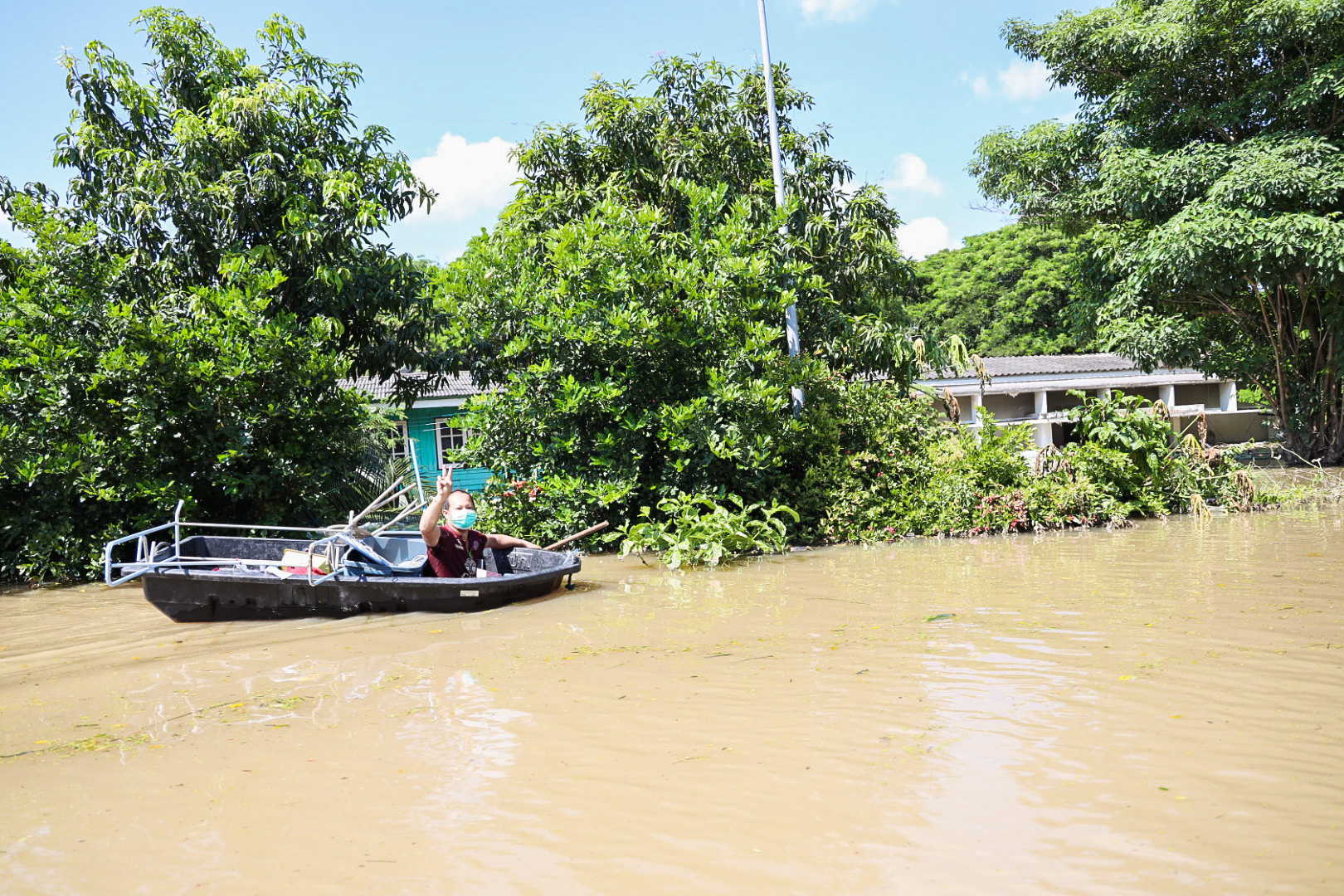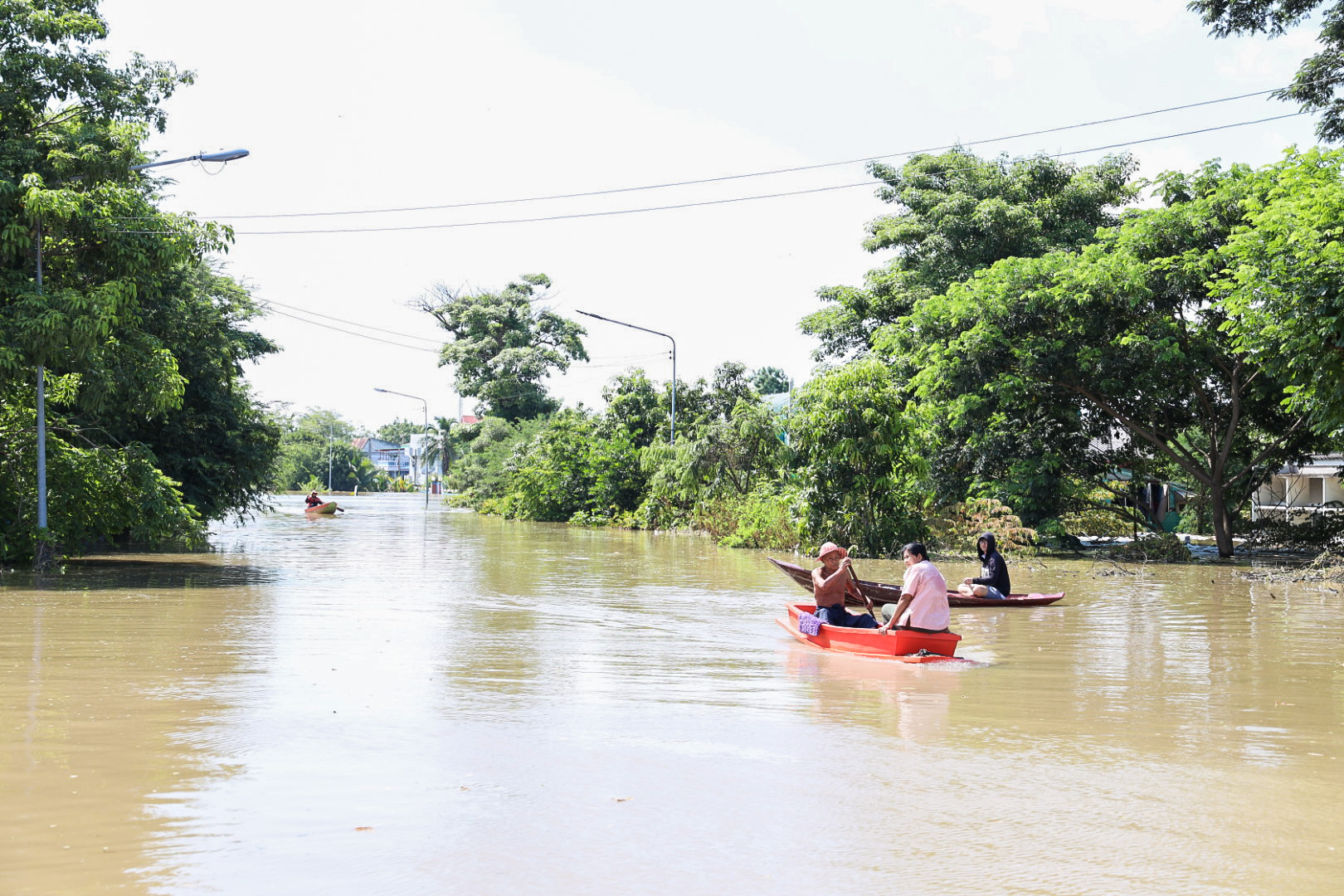 จากนั้น นางธิวัลรัตน์ และคณะได้เดินทางลงพื้นที่ตรวจเยี่ยมให้กำลังใจและมอบถุงยังชีพแก่ลูกจ้างที่ประสบอุทกภัยเพื่อจังหวัดอ่างทอง รวมจำนวน 230 ชุด และน้ำดื่ม จำนวน 6,000 ขวดณ ที่ทำการปกครองอำเภอป่าโมก จังหวัดอ่างทอง โดยมี นายศักดิ์ดา บรรดาศักดิ์ รองผู้ว่าราชการจังหวัดอ่างทอง เป็นผู้รับมอบ จากนั้นได้ลงเรือท้องแบนตรวจเยี่ยมให้กำลังใจและมอบสิ่งของแก่ผู้ประสบอุทกภัย จังหวัดอ่างทอง ให้แก่ผู้ใช้แรงงานในสถานประกอบการที่ประสบภัย จำนวน 10 คน แรงงานนอกระบบตามมาตรา 40 อาสาสมัครแรงงาน จำนวน 13 คน และผู้นำชุมชนผู้แทนผู้ประสบภัย จำนวน 10 คน โดยมี หัวหน้าส่วนราชการหน่วยงานในสังกัดกระทรวงแรงงานจังหวัดอ่างทอง เข้าร่วมในครั้งนี้ด้วย