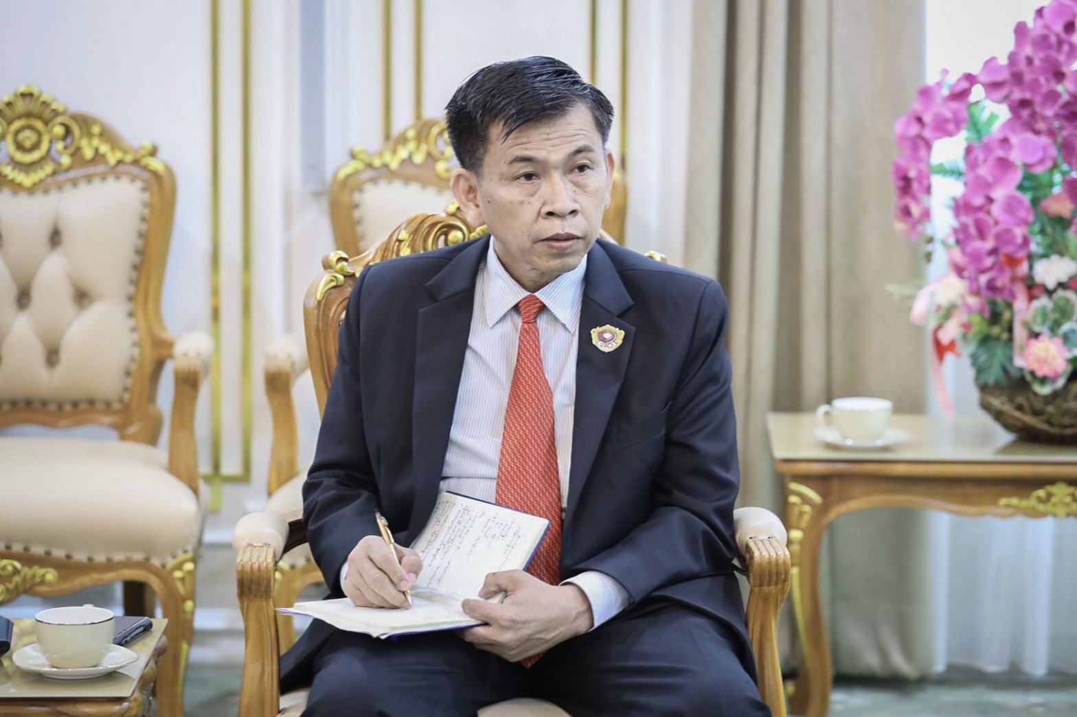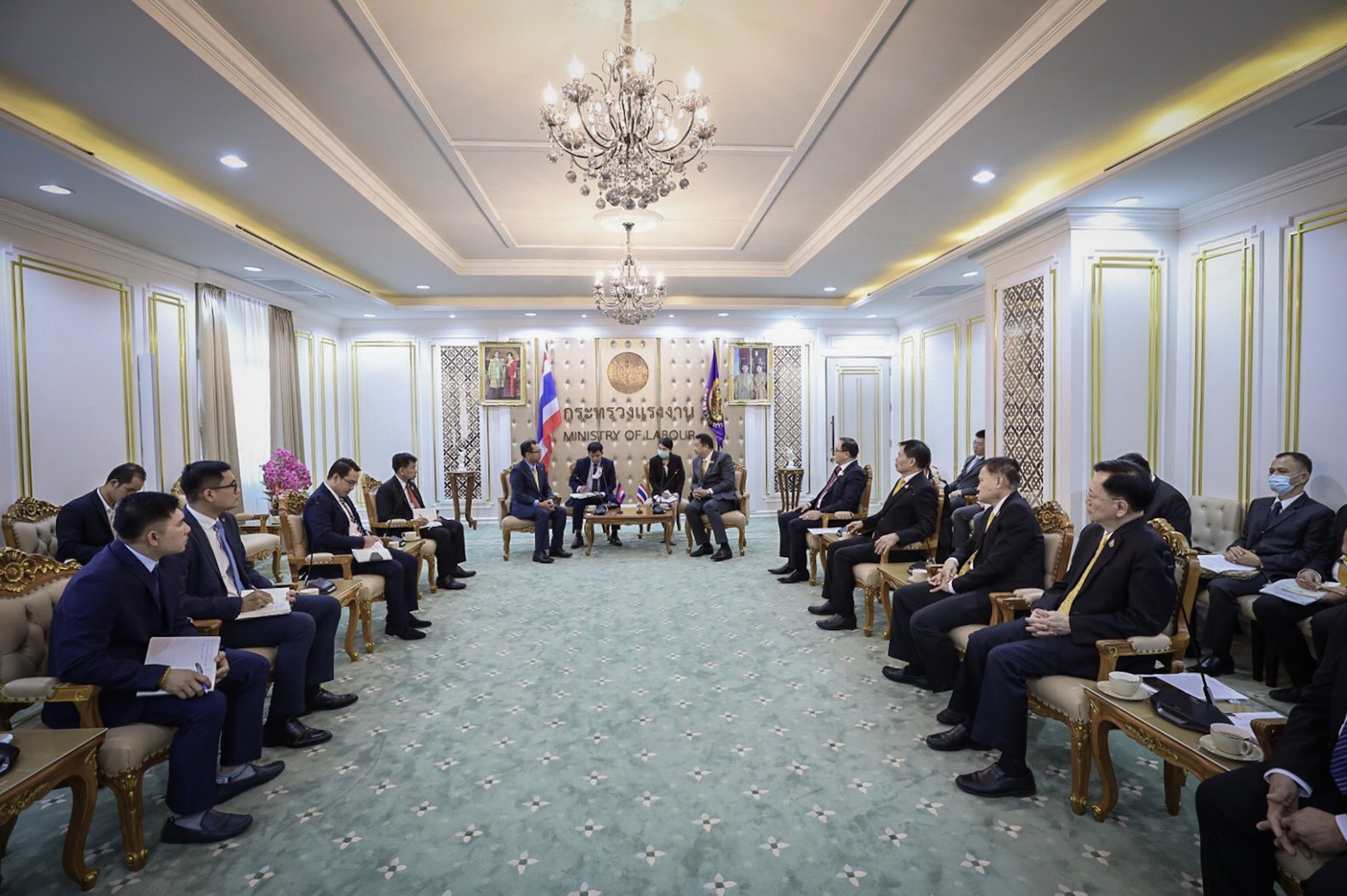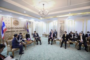 วันที่ ๒ ตุลาคม ๒๕๖๓ เวลา ๑๐.๑๕ น. นายสุชาติ ชมกลิ่น รัฐมนตรีว่าการกระทรวงแรงงาน ให้การต้อนรับ นายอูก ซอร์พวน (H.E. Mr.Ouk Sorphorn) เอกอัครราชทูตอาณาจักรกัมพูชาประจำประเทศไทย และผู้แทนหน่วยงาน พร้อมด้วยนายสุรชัย ชัยตระกูลทอง ผู้ช่วยรัฐมนตรีประจำกระทรวงแรงาน นายสุเทพ ชิตยวงษ์ เลขานุการรัฐมนตรีว่าการกระทรวงแรงงาน และนายสุทธิ สุโกศล ปลัดกระทรวงแรงงาน ณ ห้องจัตุมงคล ชั้น ๖ อาคารกระทรวงแรงงาน