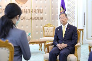 วันที่ 10 มีนาคม 2563 เวลา 09.00 น. หม่อมราชวงศ์จัตุมงคล โสณกุล รัฐมนตรีว่าการกระทรวงแรงงาน ให้สัมภาษณ์สถานีโทรทัศน์ เนชั่นทีวี เกี่ยวกับมาตรการเยียวยาแรงงานไทยที่ได้รับผลกระทบจากเชื้อไวรัสโควิด-19 ของกระทรวงแรงงาน ณ ห้องจัตุมงคล ชั้น 6 อาคารกระทรวงแรงงาน