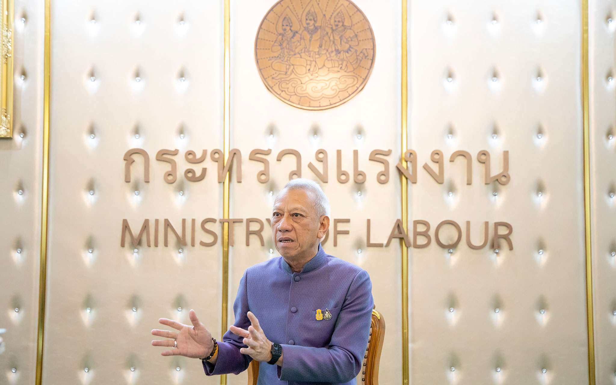 On February 15, 2024, at 16.30 hours, the Labour Minister, Mr. Phiphat Ratchakitprakarn, gave an interview to Matichon newspaper on “Policy for developing a sufficient workforce quantitatively and qualitatively.” The occasion took place at the Chatumongkol Room, 6th Floor, Ministry of Labour.