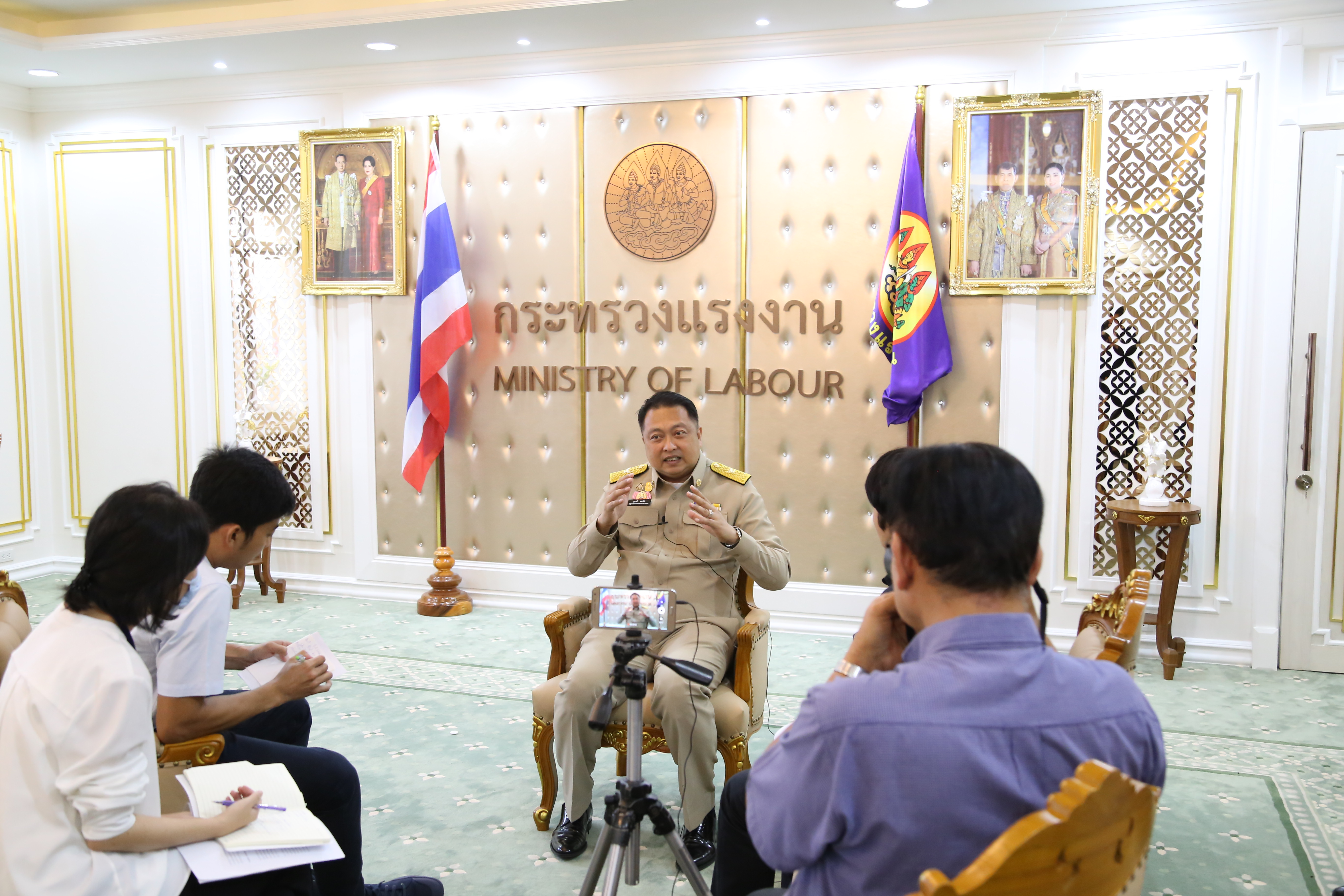 วันที่ 17 สิงหาคม 2563 เวลา 14.00 น. นายสุชาติ ชมกลิ่น รัฐมนตรีว่าการกระทรวงแรงงาน ให้สัมภาษณ์ผู้สื่อข่าวหนังสือพิมพ์มติชน ประเด็น นโยบายทิศทางปะกันสังคม ดำเนินโครงการ “ Healthy Thailand เพื่อผู้ประกันตน” เพื่อเป็นการส่งเสริมสุขภาพและป้องกันโรคของผู้ประกันตนเชิงรุกในสถานประกอบการทั่วประเทศ สร้างการรับรู้ระบบประกันสังคมและเงินทดแทนผ่านกลไก “บวร” คือ บ้าน วัด โรงเรียน โรงงาน รวมทั้งเร่งรัดการจ่ายเงินประโยชน์ทดแทนกรณีว่างงานให้แก่ผู้ประกันตนให้ได้รับเงินโดยเร็ว ด้วยการบูรณาการการทำงานร่วมกันทุกกรมภายใต้ “ศูนย์อำนวยการแรงงานแห่งชาติ”