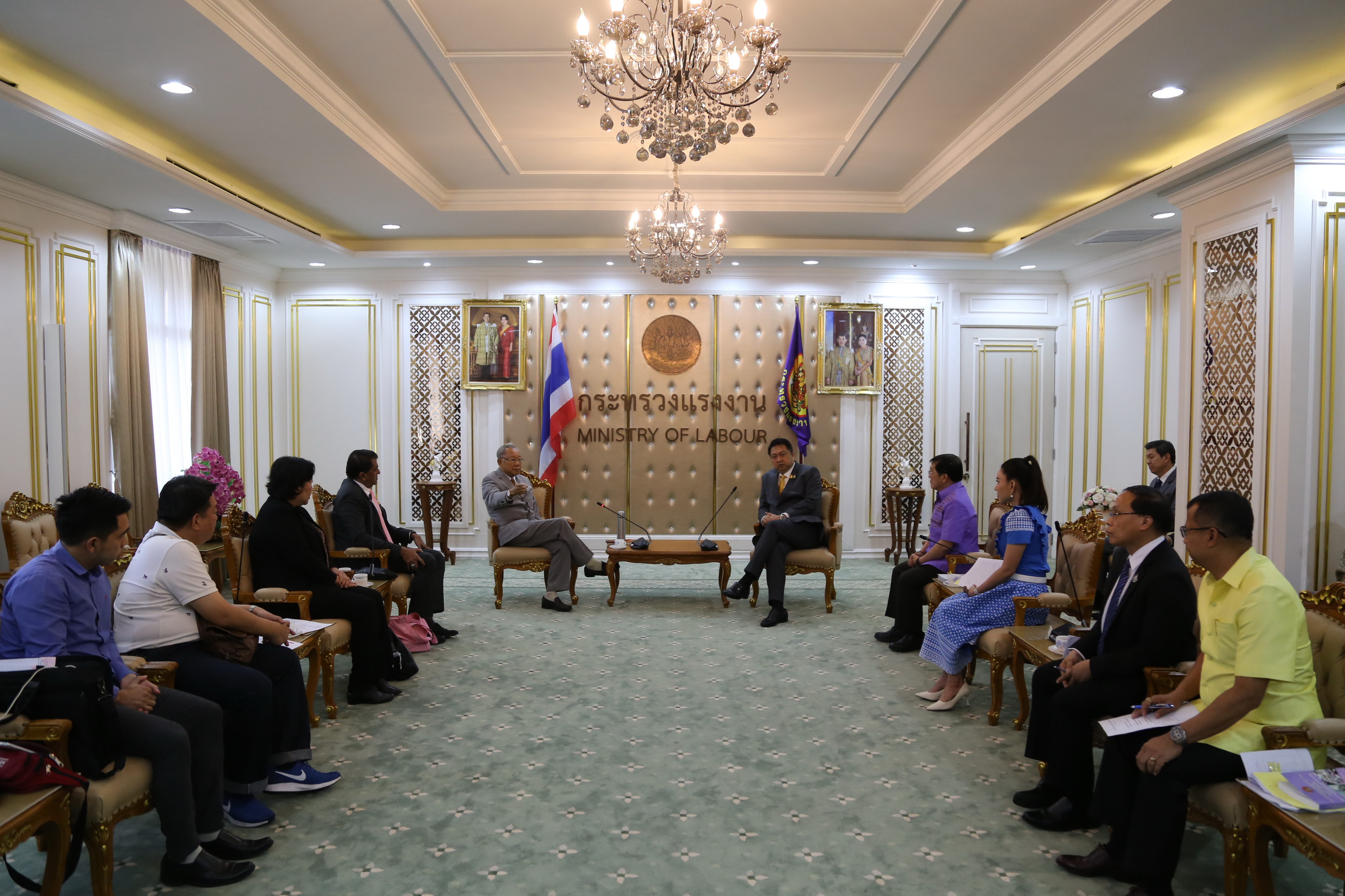 วันที่ ๒ ตุลาคม ๒๕๖๓ เวลา ๑๔.๐๐ น. นายสุชาติ ชมกลิ่น รัฐมนตรีว่าการกระทรวงแรงงาน ให้การต้อนรับ รศ.ดร.สังศิต พิริยะรังสรรค์ ประธานคณะกรรมาธิการการแก้ปัญหาความยากจน และลดความเหลื่อมลํ้า วุฒิสภา นางอันน์เกตุ ลีลาไพบูลย์ นายกสมาคมประมงปัตตานี และคณะ เข้าพบเพื่อหารือด้านการขาดแคลนแรงงานประมงทะเล โดยมี นางธิวัลรัตน์ อังกินันทน์ ที่ปรึกษารัฐมนตรีว่าการกระทรวงแรงงาน พร้อมด้วยคณะผู้บริหารสังกัดกระทรวงแรงงานร่วมรับฟังการหารือ ณ ห้องรับรองจัตุมงคล ชั้น ๖ อาคารกระทรวงแรงงาน