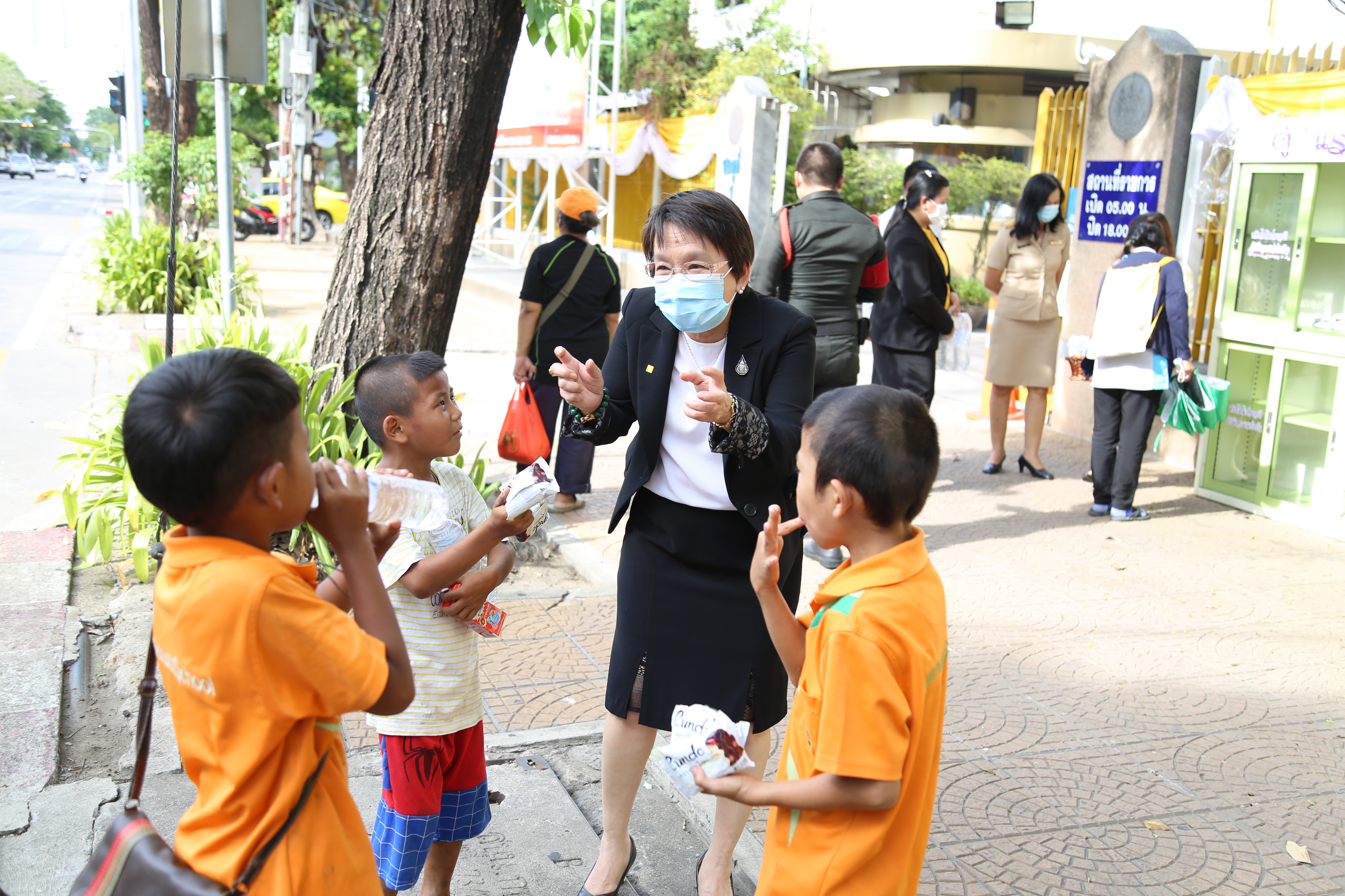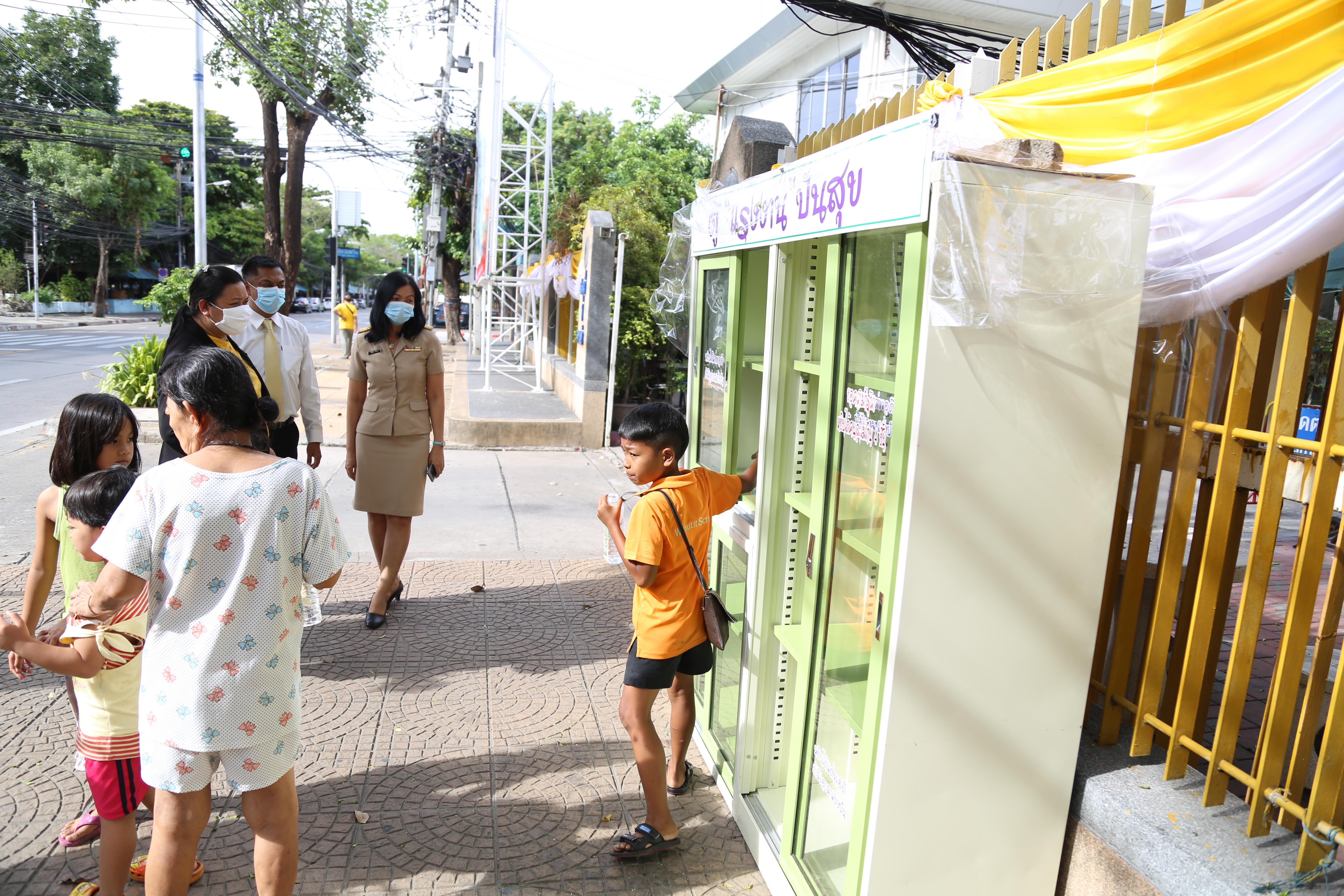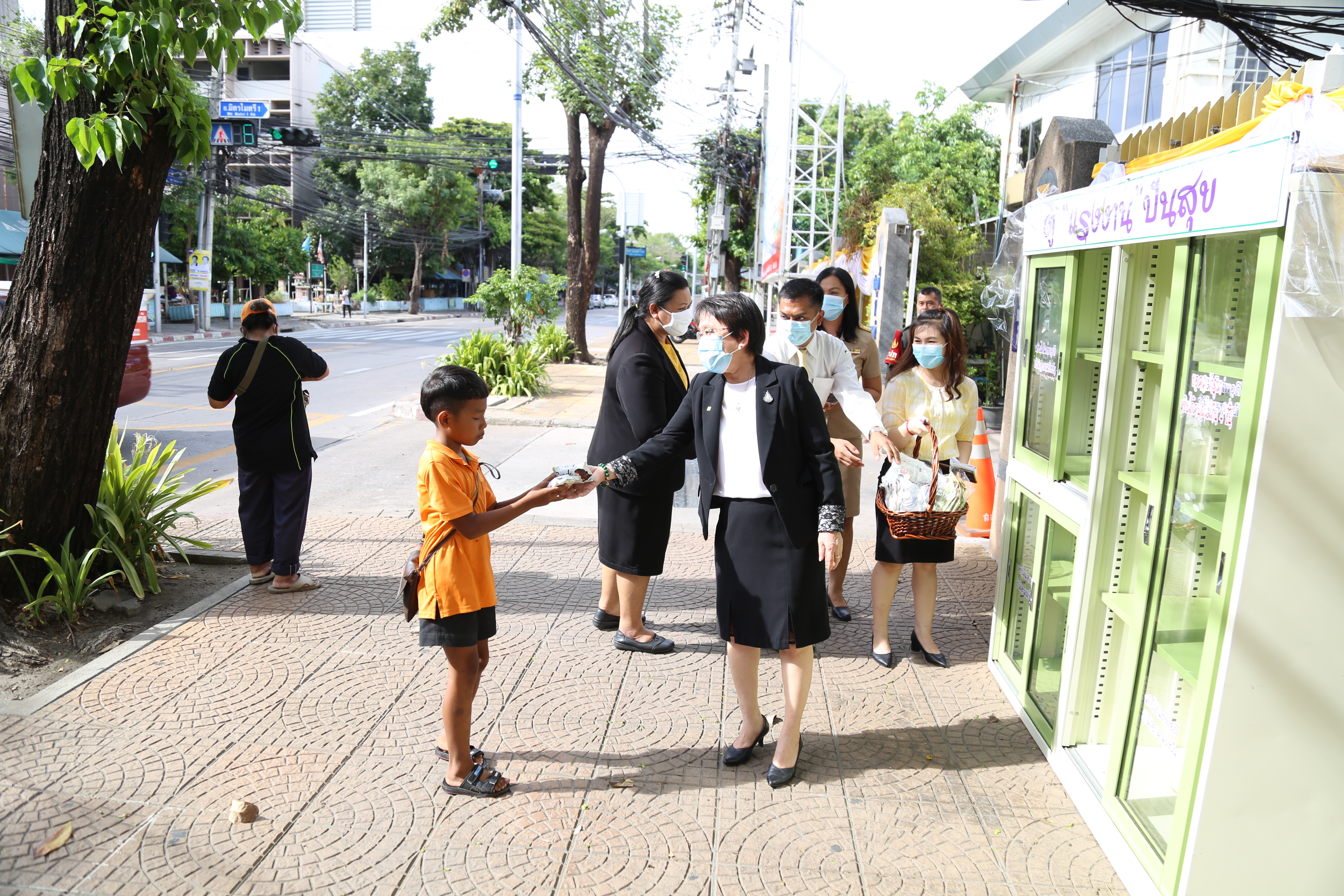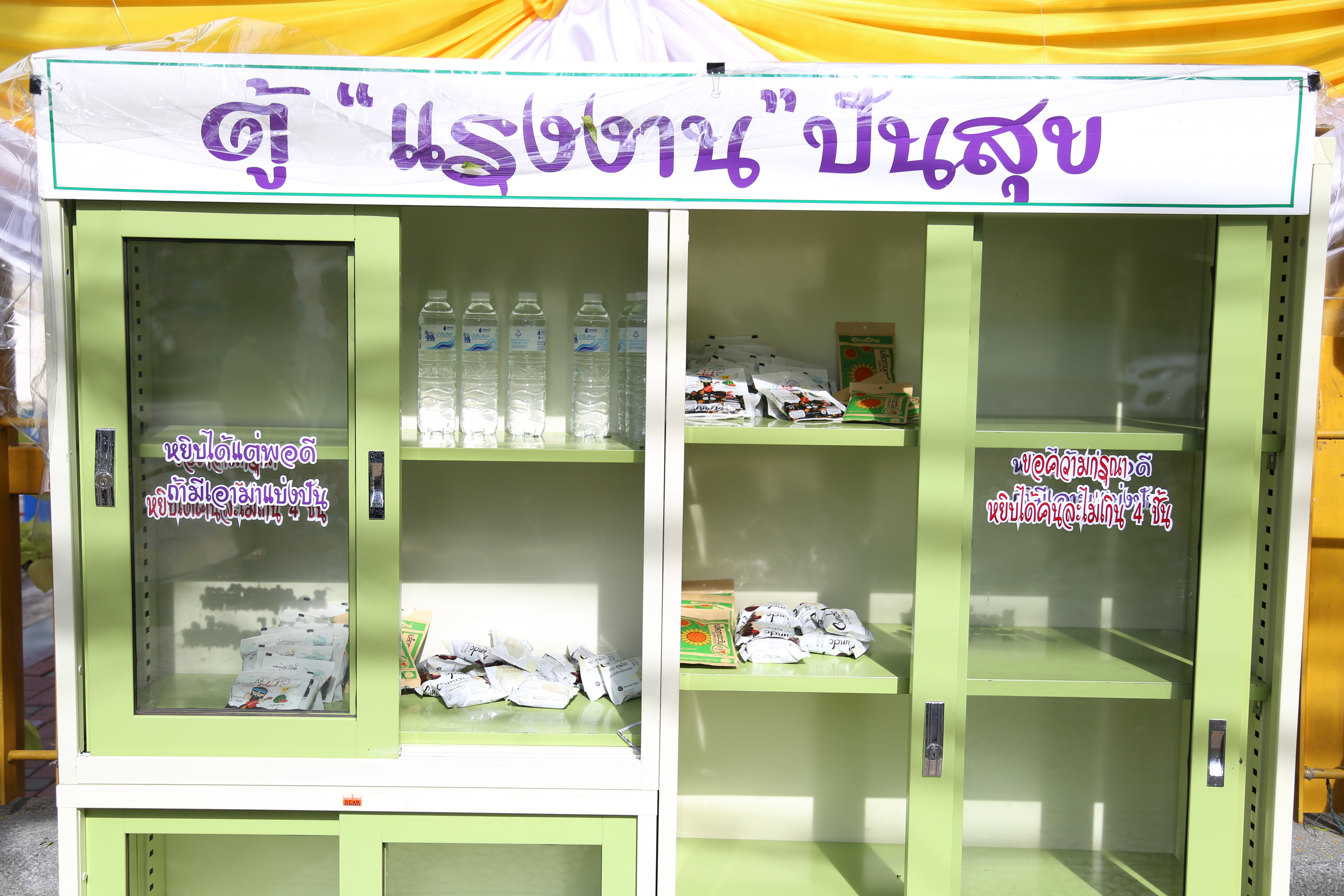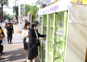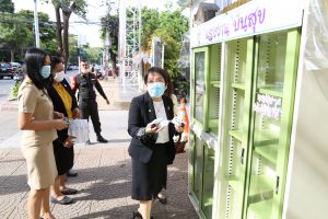 วันที่ 18 พฤษภาคม 2563 เวลา 15.45 น. นางเธียรรัตน์ นะวะมะวัฒน์ รองปลัดกระทรวงแรงงาน นำน้ำดื่มอาหารแห้ง ขนมขบเคียว เติม “ตู้แรงงานปันสุข” เพื่อบรรเทาความเดือดร้อนแก้ผู้ที่ได้รับผลกระทบจากวิกฤติโควิด-19 โดยผู้ที่ได้รับความเดือดร้อนสามารถหยิบได้ฟรี พร้อมมอบขนมขบเคียว น้ำดื่ม แก่เด็กที่มารับของจากตู้แรงงานปันสุข ณ บริเวณประตู 1 กระทรวงแรงงาน
