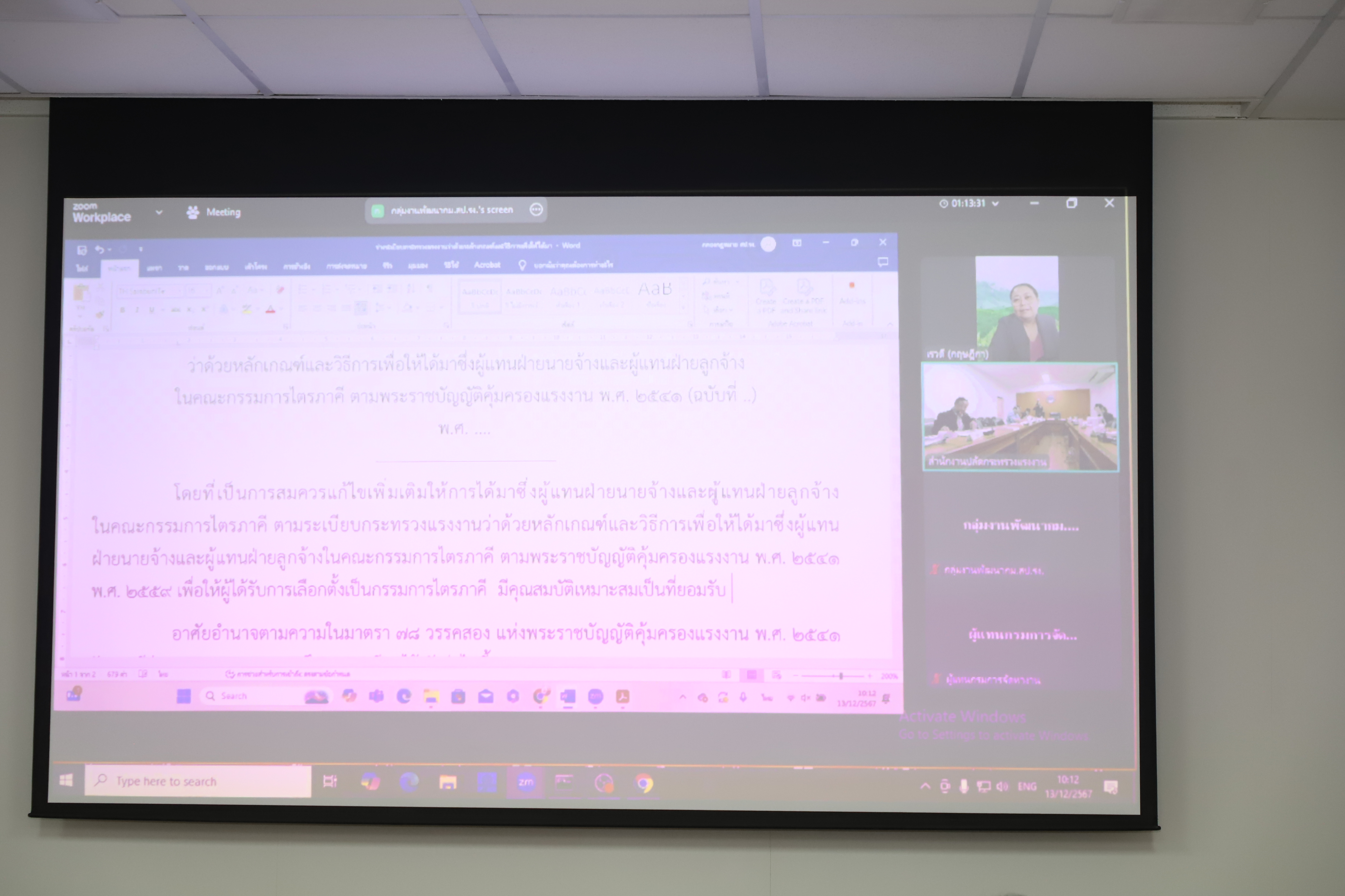 วันที่ 13 ธันวาคม 2567 เวลา 09.30 น. นายสมาสภ์ ปัทมะสุคนธ รองปลัดกระทรวงแรงงาน มอบหมายให้ นายเกริกไกร นาสมยนต ผู้ตรวจราชการกรมสวัสดิการ และคุ้มครองแรงงาน รักษาการในตำแหน่งที่ปรึกษากฎหมาย เป็นประธานการคณะกรรมการพิจารณาร่างกฎหมายของกระพรวงแรงงาน ครั้งที่ 19/2567 ณ ห้องประชุมกองกฎหมาย ชั้น 11 อาคารกระทรวงแรงงาน