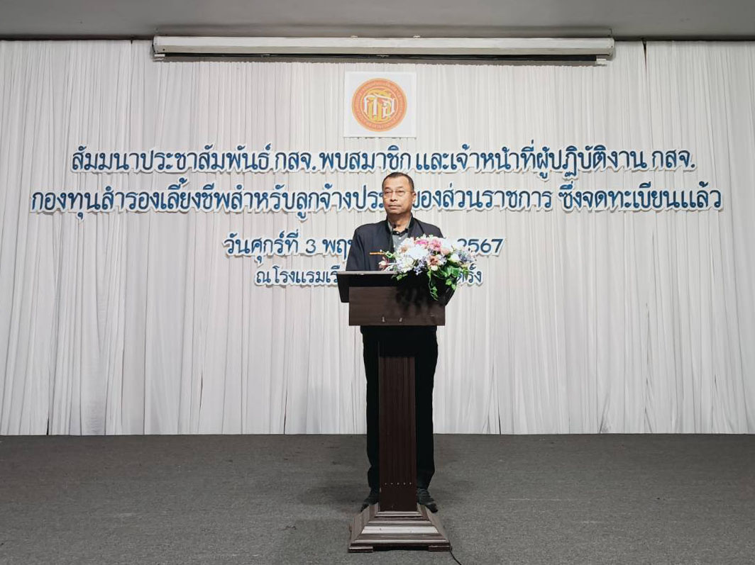 วันที่ 3 พฤษภาคม 2567 นายวรรณรัตน์ ศรีสุขใส รองปลัดกระทรวงแรงงาน เป็นประธานการประชุมสัมมนาประชาสัมพันธ์ กสจ. พบสมาชิกและเจ้าหน้าที่ผู้ปฏิบัติงาน กสจ. จังหวัดตรัง ณ ห้องประชุมนครา แกรนด์ บอลรูม ชั้น 3 โรงแรมเรือรัษฎา อำเภอเมือง จังหวัดตรัง โดยการประชุมดังกล่าวมีวัตถุประสงค์ เพื่อเชิญลูกจ้างประจำที่เป็นสมาชิก กสจ. และไม่เป็นสมาชิก กสจ. รวมถึงเจ้าหน้าที่ผู้ปฏิบัติงาน กสจ.ในจังหวัดตรัง และพื้นที่จังหวัดใกล้เคียง ได้แก่ จังหวัดกระบี่ นราธิวาส ปัตตานี พังงา ภูเก็ต ยะลา สงขลา และสตูล ได้รับทราบข่าวสารความเคลื่อนไหว ผลการดำเนินงาน นโยบายการลงทุน และสิทธิประโยชน์จากการเป็นสมาชิก กสจ.