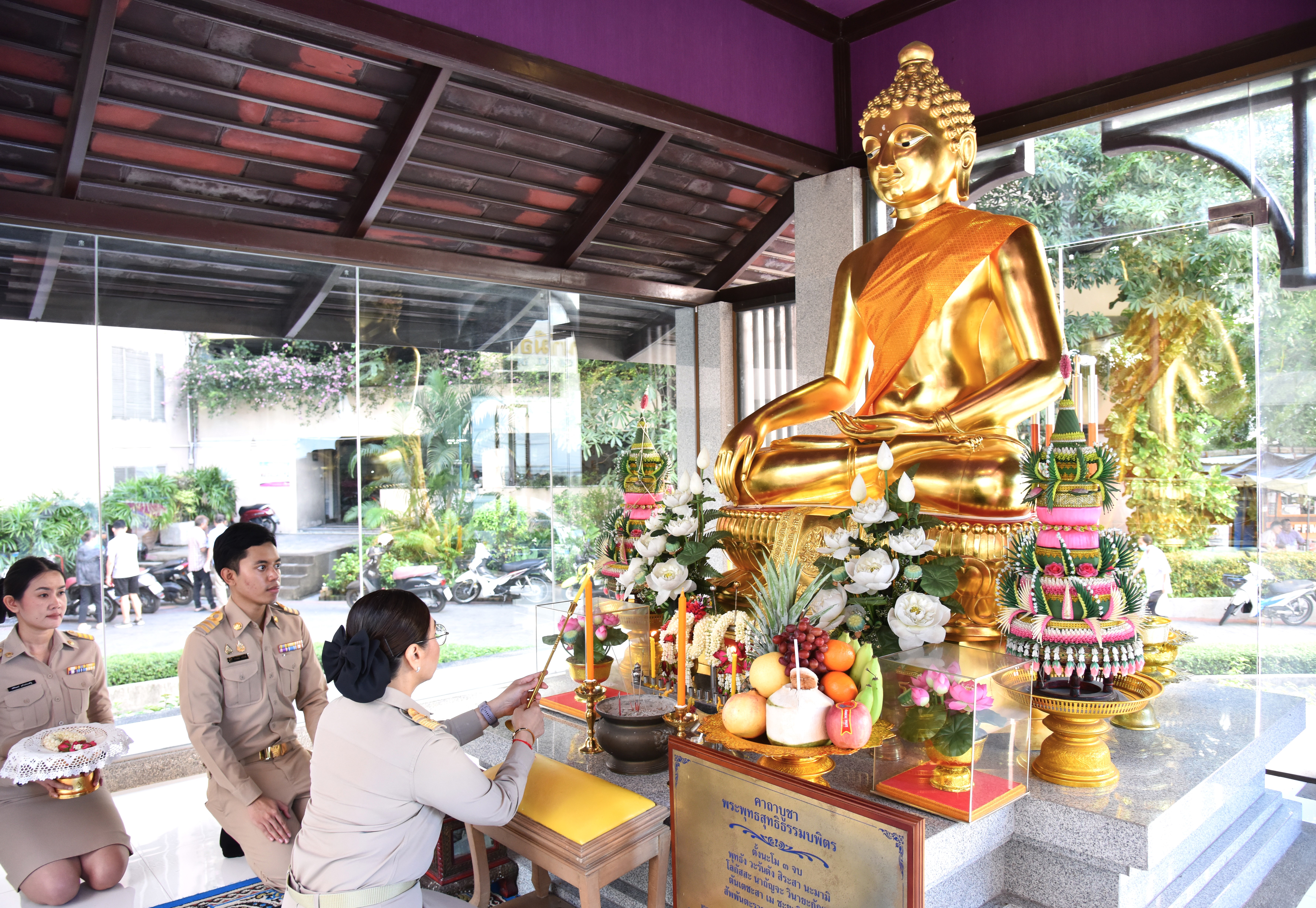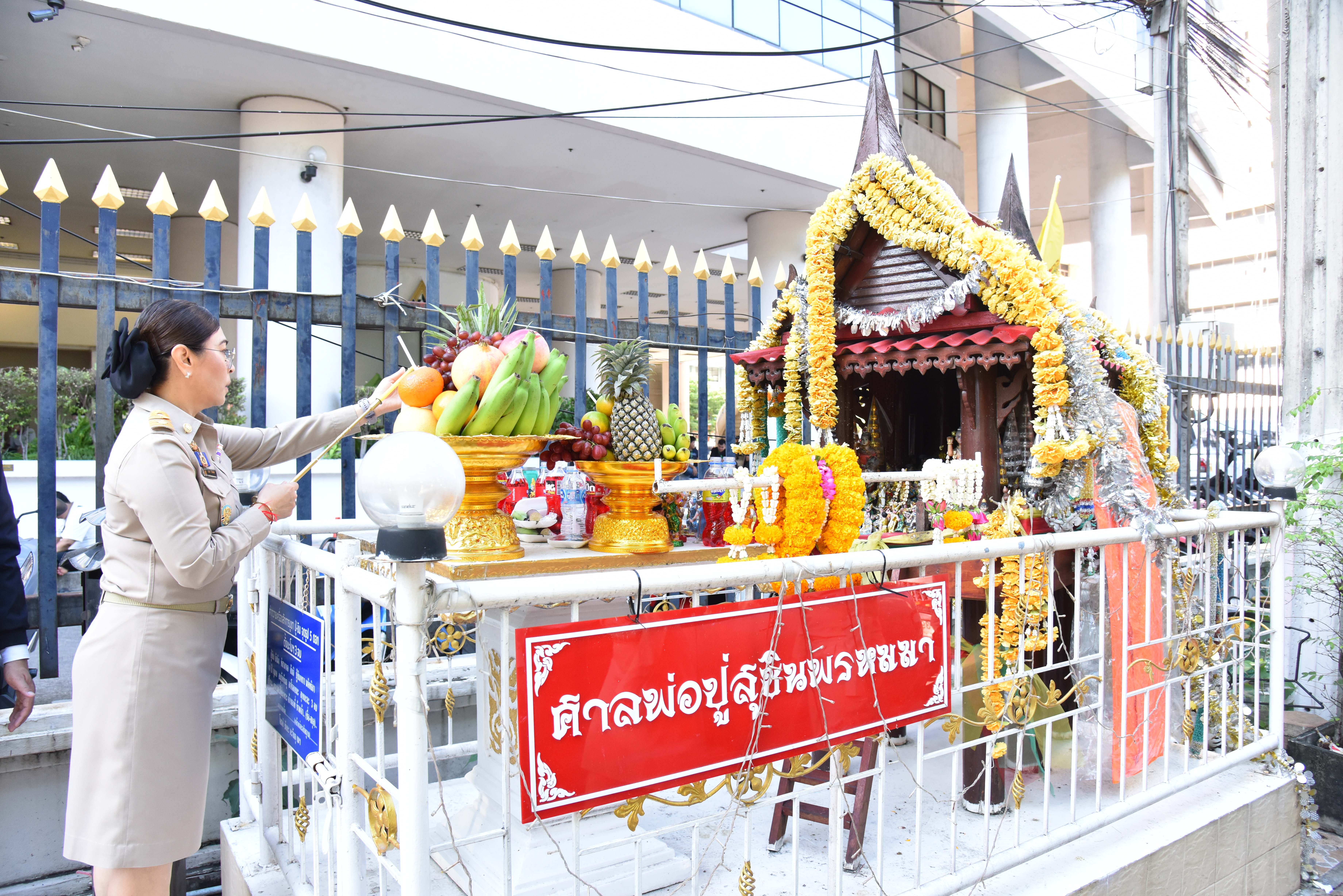 วันที่ 26 พฤศจิกายน 2567 เวลา 09.09 น. นางสาวบุปผา เรืองสุด รองปลัดกระทรวงแรงงาน สักการะสิ่งศักดิ์สิทธิ์ประจำกระทรวงแรงงาน ประกอบด้วย พระพุทธสุทธิธรรมบพิตร พระพุทธชินราช ศาลพ่อปู่ชัยมงคล ศาลท้าวมหาพรหมเทวฤทธิ์ ศาลพ่อปู่สุชินพรหมมา และพระพุทธรูปประจำห้องปฏิบัติราชการรองปลัดกระทรวงแรงงาน เนื่องในโอกาสเข้ารับตำแหน่งรองปลัดกระทรวงแรงงาน โดยมี ข้าราชการ พนักงานและเจ้าหน้าที่กระทรวงแรงงาน ร่วมพิธี ณ บริเวณกระทรวงแรงงาน