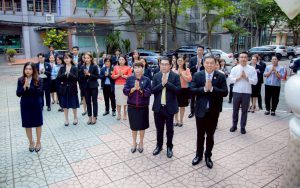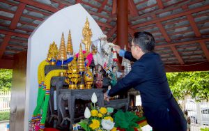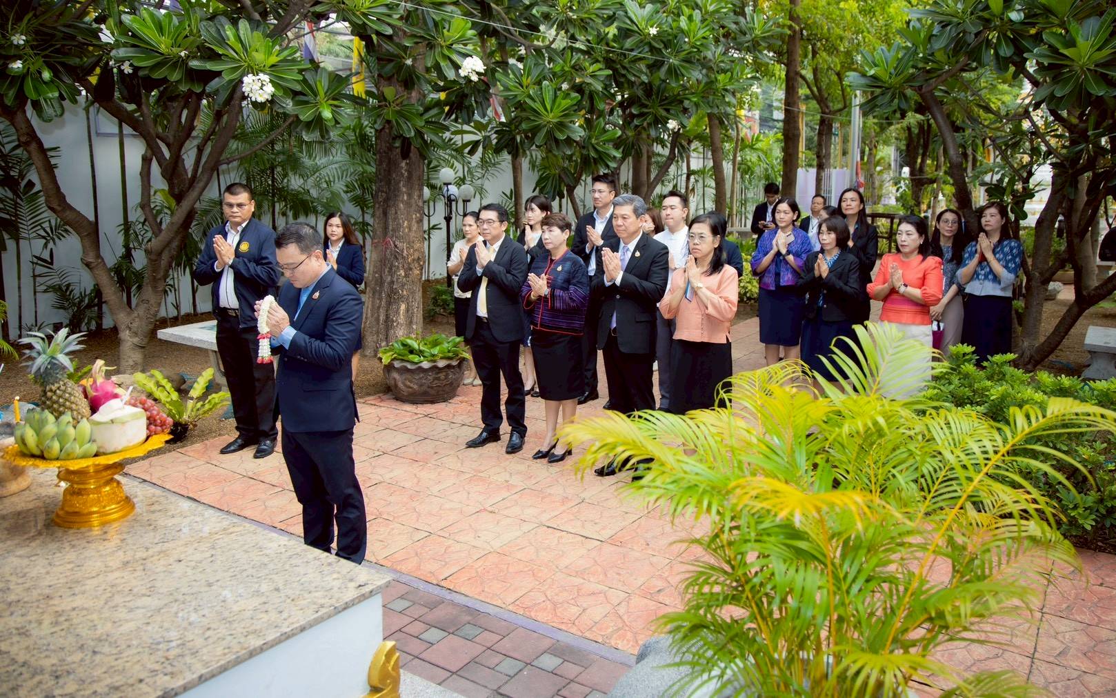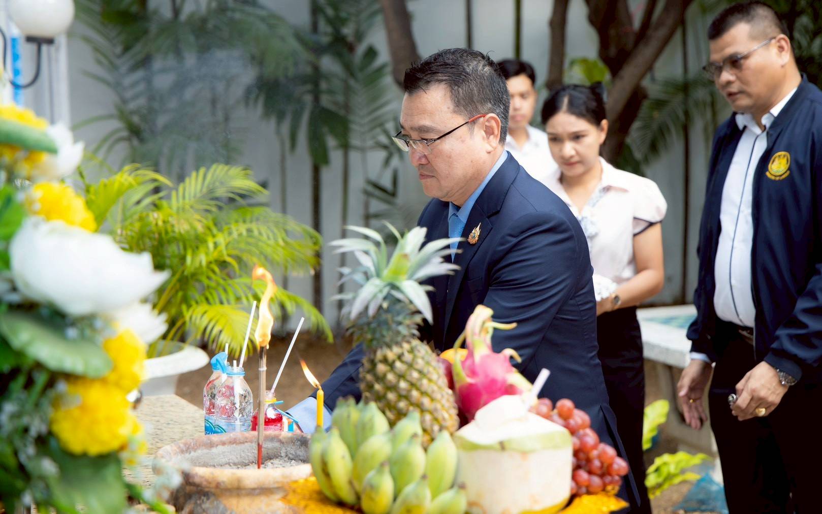 วันที่ 27 มีนาคม 2568 เวลา 07.30 น. นายสันติ นันตสุวรรณ รองปลัดกระทรวงแรงงาน สักการะสิ่งศักดิ์สิทธิ์ประจำกระทรวงแรงงาน ประกอบด้วย พระพุทธสุทธิธรรมบพิตร พระพุทธชินราช ศาลพ่อปู่ชัยมงคล ศาลท้าวมหาพรหมเทวฤทธิ์ ศาลพ่อปู่สุชินพรหมมา และพระพุทธรูปประจำห้องปฏิบัติราชการรองปลัดกระทรวงแรงงาน ชั้น 7 อาคารกระทรวงแรงงาน เนื่องในโอกาสเข้ารับตำแหน่งรองปลัดกระทรวงแรงงาน โดยมี นายณัฐวุฒิ ภัทรประยูร จัดหางานจังหวัดร้อยเอ็ด รักษาการในตำแหน่งที่ปรึกษาวิชาการแรงงาน นางสาวกรจิรัฏฐ์ พงจันทร์ศธร ผู้ช่วยปลัดกระทรวงแรงงาน นายศักดินาถ สนธิศักดิ์โยธิน ผู้ช่วยปลัดกระทรวงแรงงาน พร้อมด้วยข้าราชการ และเจ้าหน้าที่กระทรวงแรงงาน ร่วมพิธี ณ บริเวณกระทรวงแรงงาน