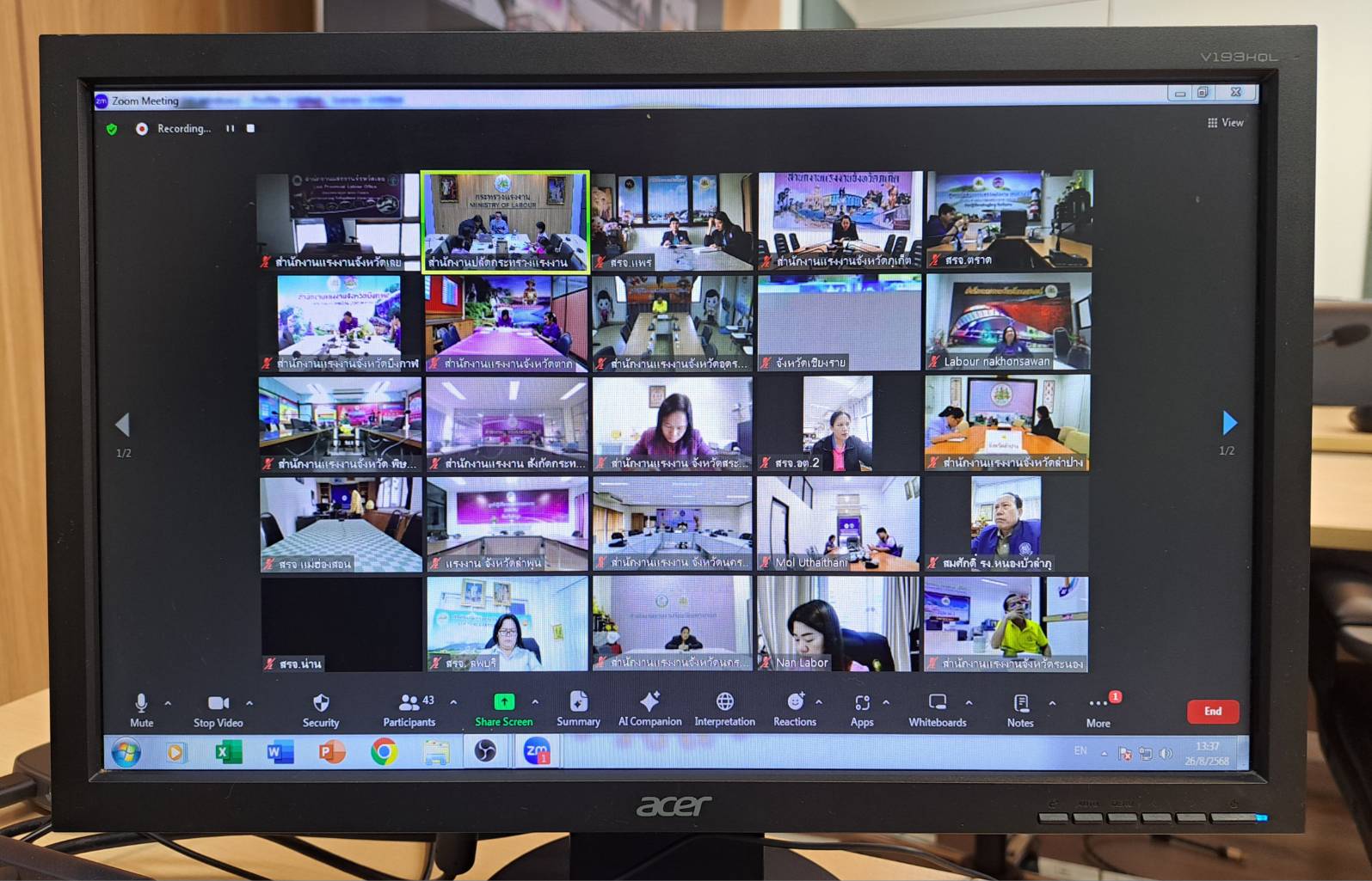 วันที่ 26 สิงหาคม 2568 เวลา 13.45 น. นายสันติ นันตสุวรรณ รองปลัดกระทรวงแรงงาน เป็นประธานการประชุมการช่วยเหลือผู้ประสบอุทกภัยของหน่วยงานในสังกัดกระทรวงแรงงาน ผ่านสื่ออิเล็กทรอนิกส์ ณ ห้องประชุมกองยุทธศาสตร์และแผนงาน ชั้น 13 อาคารกระทรวงแรงงาน