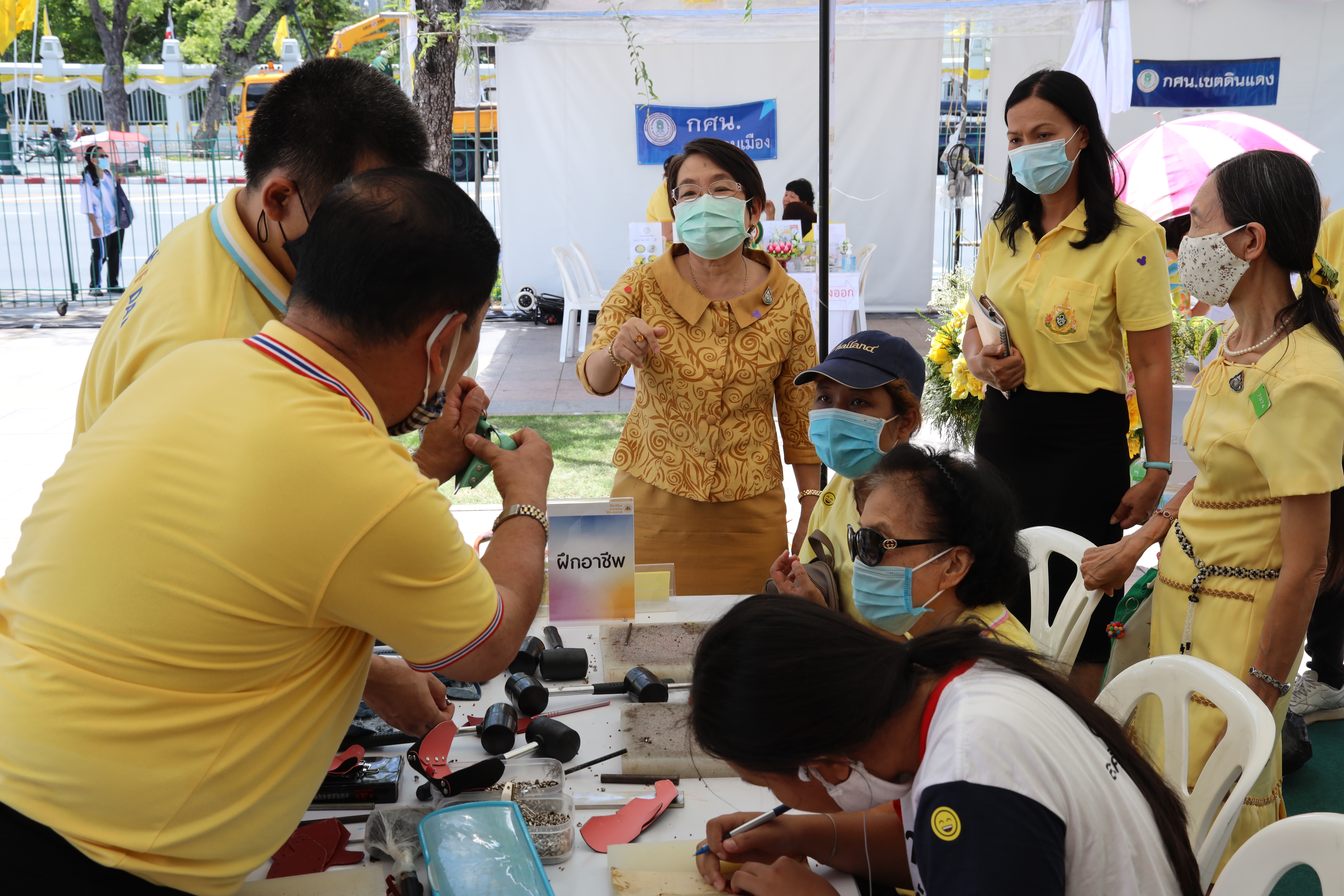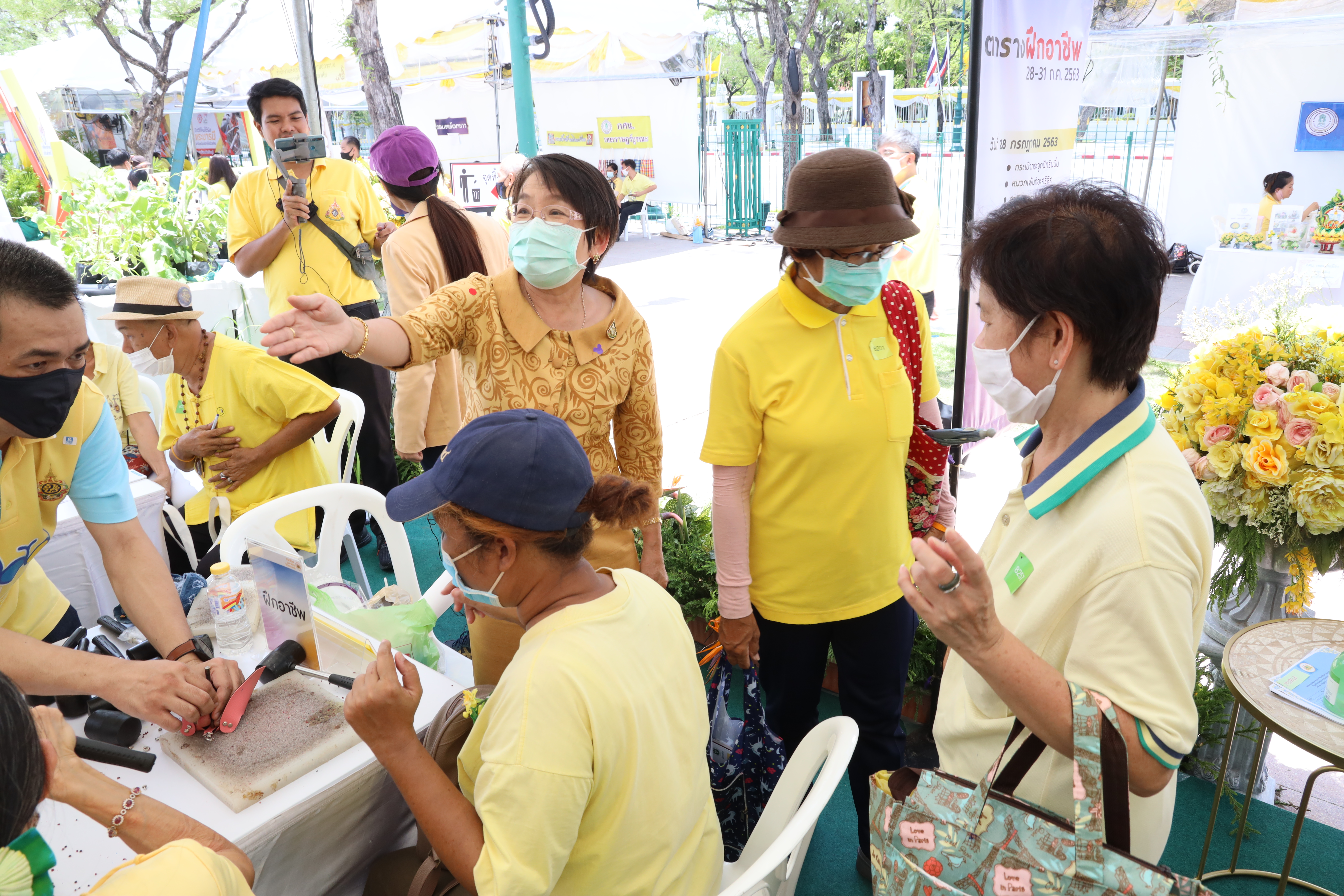 วันที่ 29 กรกฎาคม 2563 เวลา 11.00 น. นางเธียรรัตน์ นะวะมะวัฒน์ รองปลัดกระทรวงแรงงาน เข้าเยี่ยมบูธของกระทรวงแรงงาน “ชีวิตวิถีใหม่ แรงงานไทย ใต้ร่มพระบารมี” ณ บริเวณท้องสนามหลวง โดยได้ร่วมพูดคุยและแลกเปลี่ยนความคิดเห็นกับผู้เข้าเยี่ยมชมบูธของกระทรวงแรงงาน ทั้งผู้ที่เข้ารับการฝึกอาชีพ เข้ารับบริการตรวจสุขภาพฟรี รวมถึงผู้ที่ขอรับคำปรึกษาด้านต่าง ๆ ที่เกี่ยวข้องกับกระทรวงแรงงาน ซึ่งจะให้บริการประชาชนไปจนถึงวันที่ 31 กรกฎาคม 2563