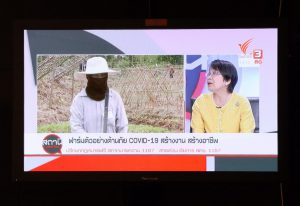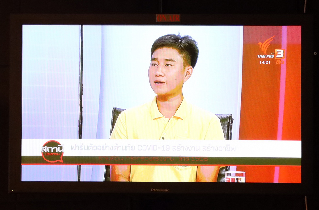 วันที่ 15 กรกฎาคม 2563 นางเธียรรัตน์ นะวะมะวัฒน์ รองปลัดกระทรวงแรงงาน ให้สัมภาษณ์สดประเด็น “สรุปความก้าวหน้าโครงการฟาร์มตัวอย่างต้านภัยโควิด-19” ณ สถานีโทรทัศน์ไทยพีบีเอส โดยมีตัวแทนผู้เข้าร่วมโครงการฯ จำนวน 5 ท่าน ได้แก่ คุณสุมาลี ช่างบรรจง คุณวีรวัฒน์ บุญแก้วภาศร คุณอิศรินทร์ อินทร์นุ่มพันธ์ คุณกุ๊กกิ๊ก ศรีสะอาด และคุณรัชนีพร พลรักษา ร่วมการสัมภาษณ์ในครั้งนี้