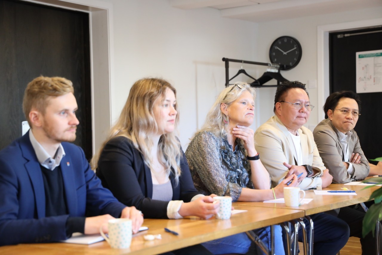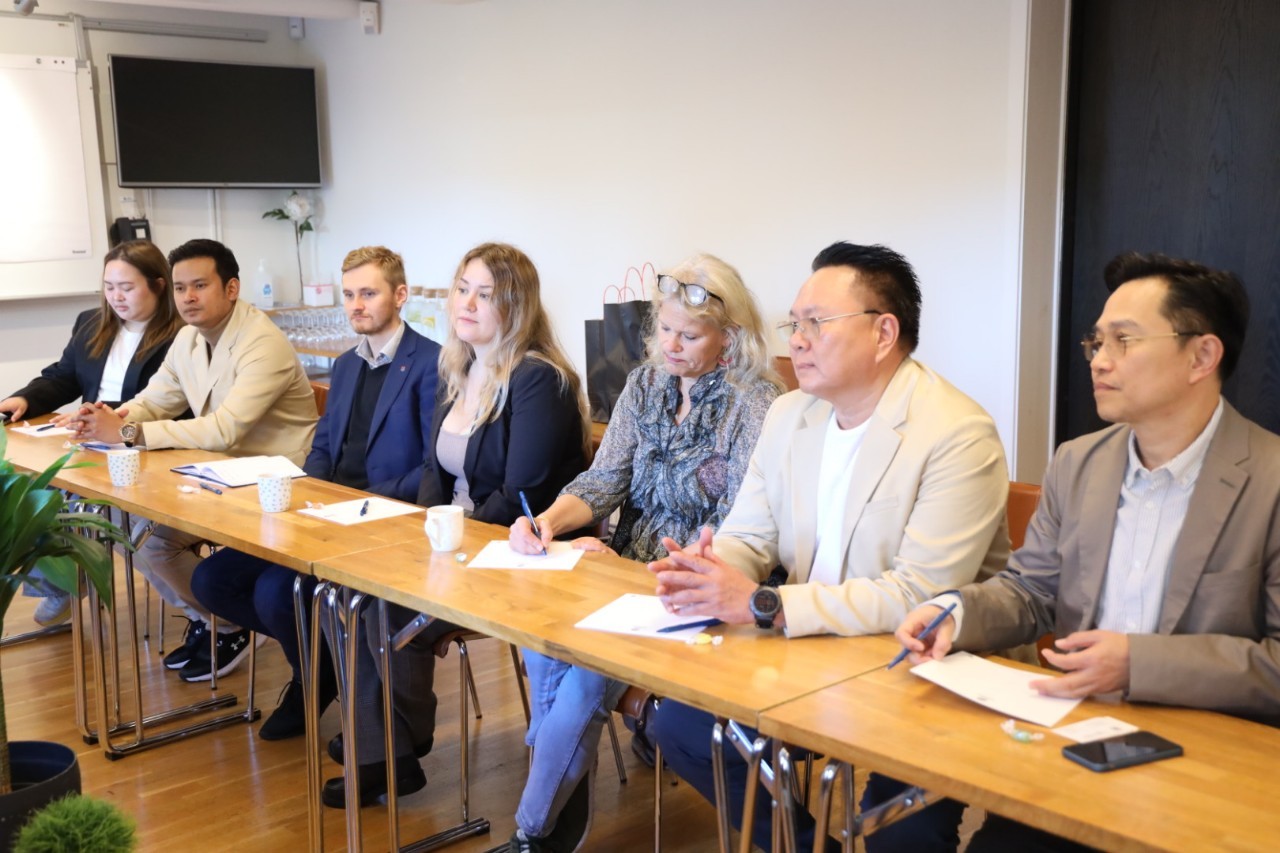 วันที่ 13 กันยายน 2566 นายประทีป ทรงลำยอง รองปลัดกระทรวงแรงงาน พร้อมด้วย นางดรุณี นิธิทวีกุล ผู้ตรวจราชการกระทรวงแรงงาน นางต้องใจ สุทัศน์ ณ อยุธยา ผู้ตรวจราชการกระทรวงแรงงาน และคณะ พบปะนายจ้างที่จ้างแรงงานไทยมาเก็บผลไม้ป่าในสวีเดนเพื่อประชุมหารือกับตัวแทนผู้ประกอบการผู้รับซื้อผลไม้ป่าและนายจ้างในประเทศไทย บริษัท Vastions Vilda PRODUCTER AB และบริษัท NORRSKENSBAR AB เพื่อแลกเปลี่ยนข้อมูล รับฟังสภาพปัญหา และข้อเสนอแนะเกี่ยวกับการจ้างงานและคุ้มครองแรงงานไทยที่มาเก็บผลไม้ป่าในสวีเดน โดยมีคุณแคทรินา ลุนด์เบิร์ก และ คุณชัญญา นวสมิตวงศ์ บริษัท NORRSKENSBAR AB ผู้รับซื้อผลไม้ป่า และคุณพิพัฒน์ นวสมิตวงศ์ บริษัทนายจ้างในประเทศไทยซึ่งพาคนงานมาทำงานเก็บผลไม้ในสวีเดน ให้การต้อนรับ ณ โรงแรม Best Western Hotel ราชอาณาจักรสวีเดน