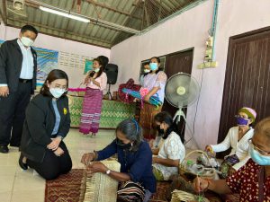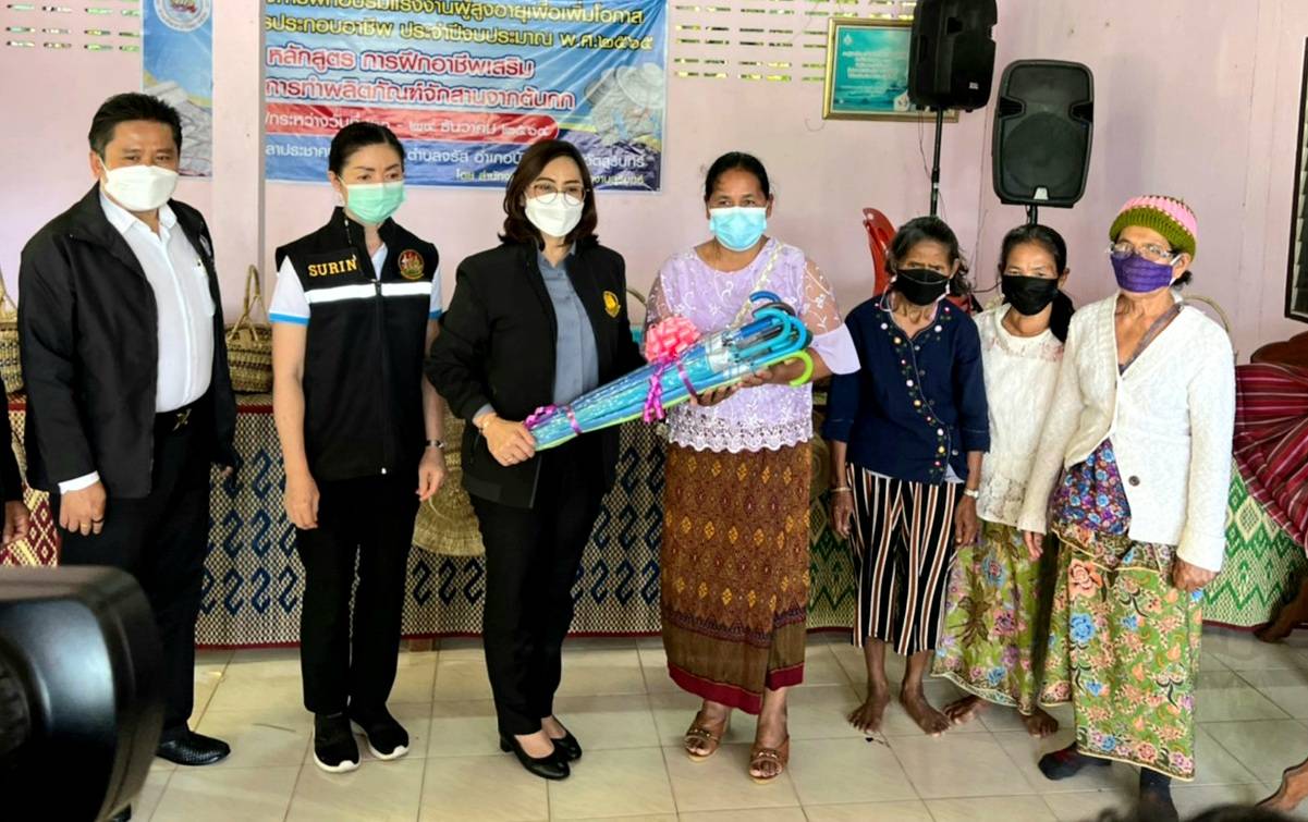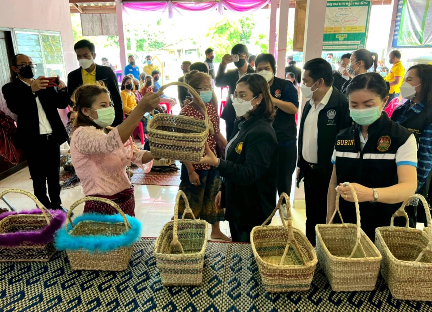 วันที่ ๓ มีนาคม ๒๕๖๕ เวลา ๑๑.๐๐ น. นางสาวบุปผา เรืองสุด รองปลัดกระทรวงแรงงาน ลงพื้นที่ ณ ตำบลจรัส อำเภอบัวเชด จังหวัดสุรินทร์ ในการเยี่ยมชมกลุ่มวิสาหกิจชุมชนแปรรูปทรัพยากรท้องถิ่น หมู่ที่ ๔ หมู่ที่ ๙ และหมู่ที่ ๑๒ ซึ่งเป็นกลุ่มวิสาหกิจชุมชน ประเภทจักสาน ทอเสื่อกก สานหมวก และสานตะกร้าจากต้นกก มีสมาชิกจำนวน 40 คน โดยวิสาหกิจชุมชนดังกล่าวได้รับการฝึกอาชีพพัฒนาทักษะจากสำนักงานพัฒนาฝีมือแรงงานจังหวัดสุรินทร์ ทั้งนี้ ในโอกาสดังกล่าวรองปลัดกระทรวงแรงงาน ได้มอบนโนบายและให้กำลังใจแก่กลุ่มวิสาหกิจชุมชน แรงงานนอกระบบ และอาสาสมัครแรงงานจังหวัดสุรินทร์ที่มาให้การต้อนรับอีกด้วย