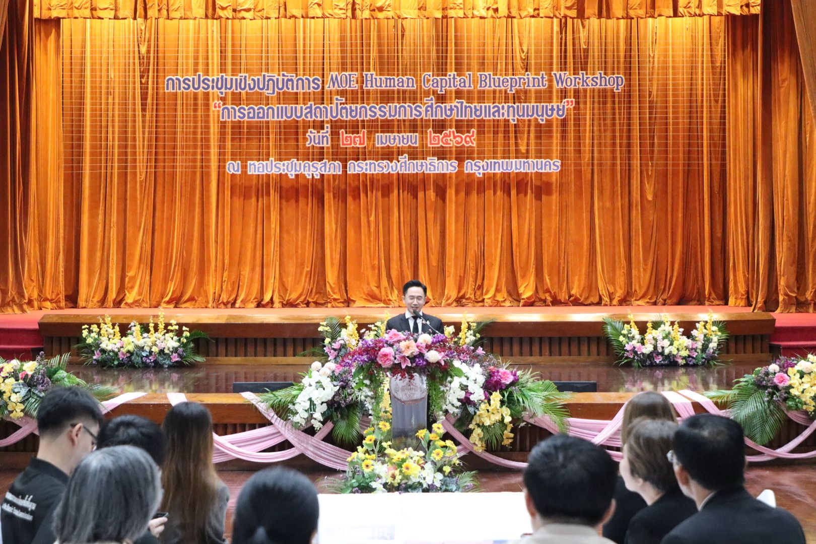 วันที่ 27 เมษายน 2569 เวลา 08.30 น. นางสาวบุปผา เรืองสุด รองปลัดกระทรวงแรงงาน ร่วมการประชุมเชิงปฏิบัติการ MOE Human Capital Blueprint Workshop ภายใต้หัวข้อ “การออกแบบสถาปัตยกรรมการศึกษาไทยและทุนมนุษย์” โดยมี นายยศชนัน วงศ์สวัสดิ์ รองนายกรัฐมนตรี และรัฐมนตรีว่าการกระทรวงการอุดมศึกษา วิทยาศาสตร์ วิจัยและนวัตกรรม เป็นประธานการประชุม นายมงคล สงคราม รองอธิบดีกรมการจัดหางาน นายภัทรวุธ เภอแสละ รองอธิบดีกรมพัฒนาฝีมือแรงงาน ผู้บริหารระดับสูงหน่วยงานภาครัฐ ภาคเอกชน เจ้าหน้าที่หน่วยงานที่เกี่ยวข้องเข้าร่วมประชุม ณ หอประชุมคุรุสภา กระทรวงศึกษาธิการ เขตดุสิต กรุงเทพมหานคร