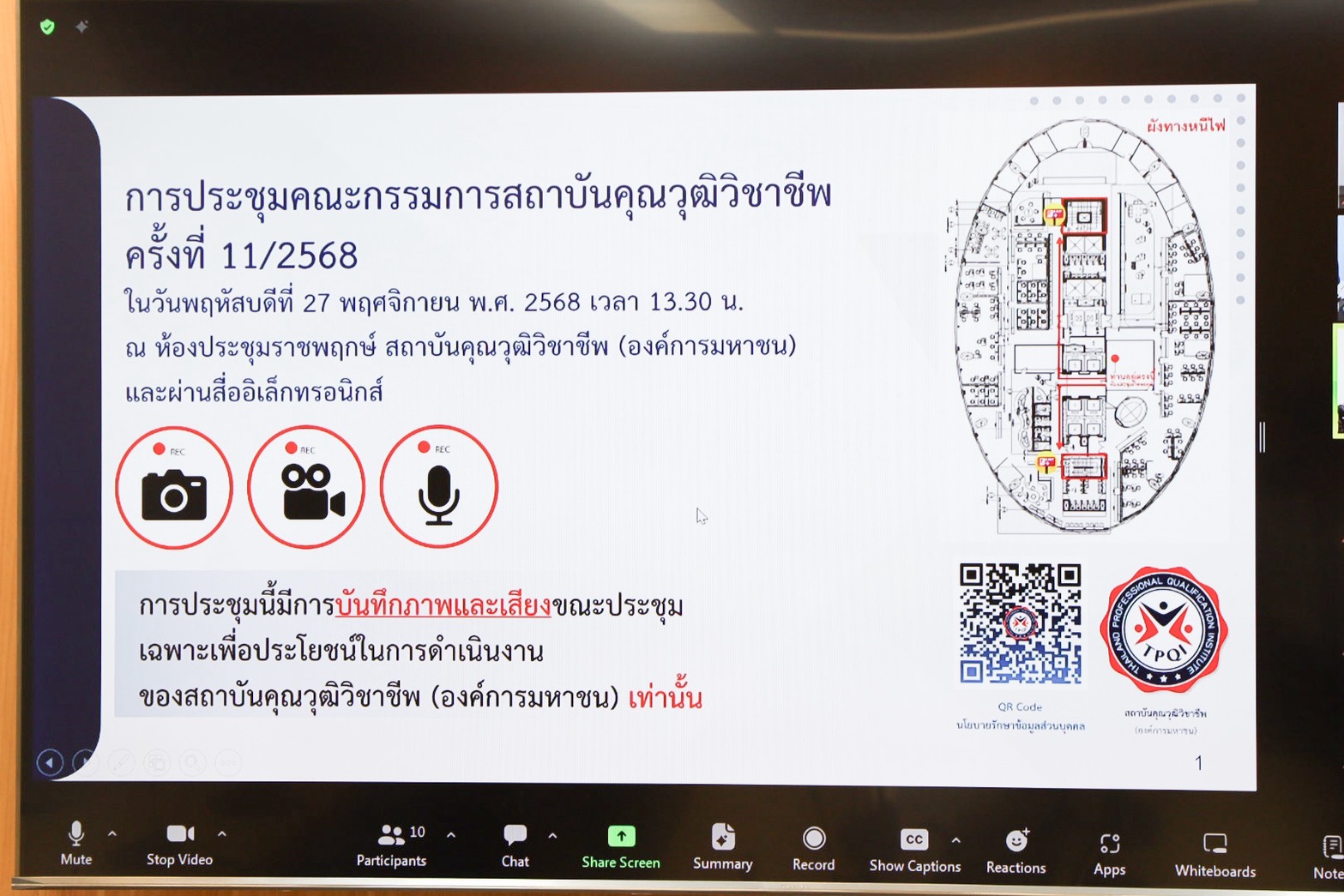 วันที่ 27 พฤศจิกายน 2568 เวลา 13.30 น. นายพิเชษฐ์ ทองพันธ์ รองปลัดกระทรวงแรงงาน เข้าร่วมการประชุมคณะกรรมการสถาบันคุณวุฒิวิชาชีพ ครั้งที่ 11/2568 ผ่านระบบสื่ออิเล็กทรอนิกส์ (Zoom Meeting) โดยมี นายพิสิฐ รังสฤษฎ์วุฒิกุล ประธานกรรมการสถาบันคุณวุฒิวิชาชีพ เป็นประธานการประชุม ณ ห้องประชุมกองยุทธศาสตร์และแผนงาน ชั้น 13 อาคารกระทรวงแรงงาน