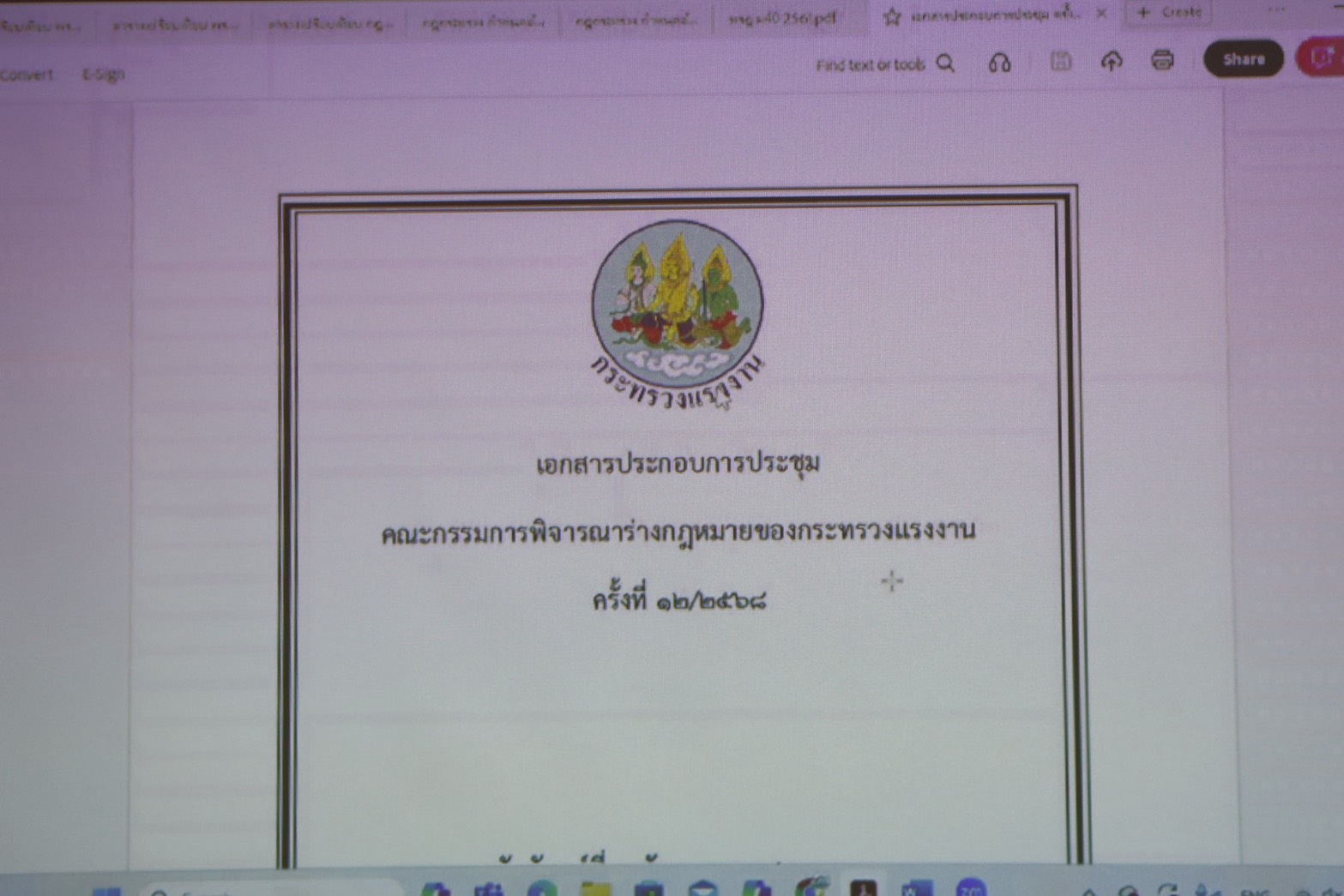 วันที่ 1 ธันวาคม 2568 เวลา 13.30 น. นายสันติ นันตสุวรรณ รองปลัดกระทรวงแรงงาน เป็นประธานการประชุมคณะกรรมการพิจารณาร่างกฎหมายของกระทรวงแรงงาน ครั้งที่ 12/2568 โดยมี นายสิบหมื่นชัย โพธิสินธุ์ ผู้ตรวจราชการกระทรวงแรงงาน นายเกริกไกร นาสมยนต์ ที่ปรึกษากฎหมาย และเจ้าหน้าที่หน่วยงานที่เกี่ยวข้องเข้าร่วมการประชุม ณ ห้องประชุมกองกฎหมาย ชั้น 11 อาคารกระทรวงแรงงาน