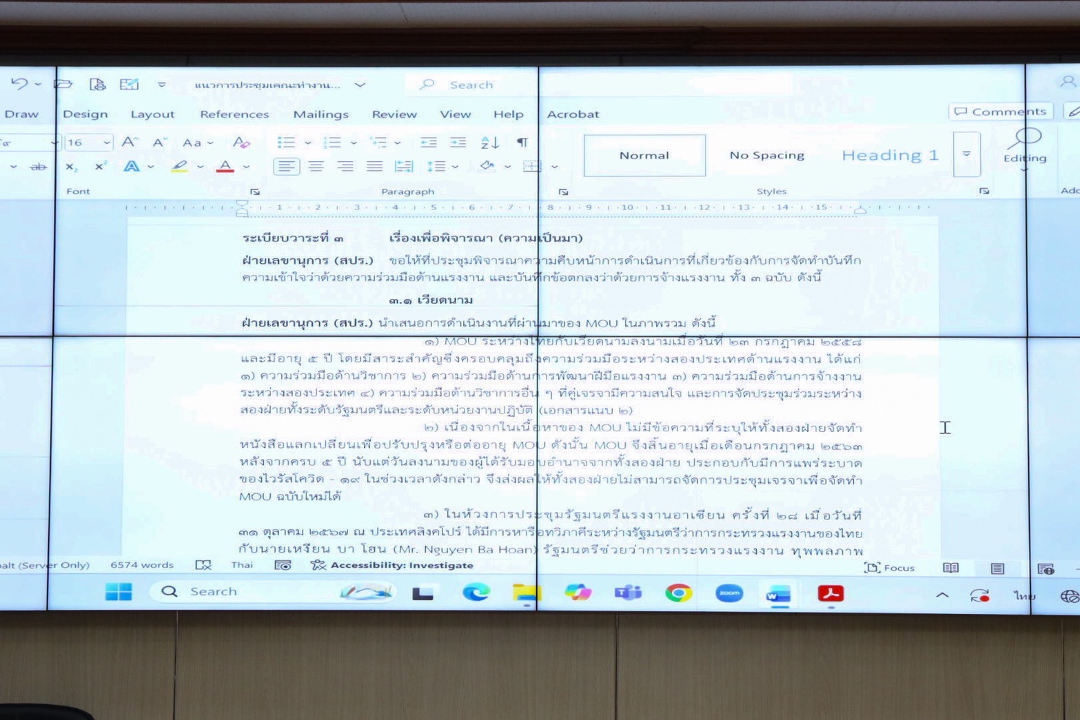 นอกจากนี้ ที่ประชุมยังได้พิจารณาความคืบหน้าการดำเนินการจัดทำบันทึกความเข้าใจว่าด้วยความร่วมมือด้านแรงงาน และบันทึกข้อตกลงว่าด้วยการจ้างแรงงาน ร่วมกับ 3 ประเทศ ได้แก่ เวียดนาม ศรีลังกา และบังกลาเทศ โดยมีเป้าหมายเพื่อเสริมสร้างความร่วมมือด้านแรงงานระหว่างประเทศให้มีความเป็นระบบ ถูกต้องตามกฎหมาย และสอดคล้องกับความต้องการใช้แรงงานของประเทศไทยในระยะยาว