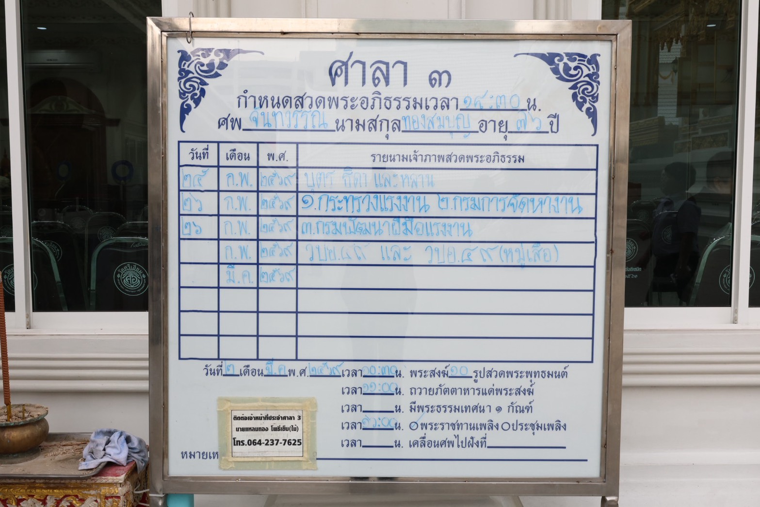วันที่ 26 กุมภาพันธ์ 2569 เวลา 18.30 น. พันตำรวจโท วรรณพงษ์ คชรักษ์ ปลัดกระทรวงแรงงาน มอบหมายให้ นางสาวบุปผา เรืองสุด รองปลัดกระทรวงแรงงาน เป็นประธานในพิธีบำเพ็ญกุศลสวดพระอภิธรรมศพ นางจันทวรรณ ทองสมบุญ อดีตรองปลัดกระทรวงแรงงาน ได้ถึงแก่กรรรม โดยมี นายมงคล สงคราม รองอธิบดีกรมการจัดหางาน บุตรครอบครัว และญาติพี่น้อง ร่วมพิธีบำเพ็ญกุศลไว้อาลัย ณ วัดศรีเอี่ยม (ศาลา 3) เขตบางนา กรุงเทพมหานคร
