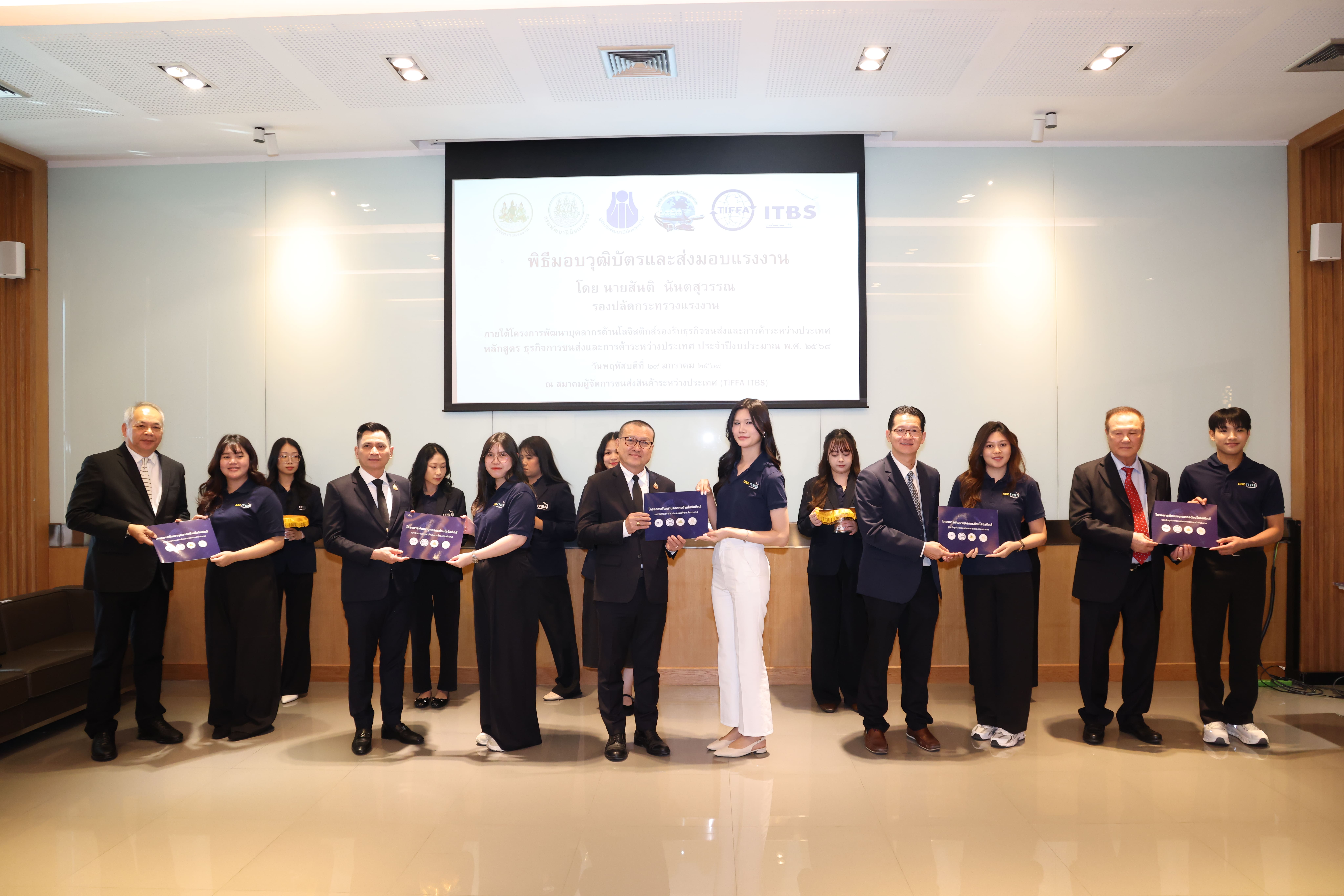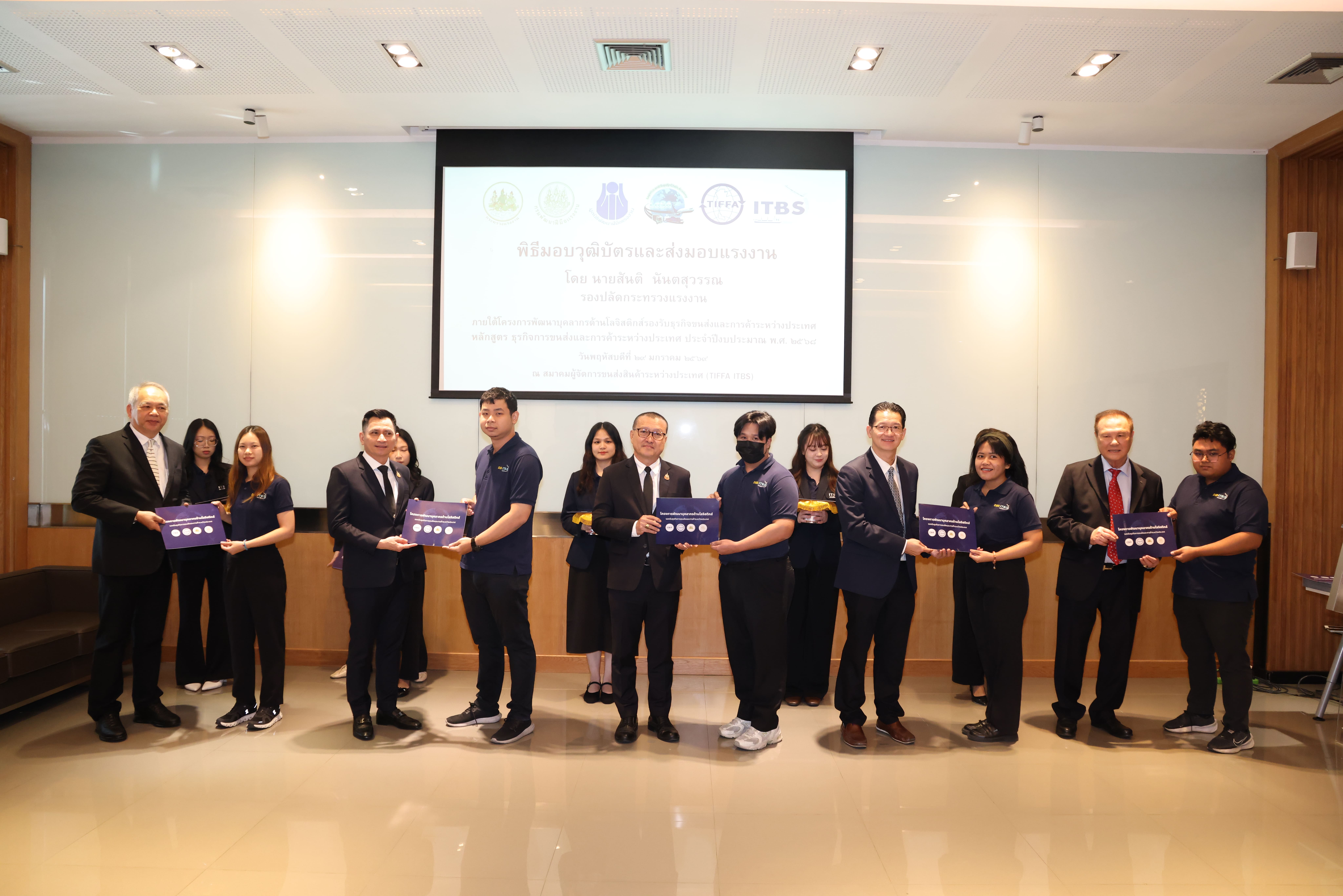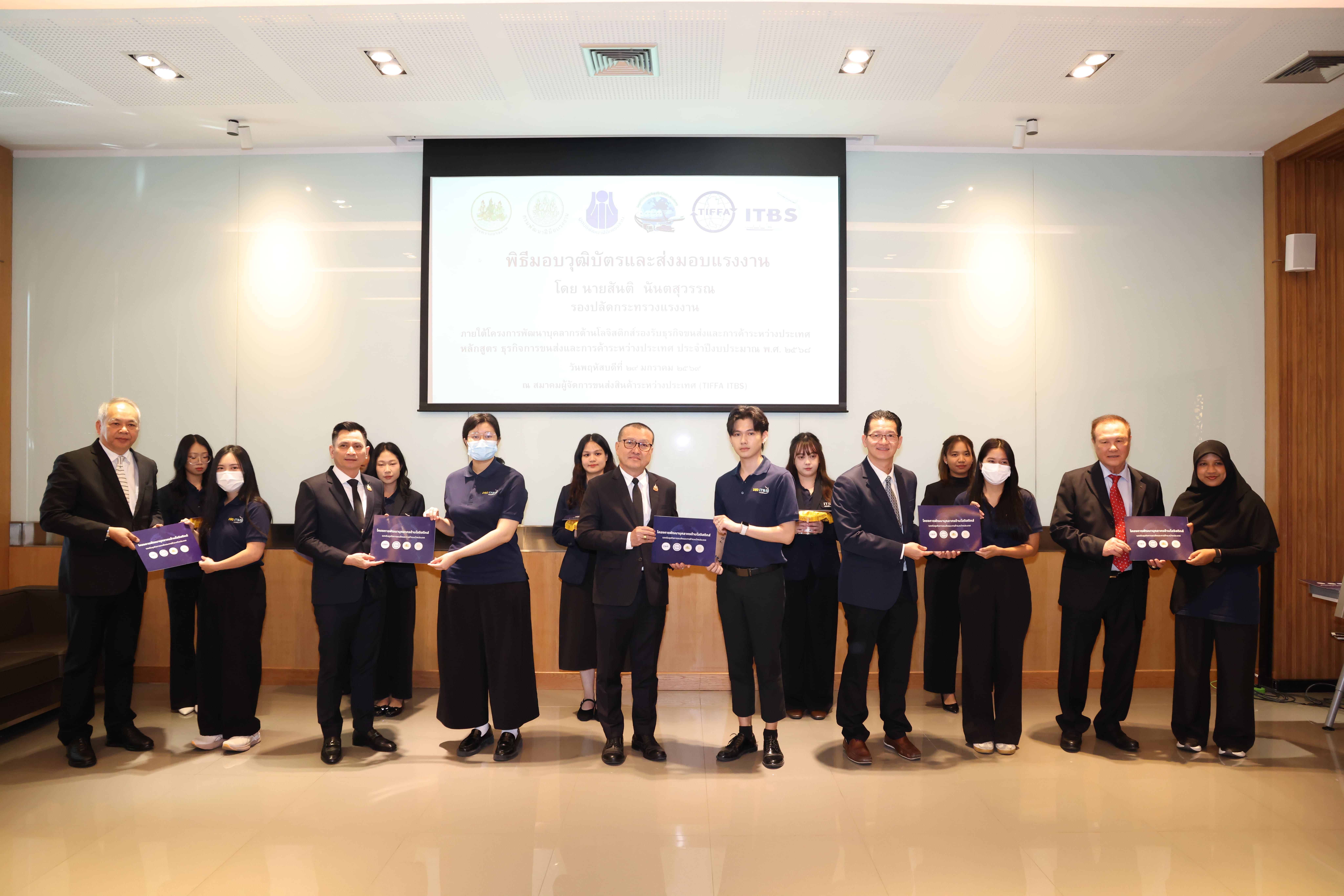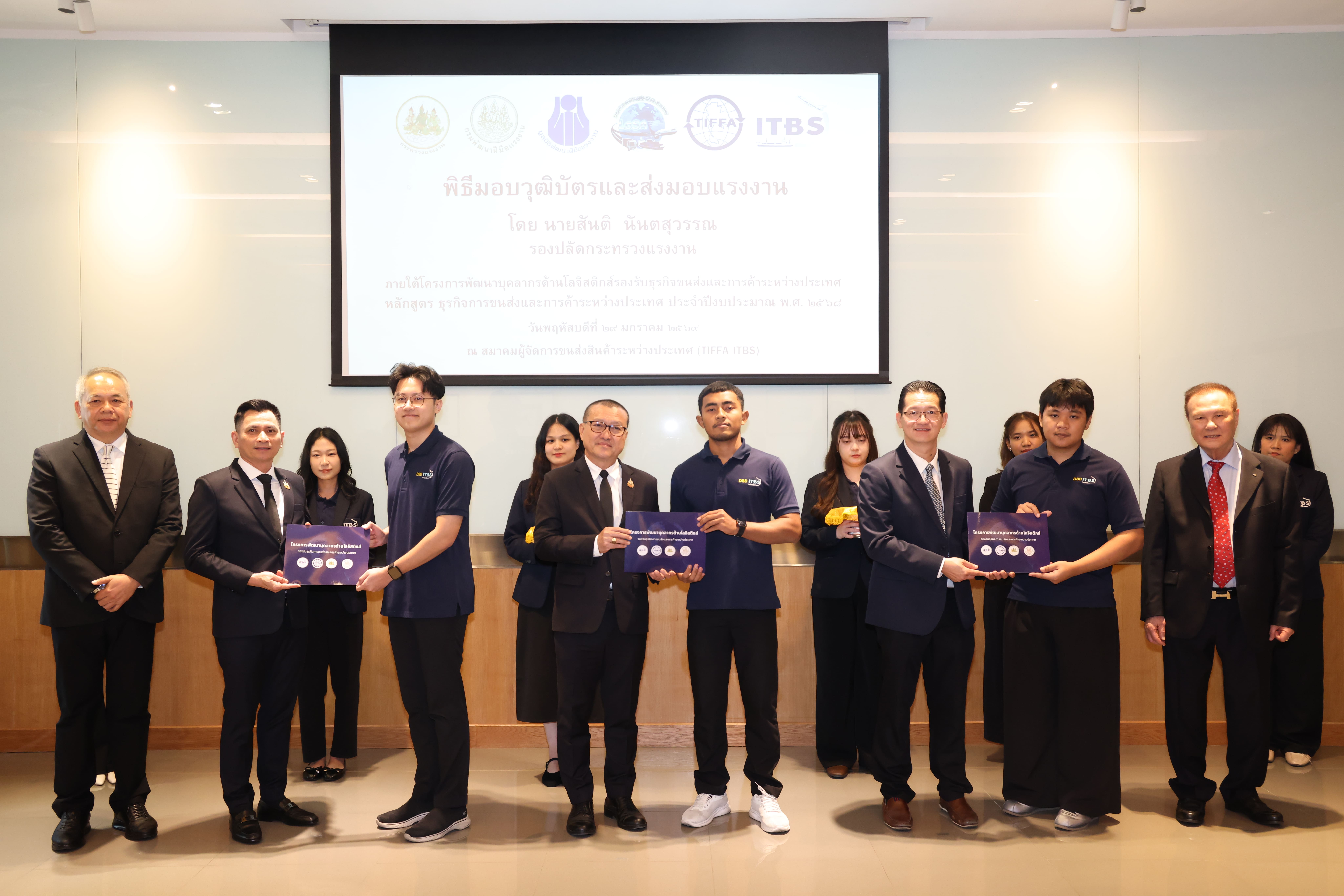 วันที่ 29 มกราคม 2569 เวลา 10.00 น. นายสันติ นันตสุวรรณ รองปลัดกระทรวงแรงงาน เป็นประธานมอบวุฒิบัตรให้แก่ผู้ผ่านการฝึกอบรมหลักสูตรธุรกิจขนส่งและการค้าระหว่างประเทศ ประจำปีงบประมาณ 2568 จำนวน 70 คน ภายใต้โครงการพัฒนาบุคลากรด้านโลจิสติกส์รองรับธุรกิจขนส่งและการค้าระหว่างประเทศ ซึ่งจัดขึ้นโดย สถาบันพัฒนาบุคลากรเทคโนโลยีชั้นสูงด้านโลจิสติกส์และซัพพลายเชน (LoSA) ร่วมกับ สมาคมผู้รับจัดการขนส่งสินค้าระหว่างประเทศ (TIFFA) และโรงเรียนธุรกิจการขนส่งและการค้าระหว่างประเทศ (ITBS)