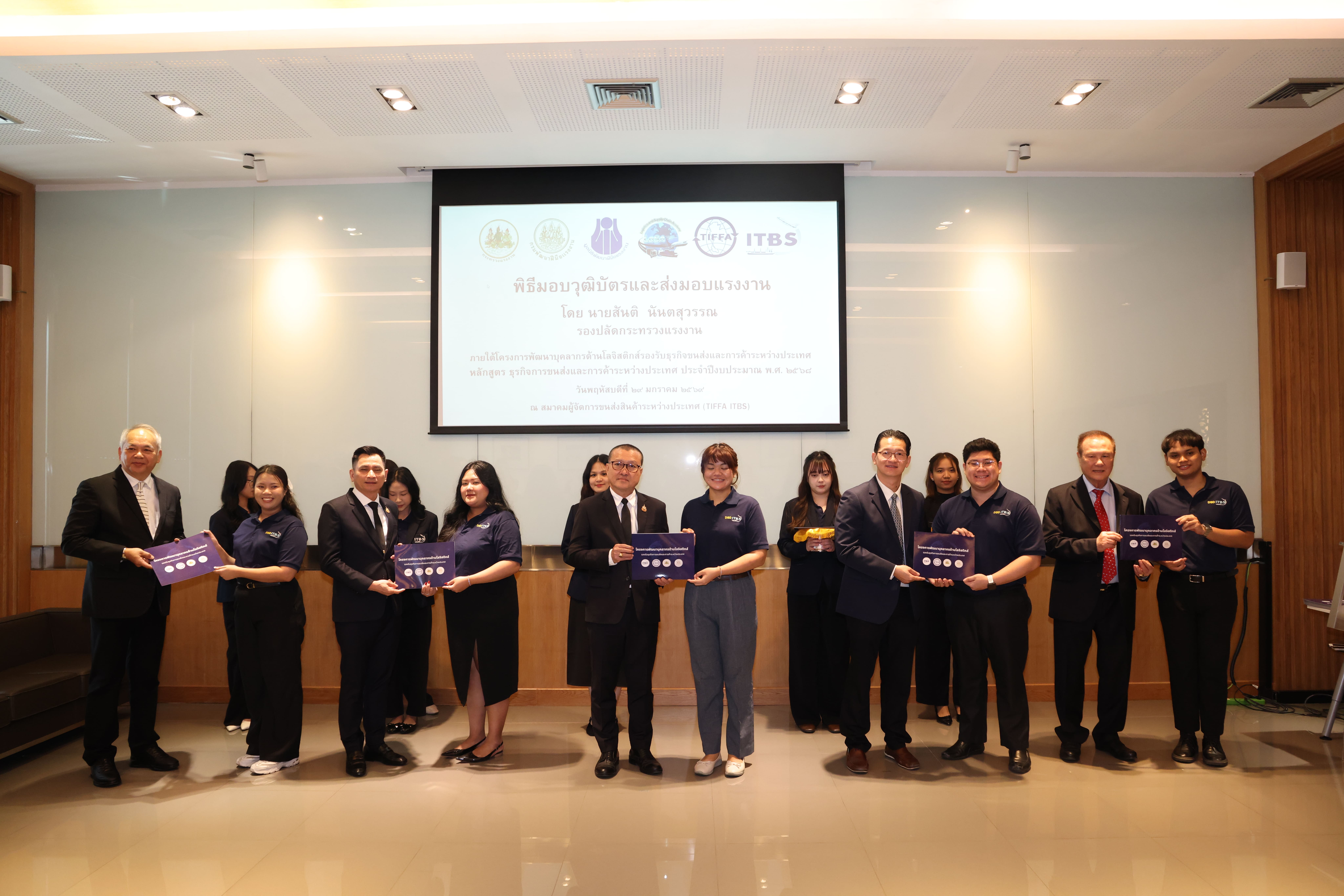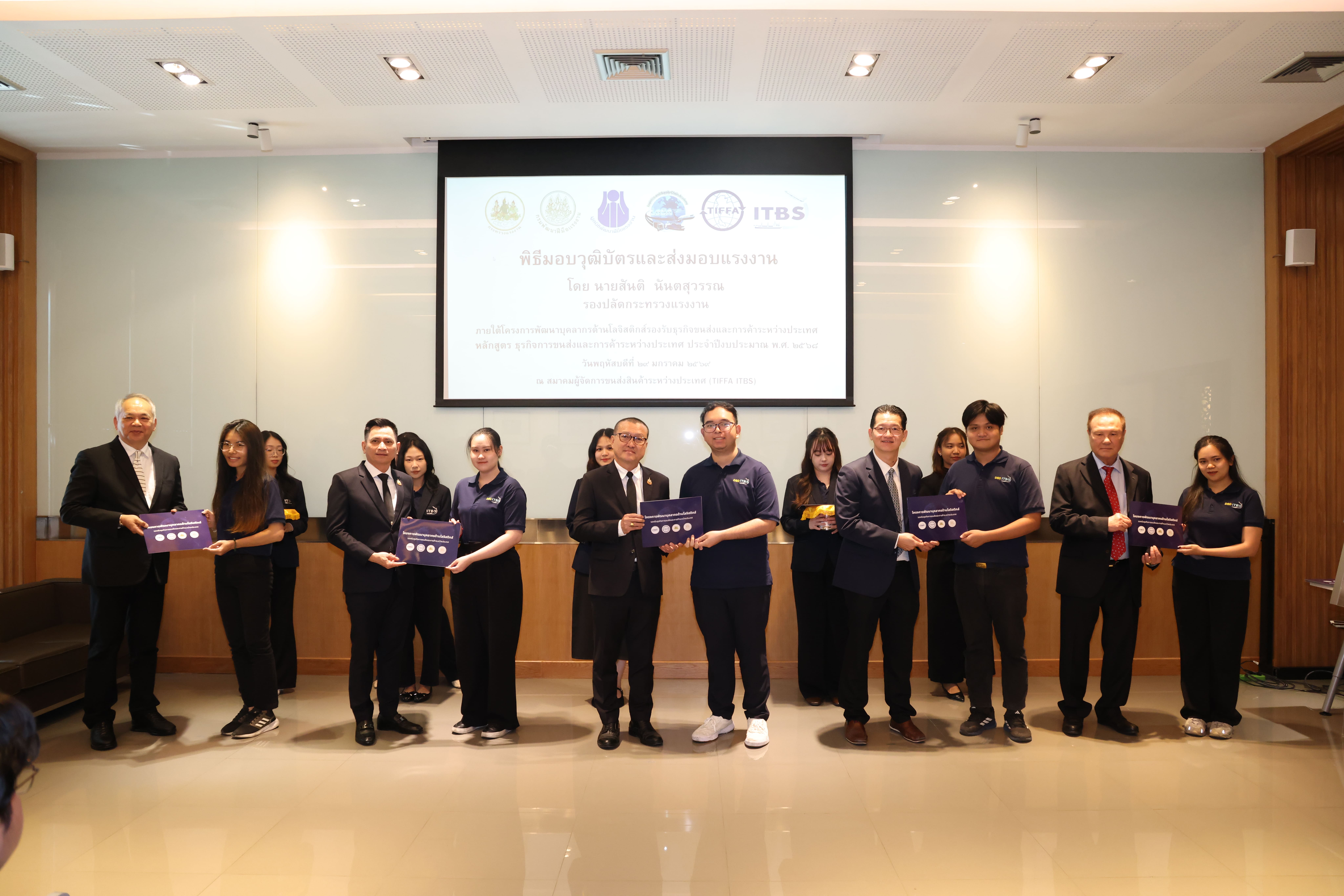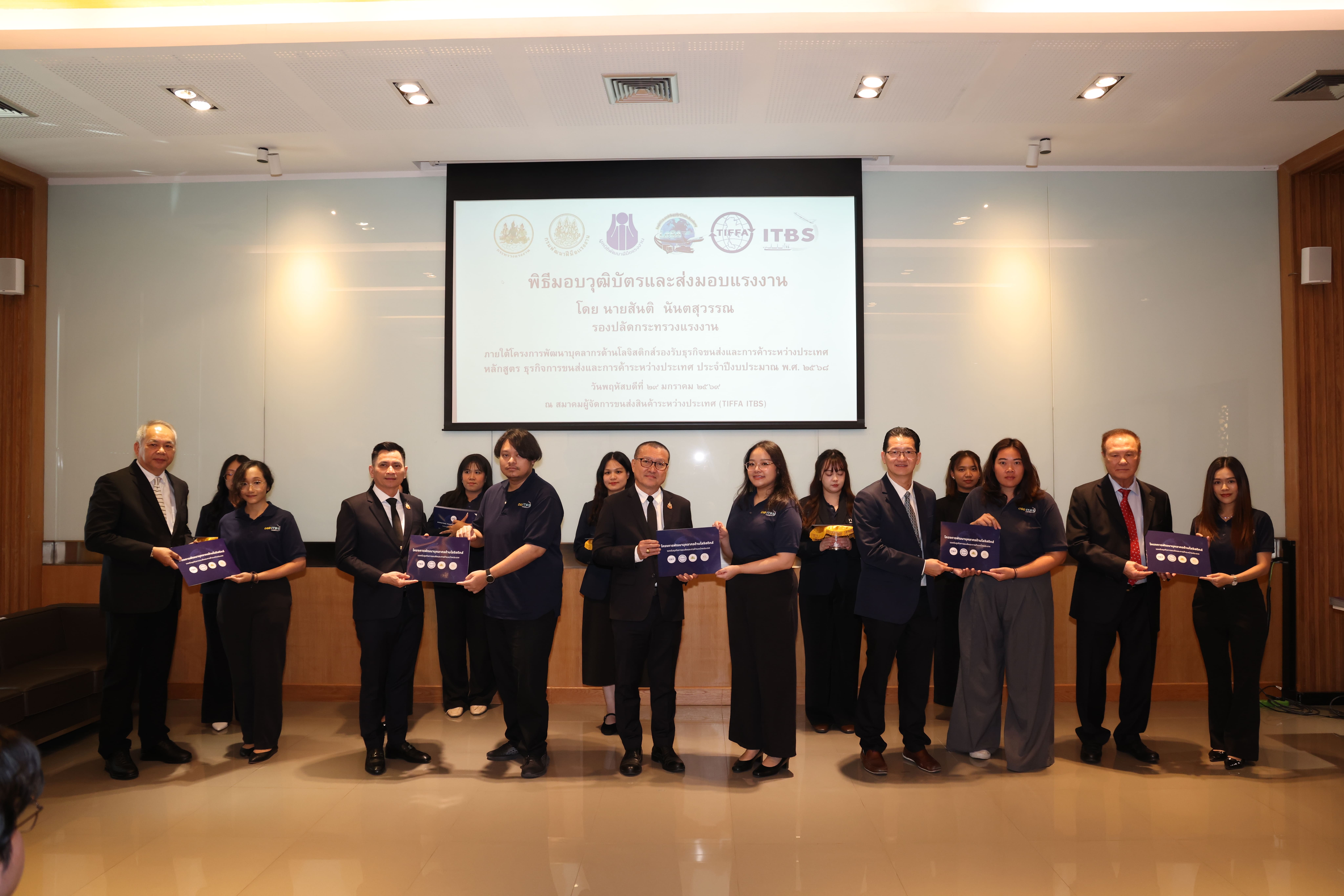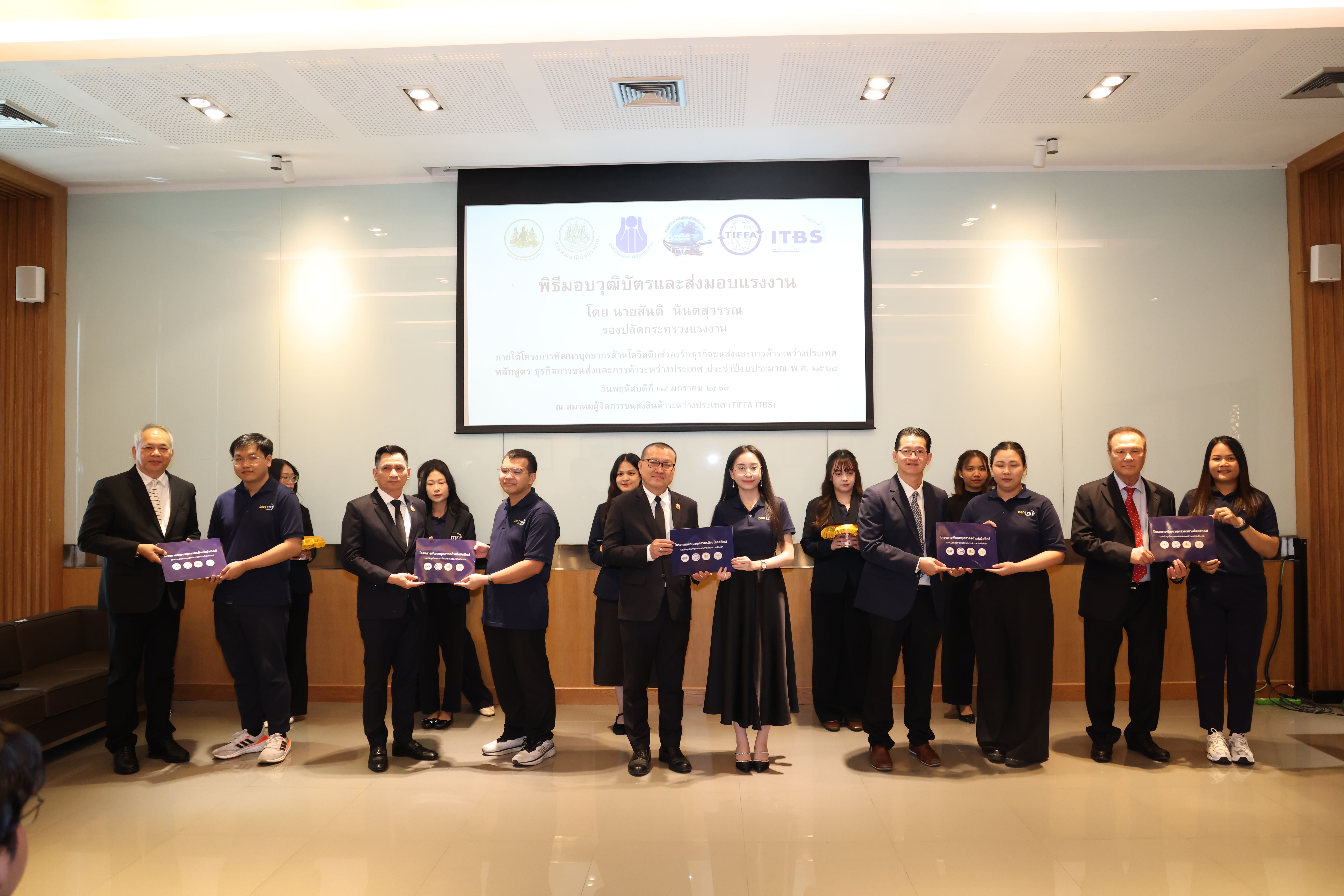 วันที่ 29 มกราคม 2569 เวลา 10.00 น. นายสันติ นันตสุวรรณ รองปลัดกระทรวงแรงงาน เป็นประธานมอบวุฒิบัตรให้แก่ผู้ผ่านการฝึกอบรมหลักสูตรธุรกิจขนส่งและการค้าระหว่างประเทศ ประจำปีงบประมาณ 2568 จำนวน 70 คน ภายใต้โครงการพัฒนาบุคลากรด้านโลจิสติกส์รองรับธุรกิจขนส่งและการค้าระหว่างประเทศ ซึ่งจัดขึ้นโดย สถาบันพัฒนาบุคลากรเทคโนโลยีชั้นสูงด้านโลจิสติกส์และซัพพลายเชน (LoSA) ร่วมกับ สมาคมผู้รับจัดการขนส่งสินค้าระหว่างประเทศ (TIFFA) และโรงเรียนธุรกิจการขนส่งและการค้าระหว่างประเทศ (ITBS)