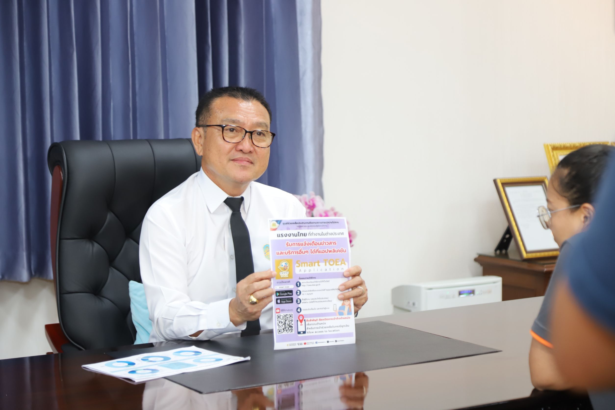 รองปลัดกระทรวงแรงงาน ได้กล่าวถึง การเปิดใช้ระบบ Application SMART TOEA ผ่านทางสำนักงานแรงงานไทยในตะวันออกกลาง สำนักงานแรงงานจังหวัดทั้ง 76 จังหวัด ซึ่ง Application SMART TOEA จะเก็บข้อมูลพิกัดสถานที่ที่แรงงานไทยทำงานอยู่ในปัจจุบัน ซึ่งเมื่อแรงงานได้เปิดตำแหน่งโลเคชั่นที่ตนเองทำงานอยู่ หากเกิดสถานการณ์ฉุกเฉิน กระทรวงแรงงาน สถานทูต และหน่วยงานที่เกี่ยวข้องก็สามารถทราบตำแหน่งเพื่อจะได้เข้ารับการช่วยเหลือแรงงานไทยได้อย่างทันท่วงที โดยขอให้ประชาสัมพันธ์ให้แรงงานไทยได้ทราบกันทั่วถึง