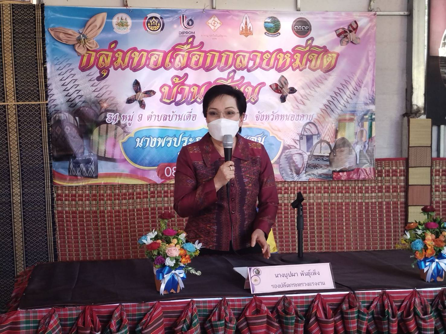 นางบุปผา กล่าวว่า รัฐบาลภายใต้การนำของท่าน พล.อ.ประยุทธ์ จันทร์โอชา นายกรัฐมนตรีและรัฐมนตรีว่าการกระทรวงกลาโหม และท่าน พล.อ.ประวิตร วงษ์สุวรรณ รองนายกรัฐมนตรี ซึ่งกำกับการดูแลกระทรวงแรงงาน ได้ให้ความสำคัญกับการส่งเสริมทักษะฝีมือแรงงาน ให้กับกลุ่มวิสาหกิจชุมชม กลุ่มอาชีพต่างๆ ให้ได้รับความรู้และการพัฒนาทักษะฝีมือ สร้างความเข้มแข็งและความมั่นคงให้แก่เศรษฐกิจฐานรากในระดับชุมชนของประเทศ สอดคล้องกับนโยบายของท่านสุชาติ ชมกลิ่น รัฐมนตรีว่าการกระทรวงแรงงานที่ต้องการยกระดับศักยภาพแรงงานนอกระบบให้ได้รับการคุ้มครองเพื่อรองรับ พ.ร.บ.ส่งเสริมการพัฒนาคุณภาพชีวิตและคุ้มครองแรงงานนอกระบบ และในวันนี้ดิฉันได้ลงพื้นที่จังหวัดหนองคายเพื่อตรวจเยี่ยมให้กำลังใจและติดตามการดำเนินงานโครงการแก้ไขปัญหาความเดือดร้อนด้านอาชีพของกลุ่มทอเสื่อกกลายขิต จังหวัดหนองคาย ซึ่งจากการตรวจเยี่ยมในครั้งนี้ กระทรวงแรงงานได้บูรณาการกับสำนักงานการท่องเที่ยวจังหวัดเพื่อจัดหากองทุน และร่วมมือกับพาณิชย์จังหวัดเพื่อจัดหาตลาดให้สมาชิกกลุ่มอาชีพได้มีช่องทางการจำหน่ายผลิตภัณฑ์ เพื่อเพิ่มมูลค่าผลิตภัณฑ์ทำให้กลุ่มมีอาชีพ มีรายได้เพิ่มขึ้น