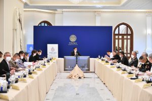 วันที่ 12 ตุลาคม 2565 เวลา 09.30 น. นายสุชาติ ชมกลิ่น รัฐมนตรีว่าการกระทรวงแรงงาน มอบหมายให้ นายวรรณรัตน์ ศรีสุขใส รองปลัดกระทรวงแรงงาน ในฐานะโฆษกกระทรวงแรงงาน เข้าร่วมการประชุมเพื่อกำหนดมาตรการเร่งด่วนในการแก้ไขปัญหายาเสพติดและอาวุธปืน โดยมี พลเอก ประยุทธ์ จันทร์โอชา นายกรัฐมนตรีและรัฐมนตรีว่าการกระทรวงกลาโหม เป็นประธานการประชุม พร้อมด้วย พล.อ.ประวิตร วงษ์สุวรรณ รองนายกรัฐมนตรี และหน่วยงานที่เกี่ยวข้องเข้าร่วมประชุมด้วย ณ ตึกภักดีบดินทร์ ทำเนียบรัฐบาล