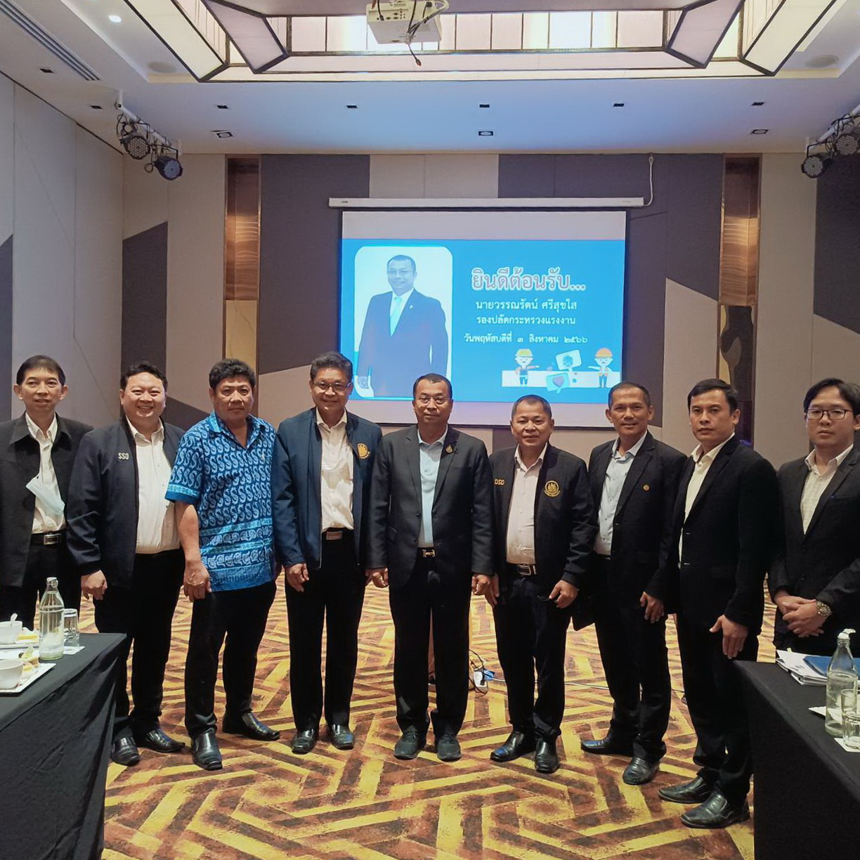 วันที่ 3 สิงหาคม 2566 นายบุญชอบ สุทธมนัสวงษ์ ปลัดกระทรวงแรงงาน มอบหมายให้ นายวรรณรัตน์ ศรีสุขใส รองปลัดกระทรวงแรงงาน เป็นประธานการประชุมหัวหน้าส่วนราชการสังกัดกระทรวงแรงงานจังหวัดชลบุรีเพื่อติดตามความคืบหน้าของการปฏิบัติงาน ตามมาตรฐานการปฏิบัติงาน (Standard Operating Procedure: SOP) และแบบตรวจคัดกรองเบื้องต้น (แบบ รบ 1) และการตรวจคัดกรองเพื่อแสวงหาข้อบ่งชี้เบื้องต้น เพื่อแสวงหาข้อบ่งชี้สำหรับบุคคลที่มีเหตุอันควรสงสัยได้ว่าอาจเป็นผู้เสียหายจากการแสวงหาประโยชน์ด้านแรงงาน แรงงานบังคับ หรือการค้ามนุษย์ด้านแรงงาน สรุปผลการดำเนินงานโครงการขับเคลื่อนกลไกเชิงนโยบายในการป้องกันและแก้ไขปัญหาการค้ามนุษย์ด้านแรงงาน จังหวัดชลบุรี ระหว่างเดือนตุลาคม 2565 – กรกฎาคม 2566 ณ ห้องประชุมดาวดึงส์ ชั้น 7 โรงแรม เดอะ ไซมีส โฮเทล พัทยา จังหวัดชลบุรี